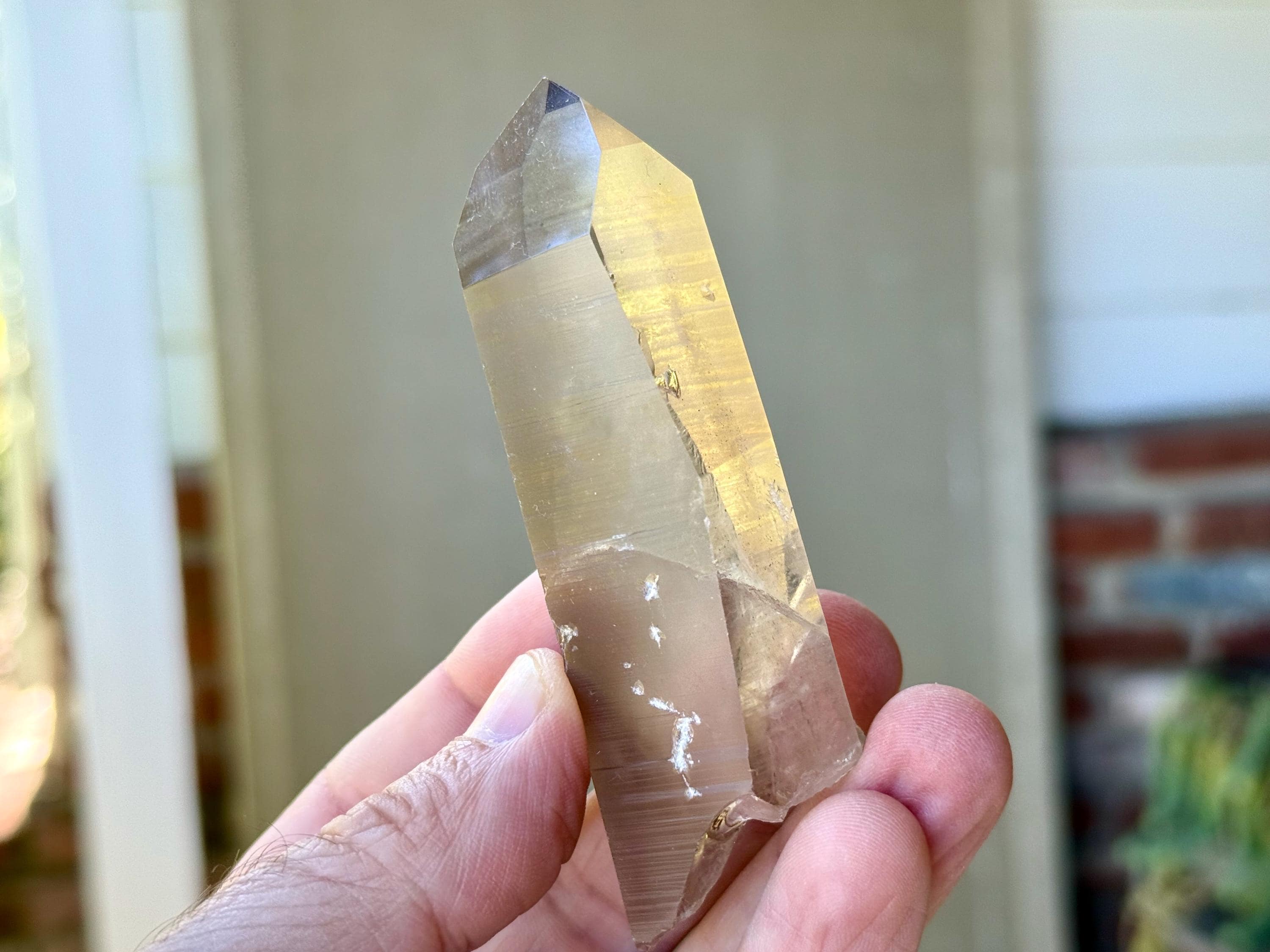 Stunning quality to this elegant Smoky Lemurian Quartz crystal with a robust smoky hue and a mild golden tinge as well. This crystal possesses superb luster and exquisite clarity.