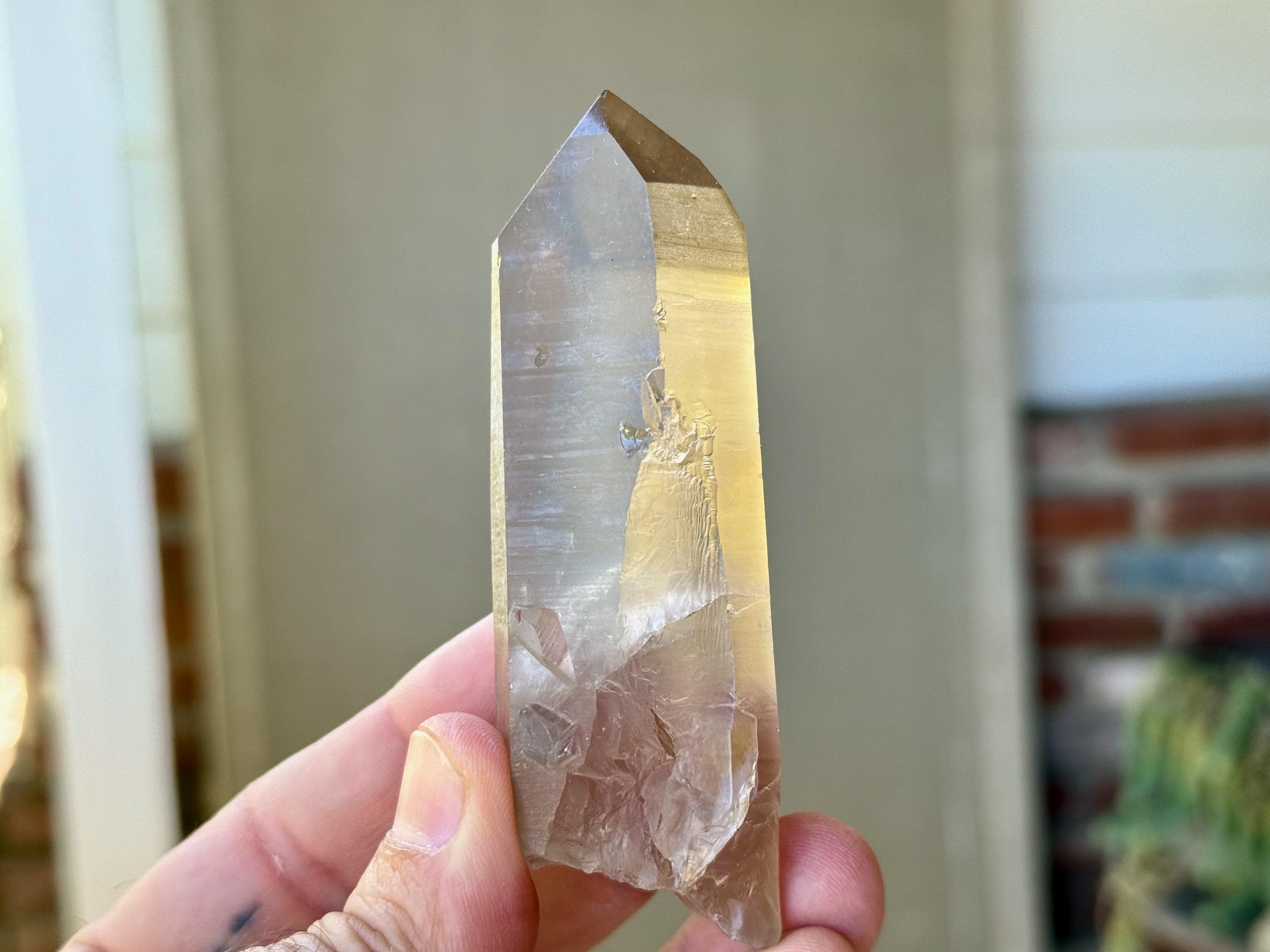 This crystal displays a 7-sided main facet, opposing a 3-sided facet, making this a Channeling Crystal (see more on this formation below).