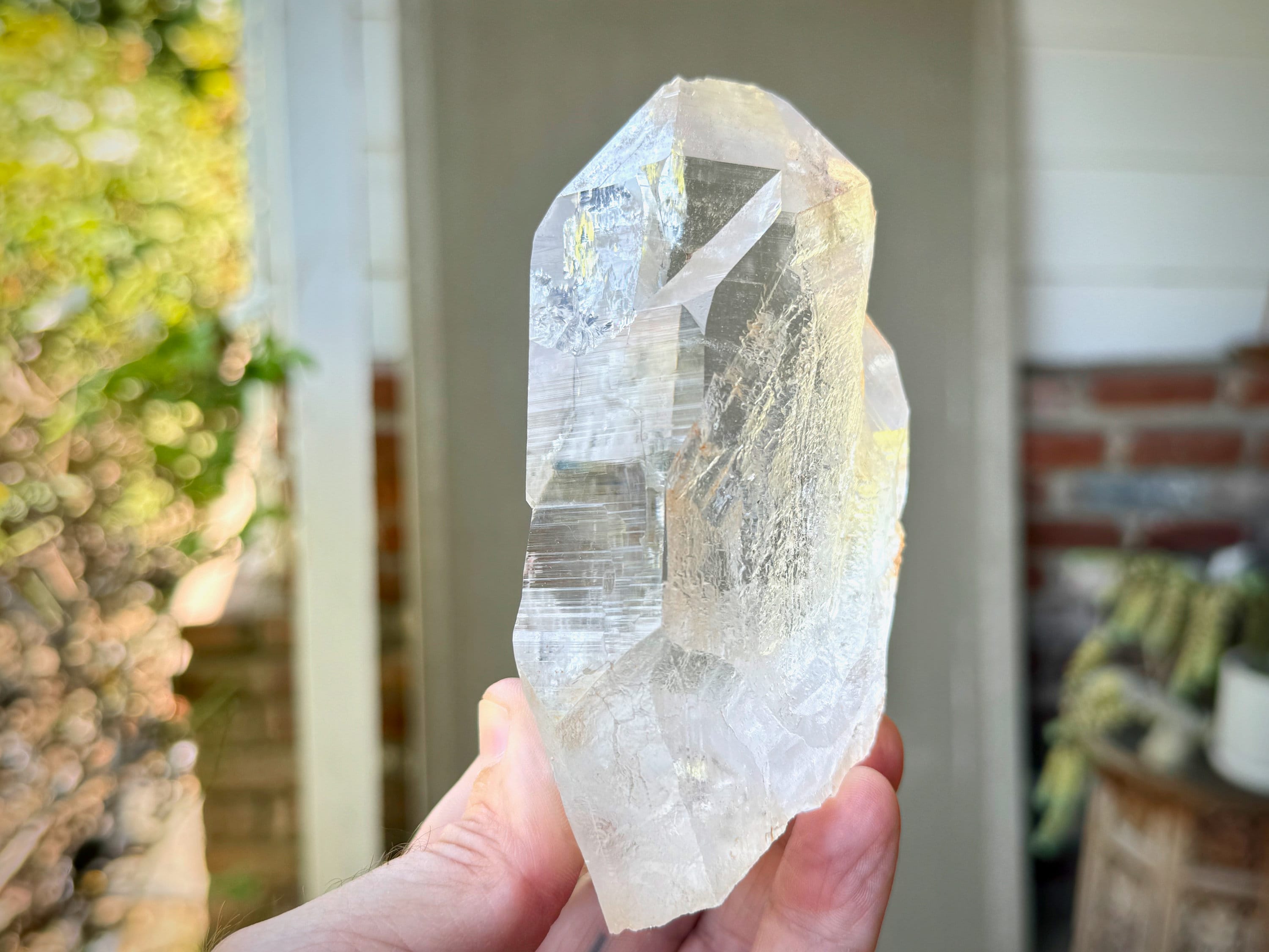 Himalayan Quartz carries one of the purest spiritual energies of any crystal, and they are known for having amazing water-clear (optical) clarity and luster. Even though most of them lack the traditional horizontal Lemurian ridges, these crystals carry much the same energy of traditional Lemurian Quartz, but there is something about them that seems to have an even higher vibration if that is possible. Because of the clarity and purity of these crystals, they are ideal for holding and setting personal intentions, and amplifying these intentions into the universe. They are also most profound in facilitating contact with Divine Realms, higher dimensional beings and spirit guides.