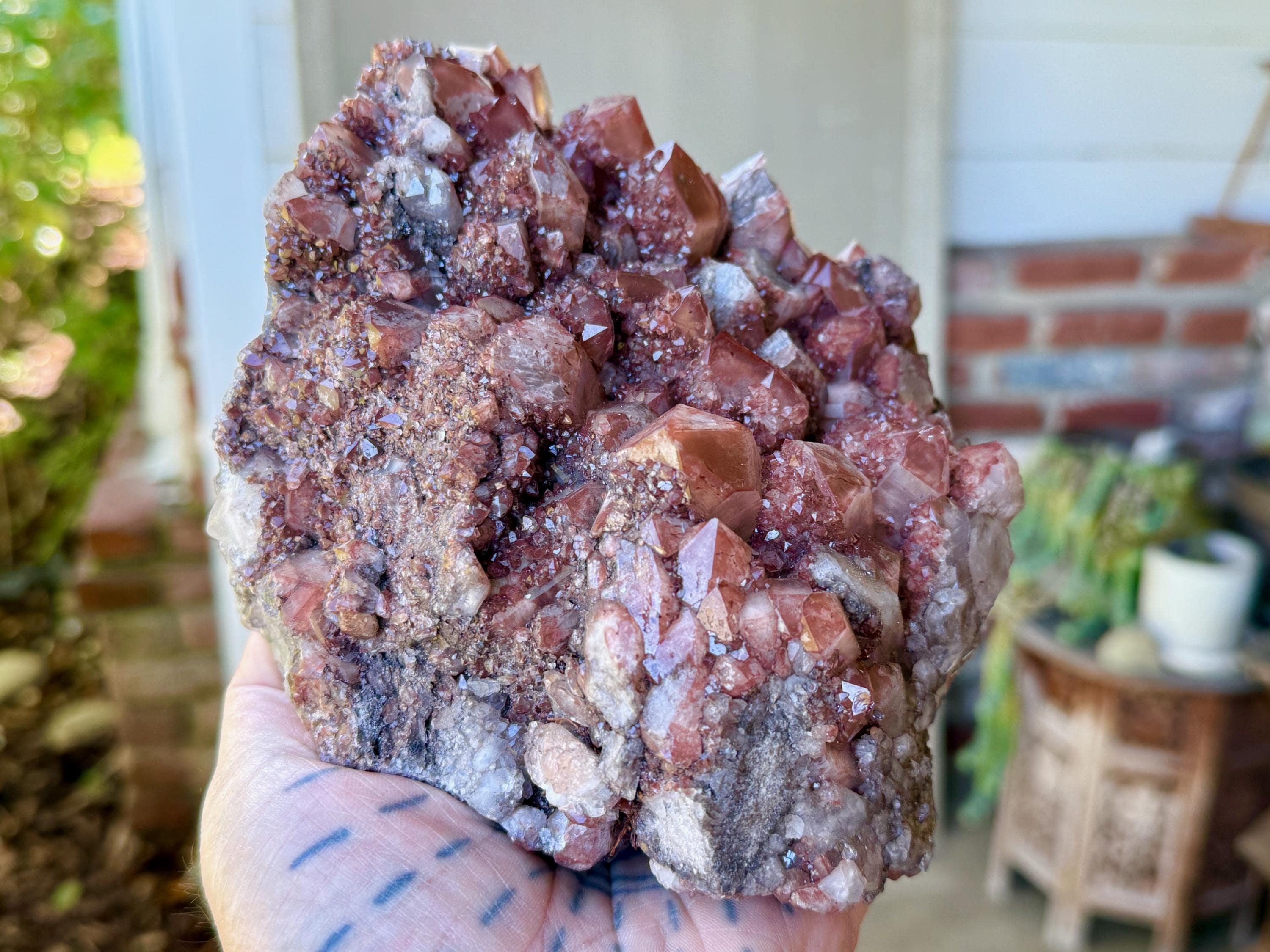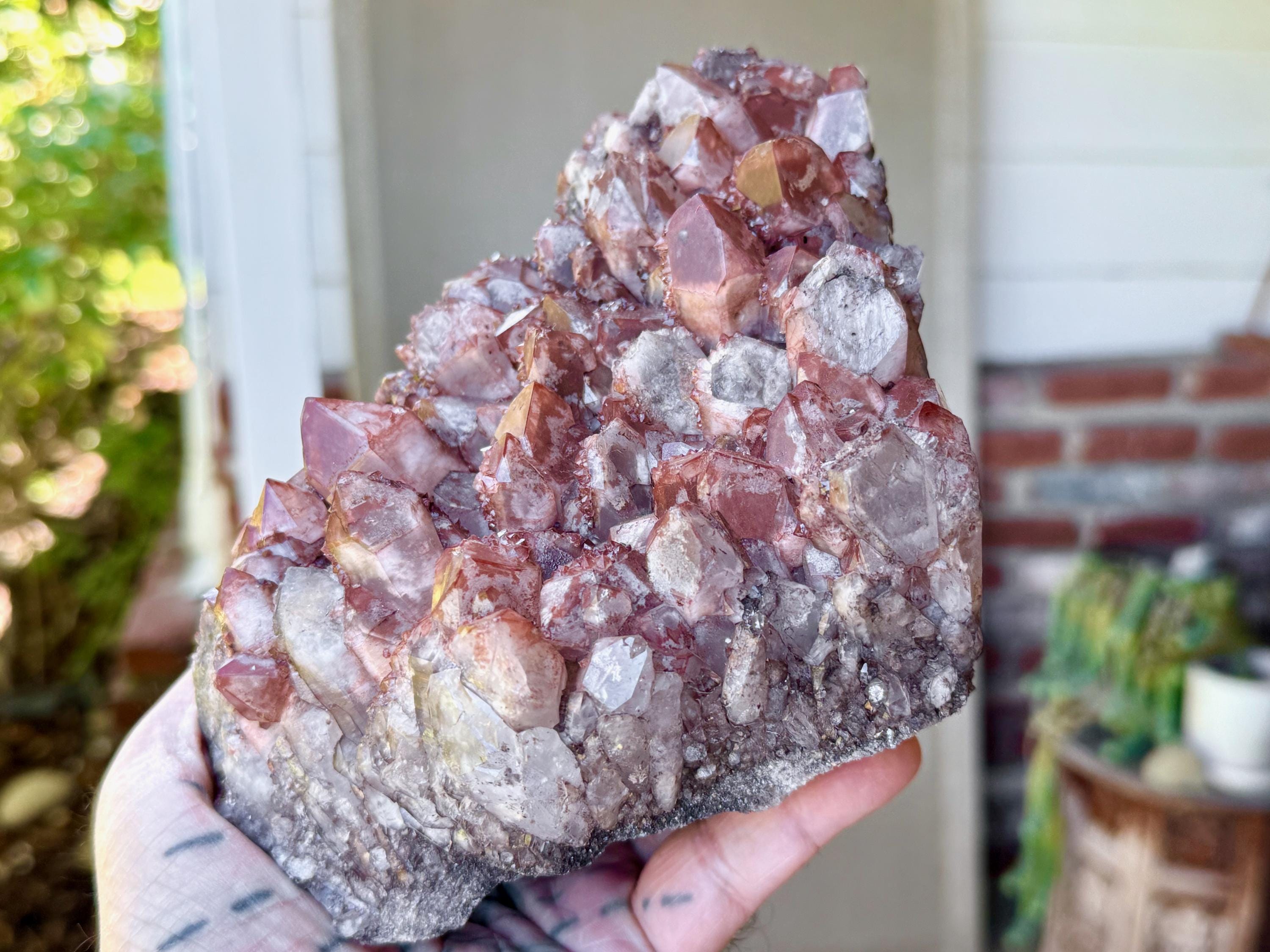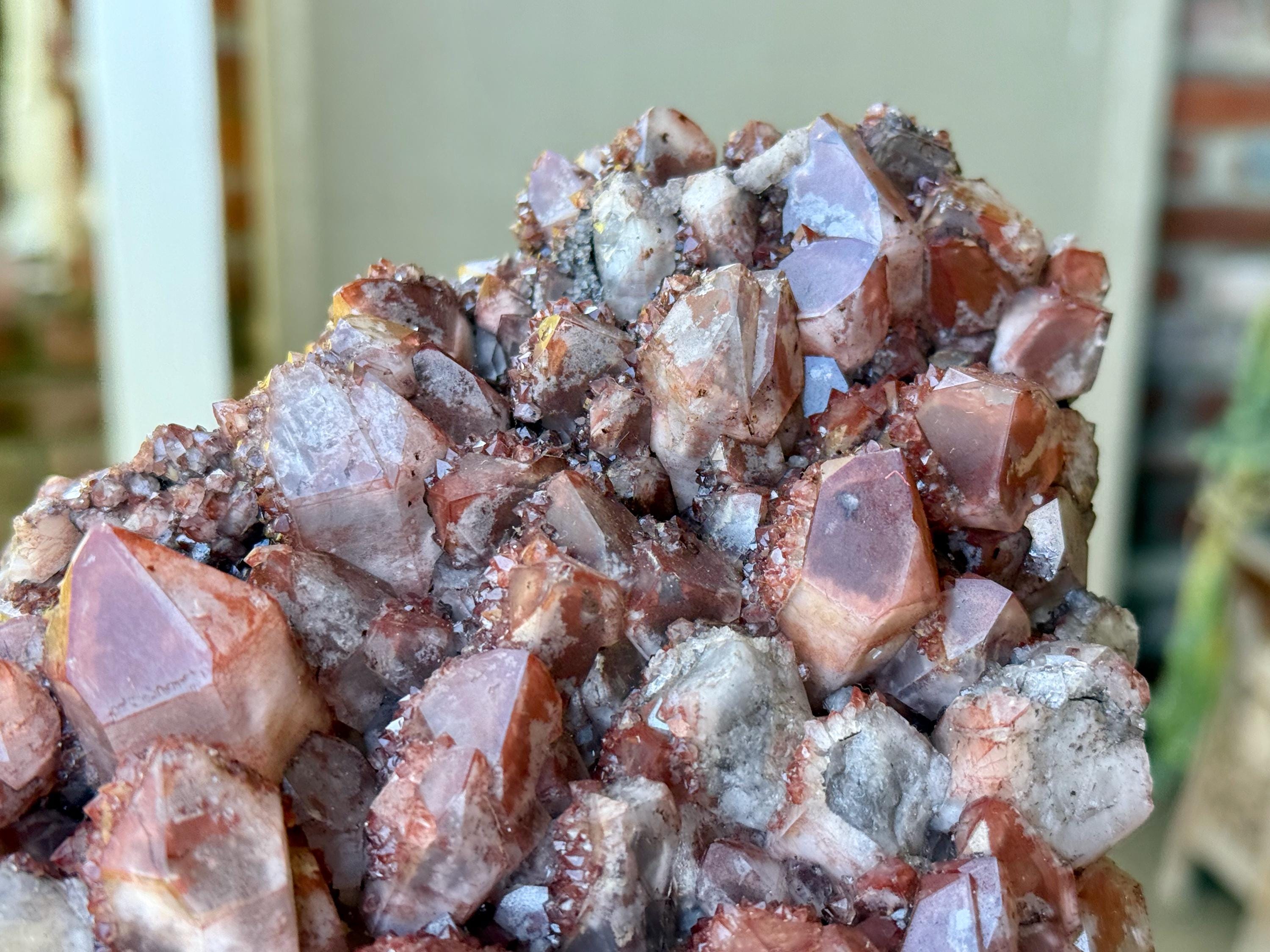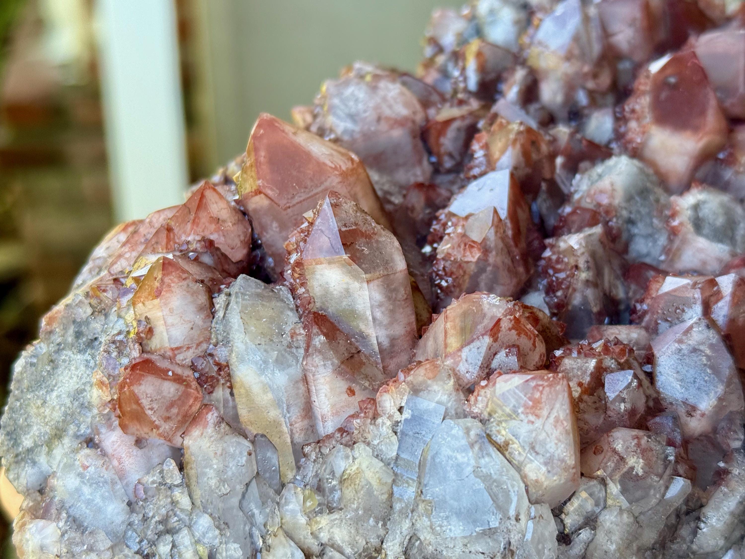 Vibrant red phantoms fill each of the dozens of crystals on this massive Red Hematite & Lithium Phantom Cluster! This is an extraordinary formation, very large in size, with gradient hues of red, white and some pink well. It's highly lustrous with a wonderful composition.