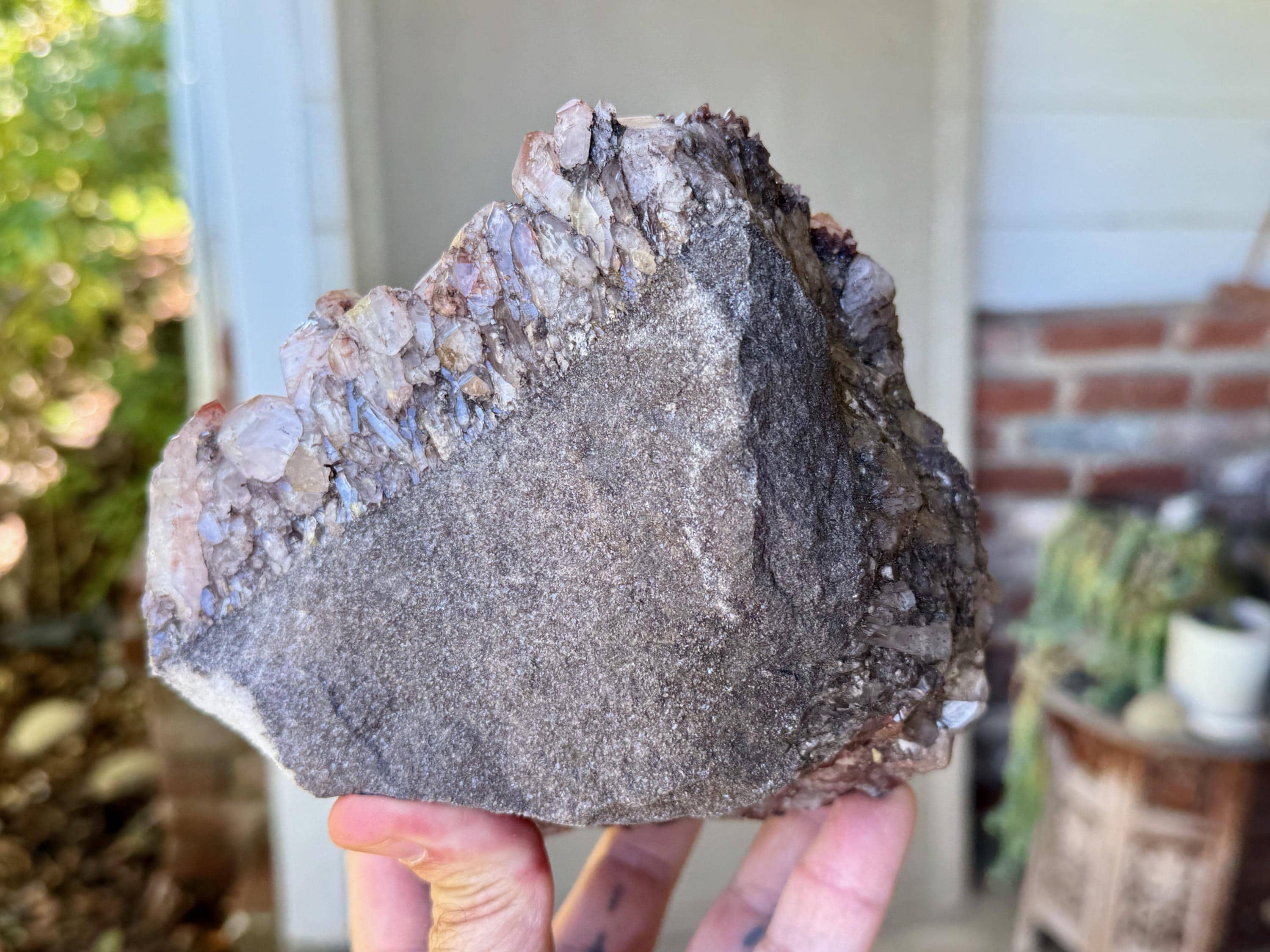 Hematite is a powerful stone which absorbs negative or heavy energy and recycles it into a more positive vibration. It also can be useful in facilitating calming states in times of turbulence and worry. It is among one of the best stones for both grounding and protection. Hematite corresponds to the Root Chakra. It is very powerful when combined with other minerals, as it is here, especially quartz, which amplifies its abilities.