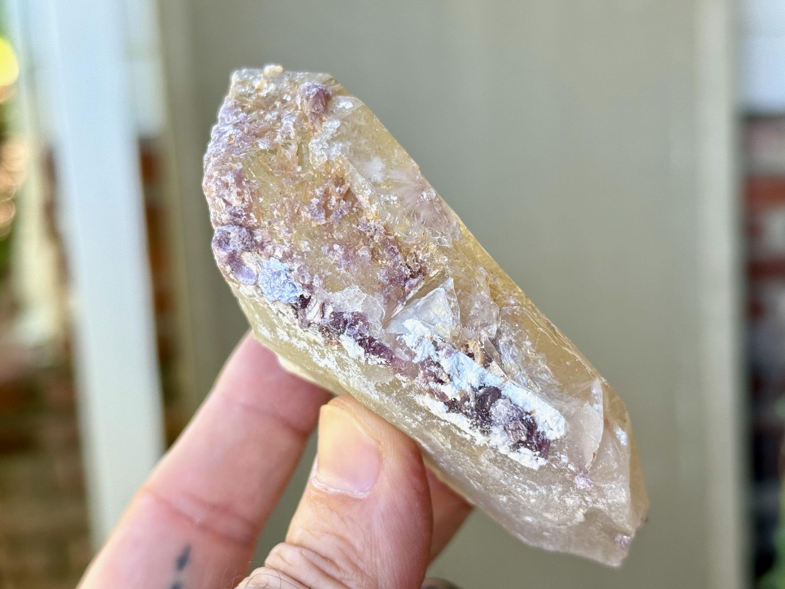 This beautiful, natural Citrine with Purple Lepidolite comes from a recent find in Aracuai, Minas Gerais, Brazil. Citrine activates, opens, and energizes the Solar Plexus and Navel Chakras, releasing personal power, creativity and most importantly the ability to manifest.