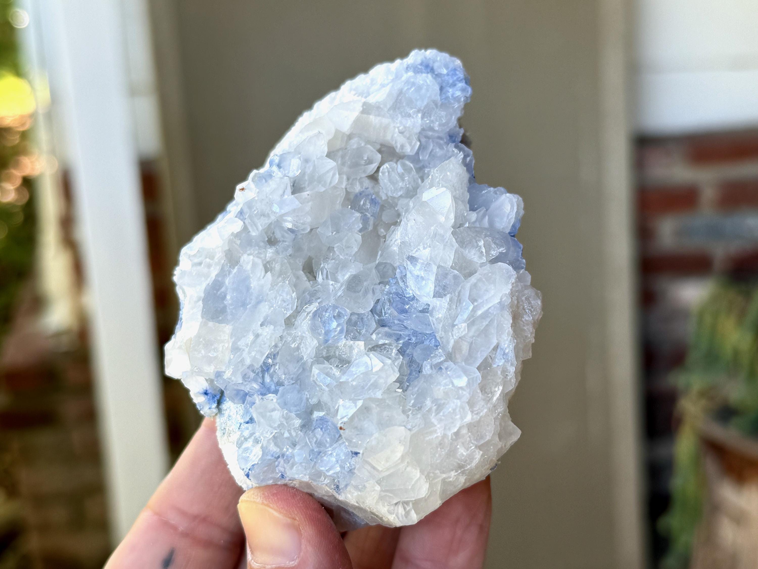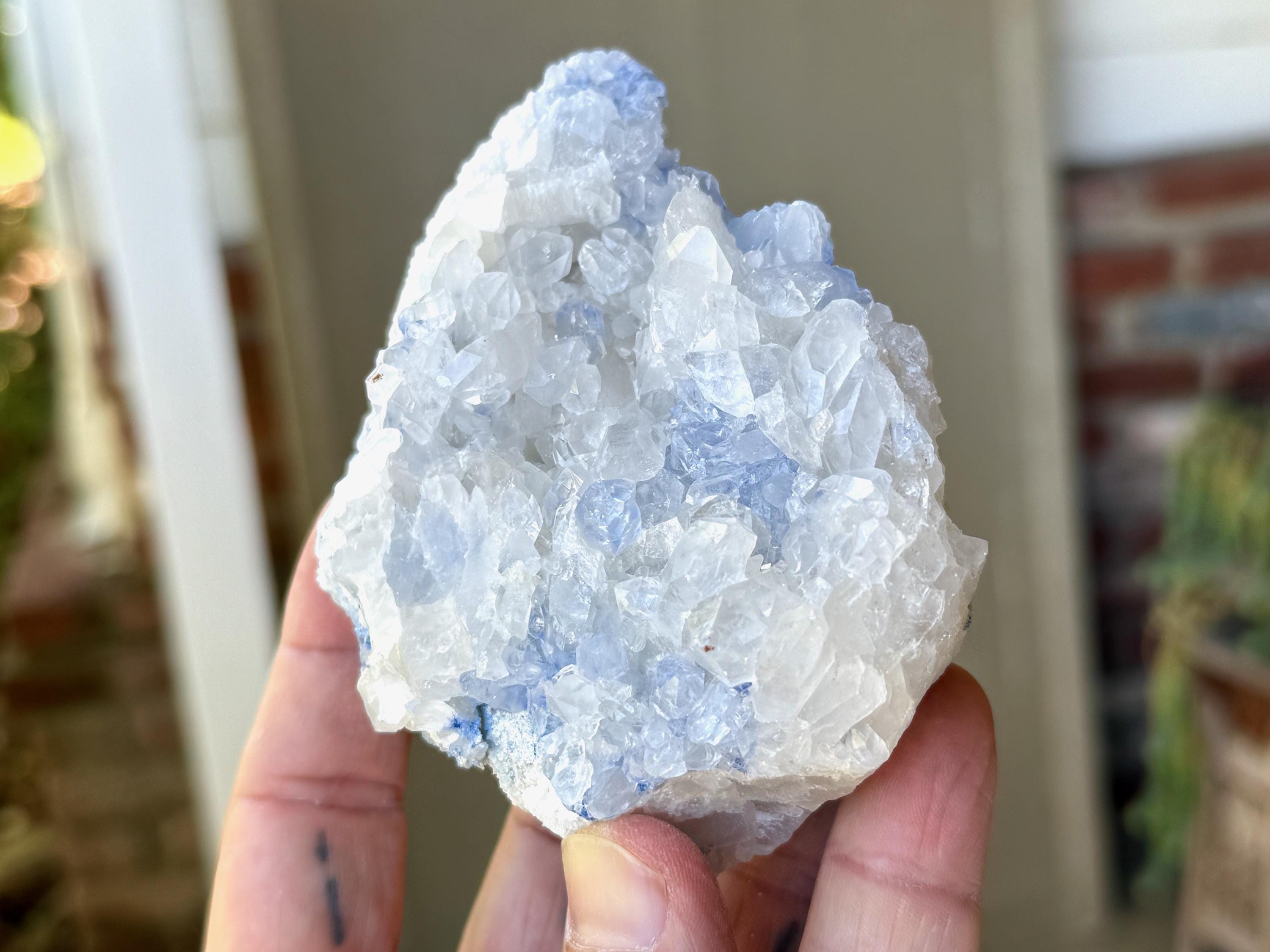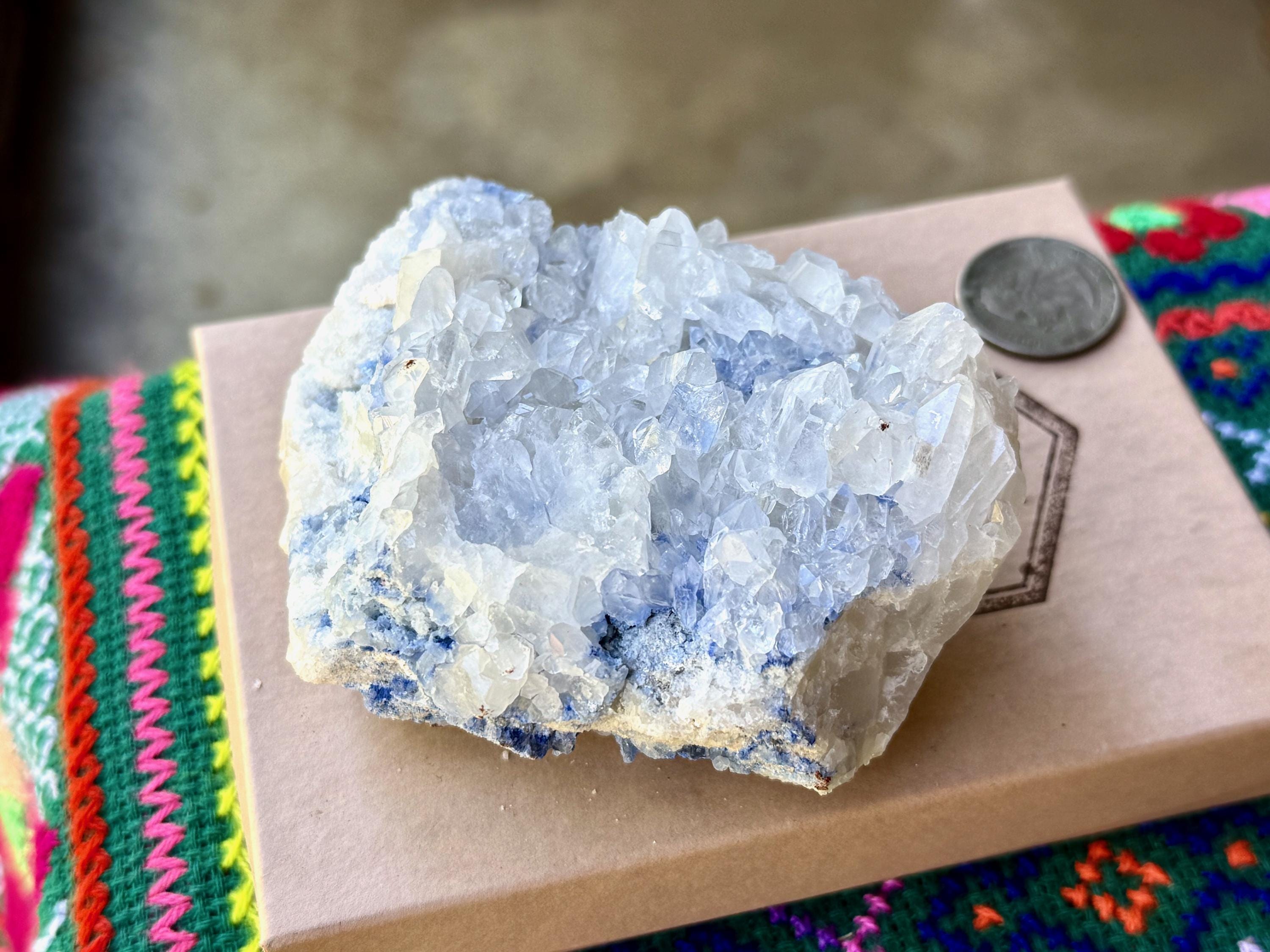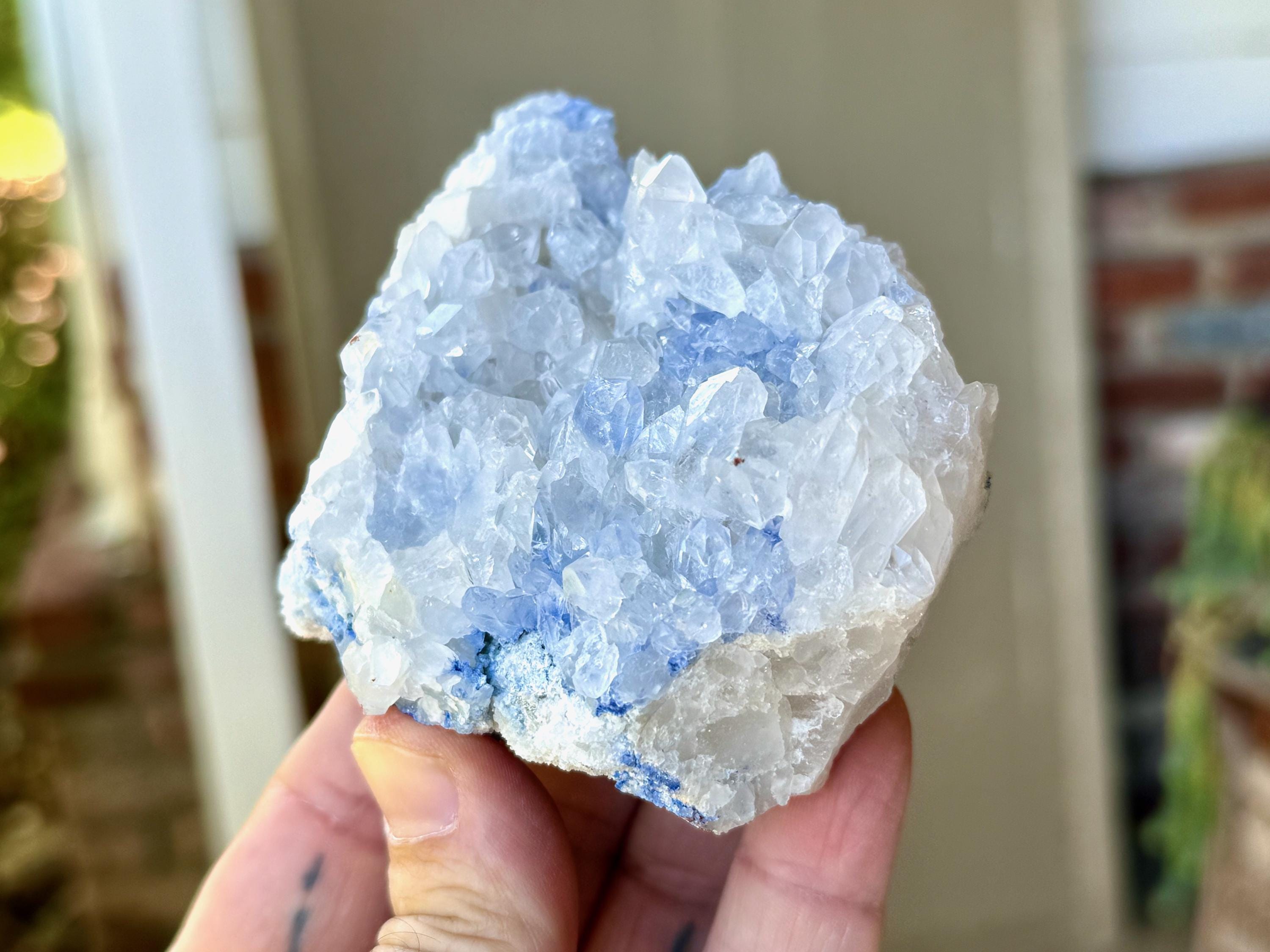 One of the largest and most beautiful crystals from this collection, this stunning Dumortierite Quartz cluster possesses a marvelous formation. Much of the actual Dumortierite is on the white matrix beneath, peeking out into the crystalline formations on top. These small crystal points are lustrous with a wonderful icy complexion. The dark blue Dumortierite is so vibrant, it's superb!
