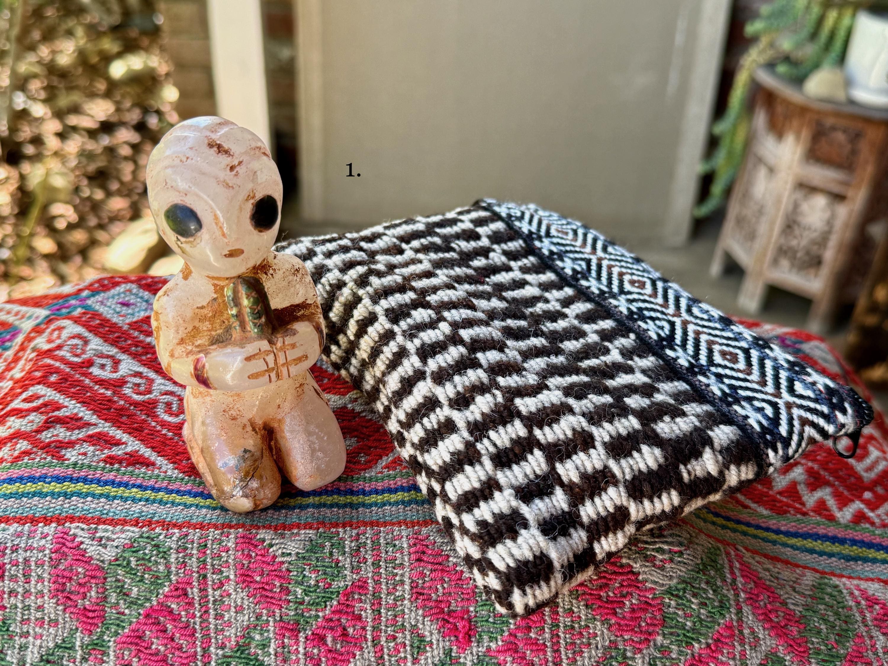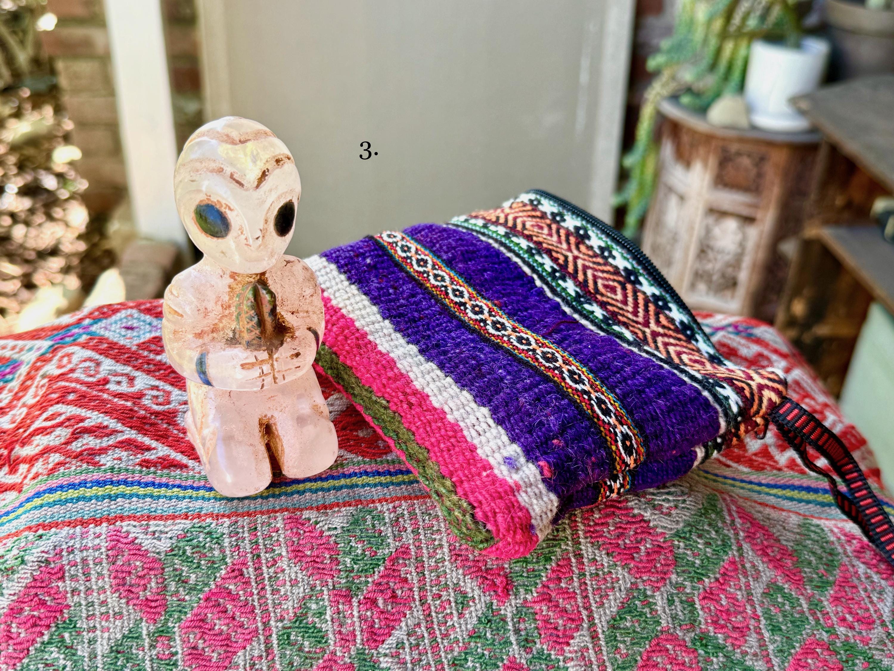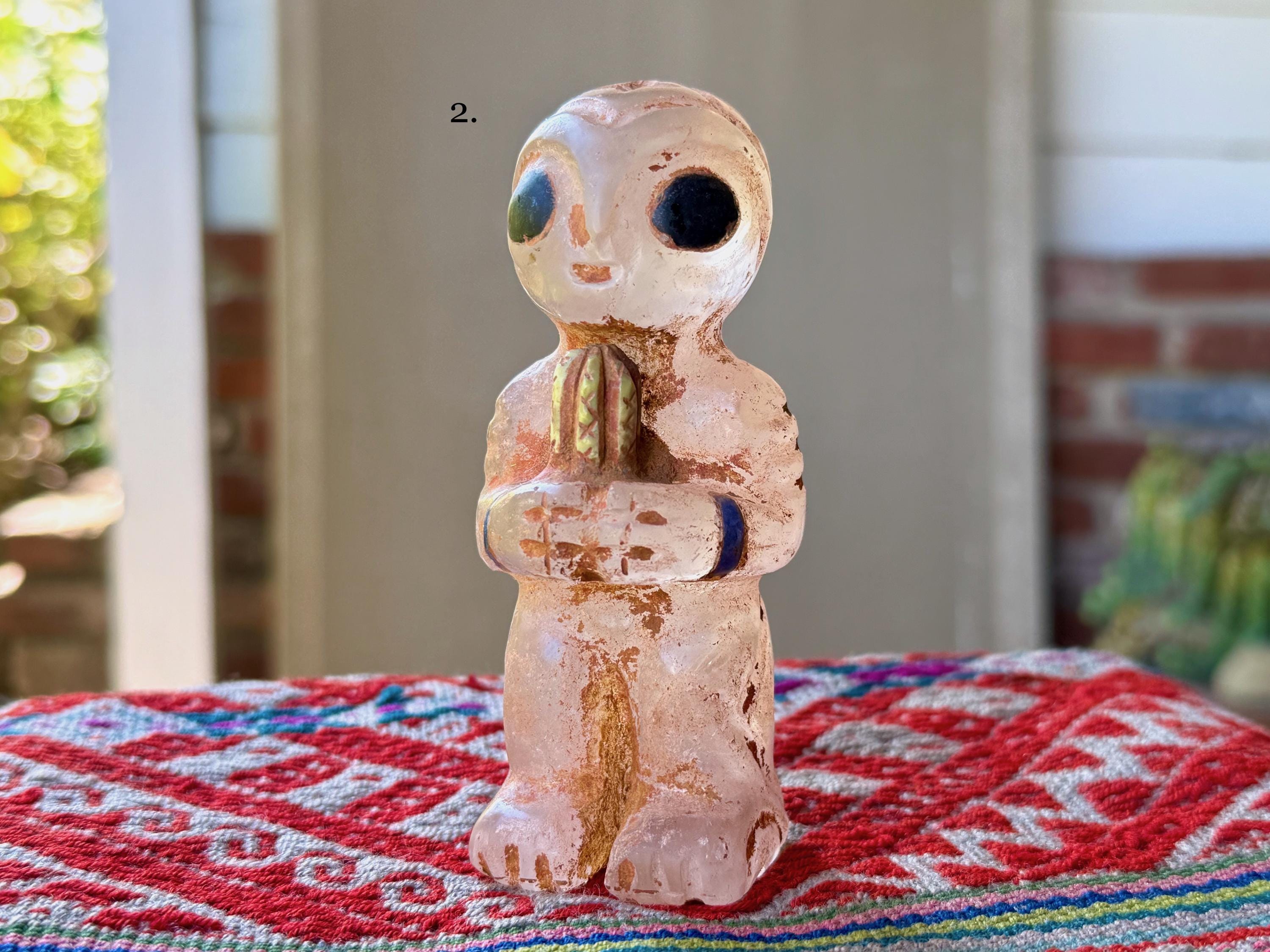 These adorable extraterrestrial space travelers are masterful works of art, so incredibly well-articulated, blending the ancient Incan art style with a more modern extraterrestrial vision.