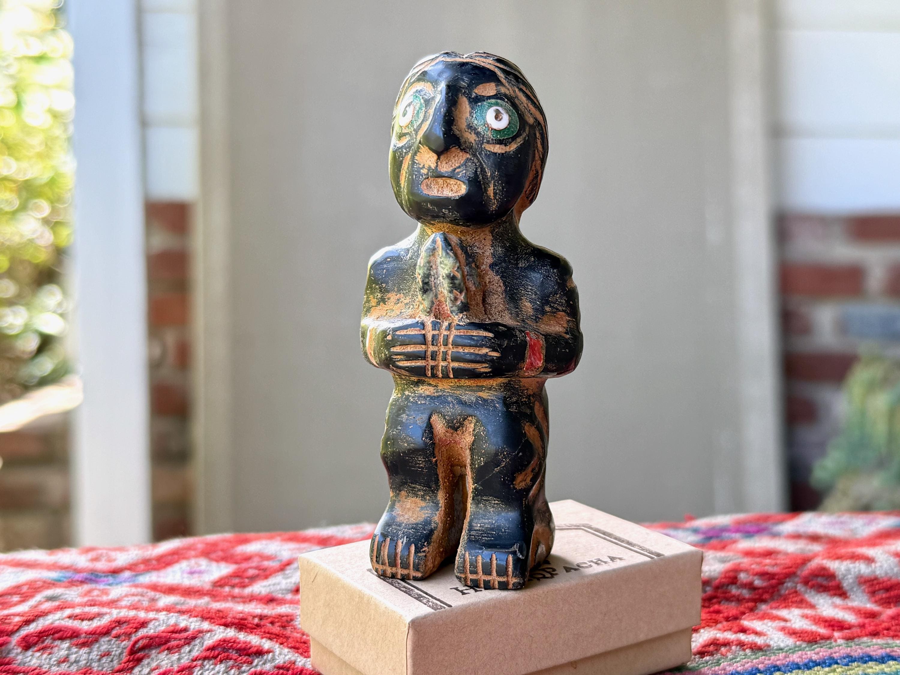 This beautiful statue representing "Pachamama" was hand carved from solid Obsidian by artist Ruben Layme in Peru's Sacred Valley.