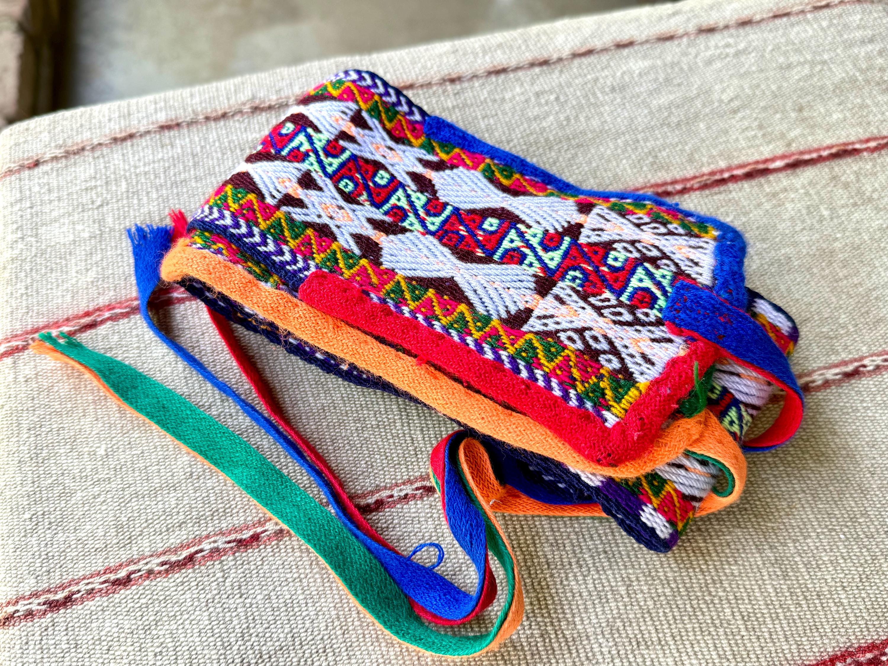 This Chumpi Belt comes from the textile community of Chawaytiri, a region known for its high-quality textiles. This belt features beautiful, vibrant colors with traditional patterns and sacred symbols woven throughout.