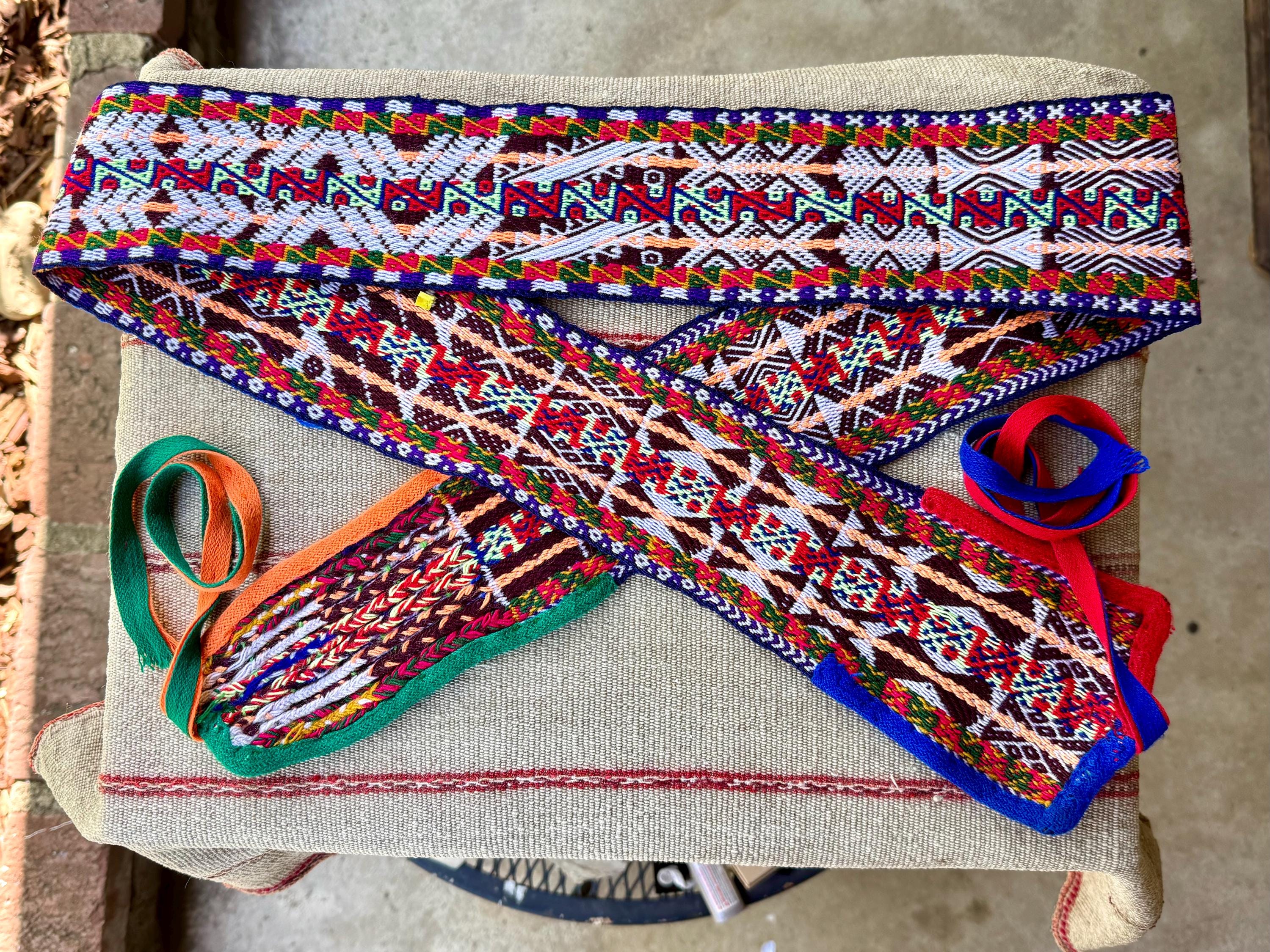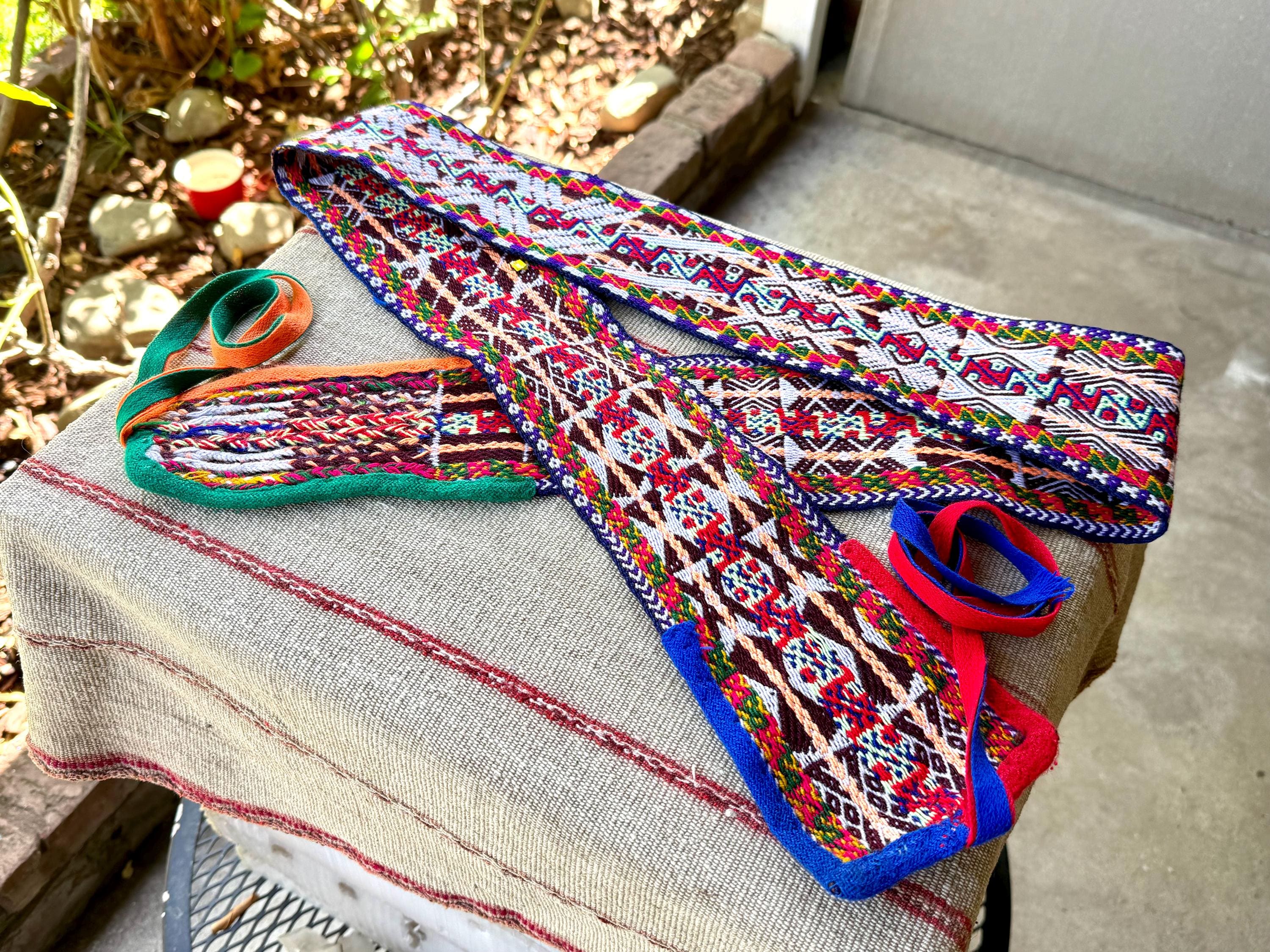 Chumpi Belts are traditionally worn in shamanic ceremony by the Q'ero as a means to protect their energetic center (the navel). These belts are woven from alpaca wool and natural fibers, with natural dyes as well, and can take weeks to complete.