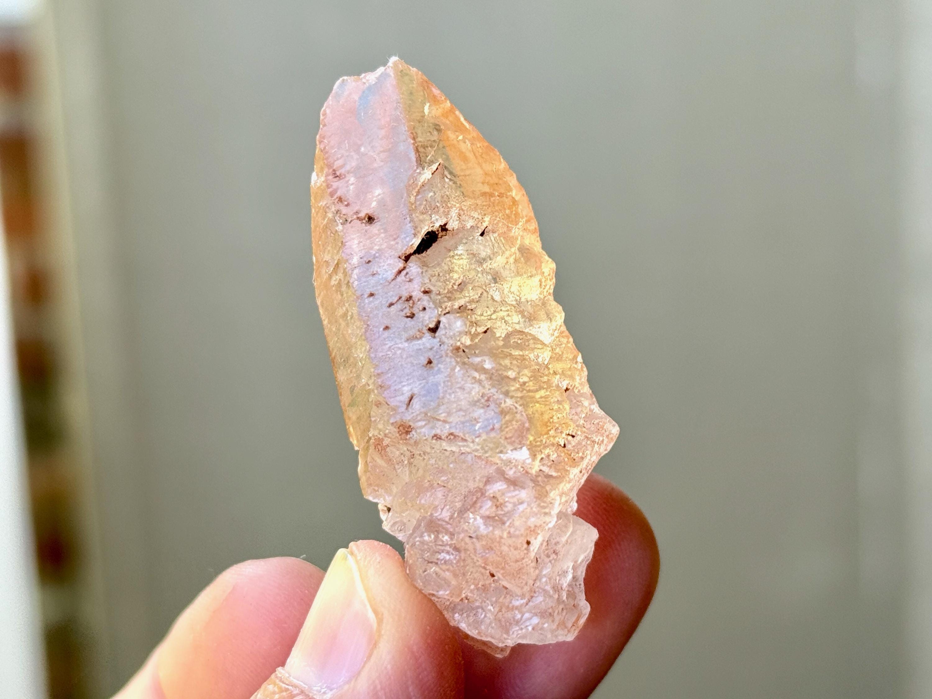 Tangerine Quartz is a wonderful crystal for working with issues of the self: understanding, acceptance and growth. Its vibrant energy promotes creativity and the motivation to manifest one's creative ideas into reality.