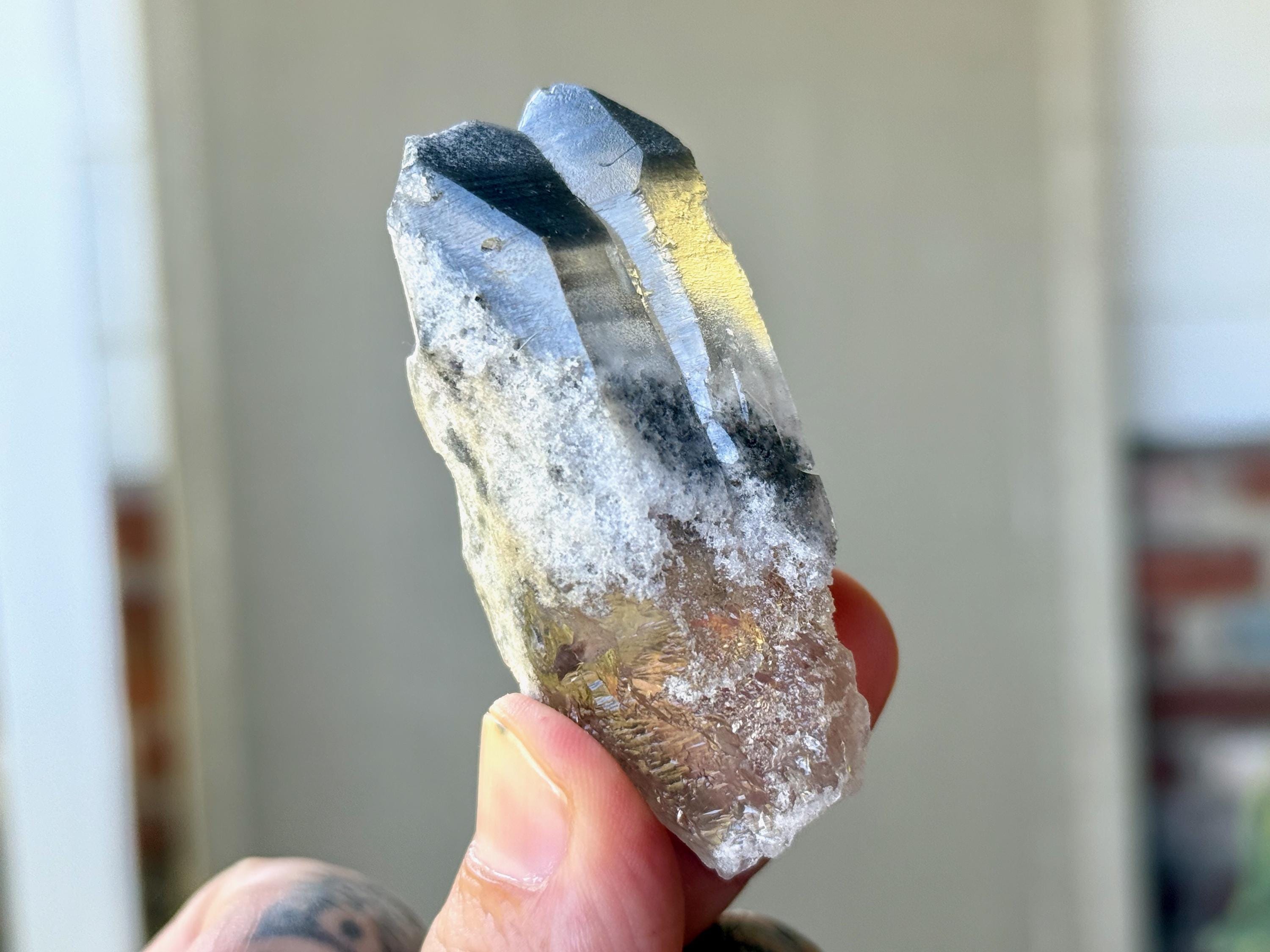 Black Phantom Quartz get their unique look and energy from the inclusion of ancient petroleum, carbon and plant-matter inclusion called Anthraxolite. This mineral is a powerful grounding stone, that is of very high value in working to detoxify, both on the physical level and the emotional level, clearing scars and working through issues from the past. These crystals are wonderful at activating the Root Chakra, for grounding and for connecting to ancient earth energy.