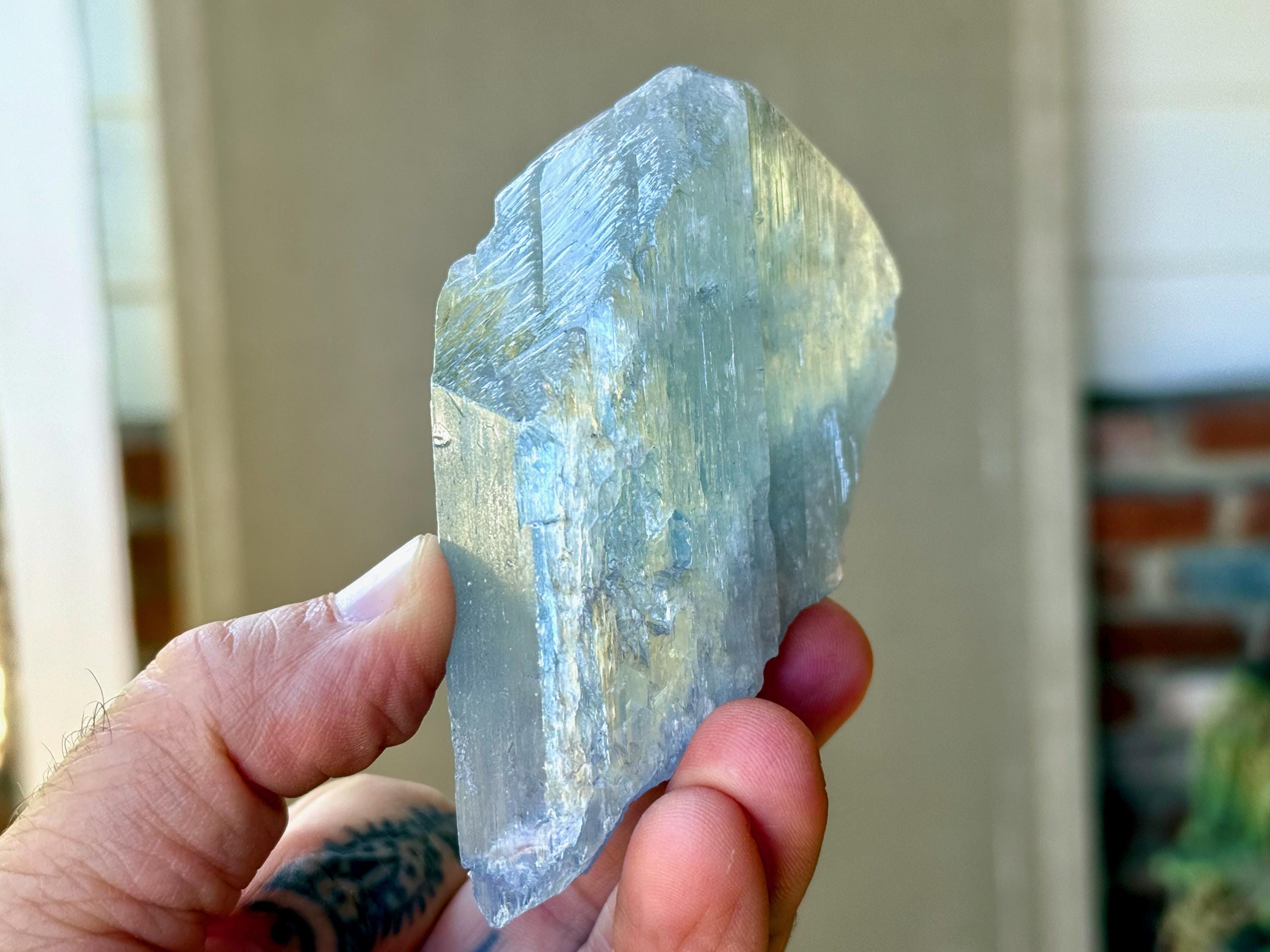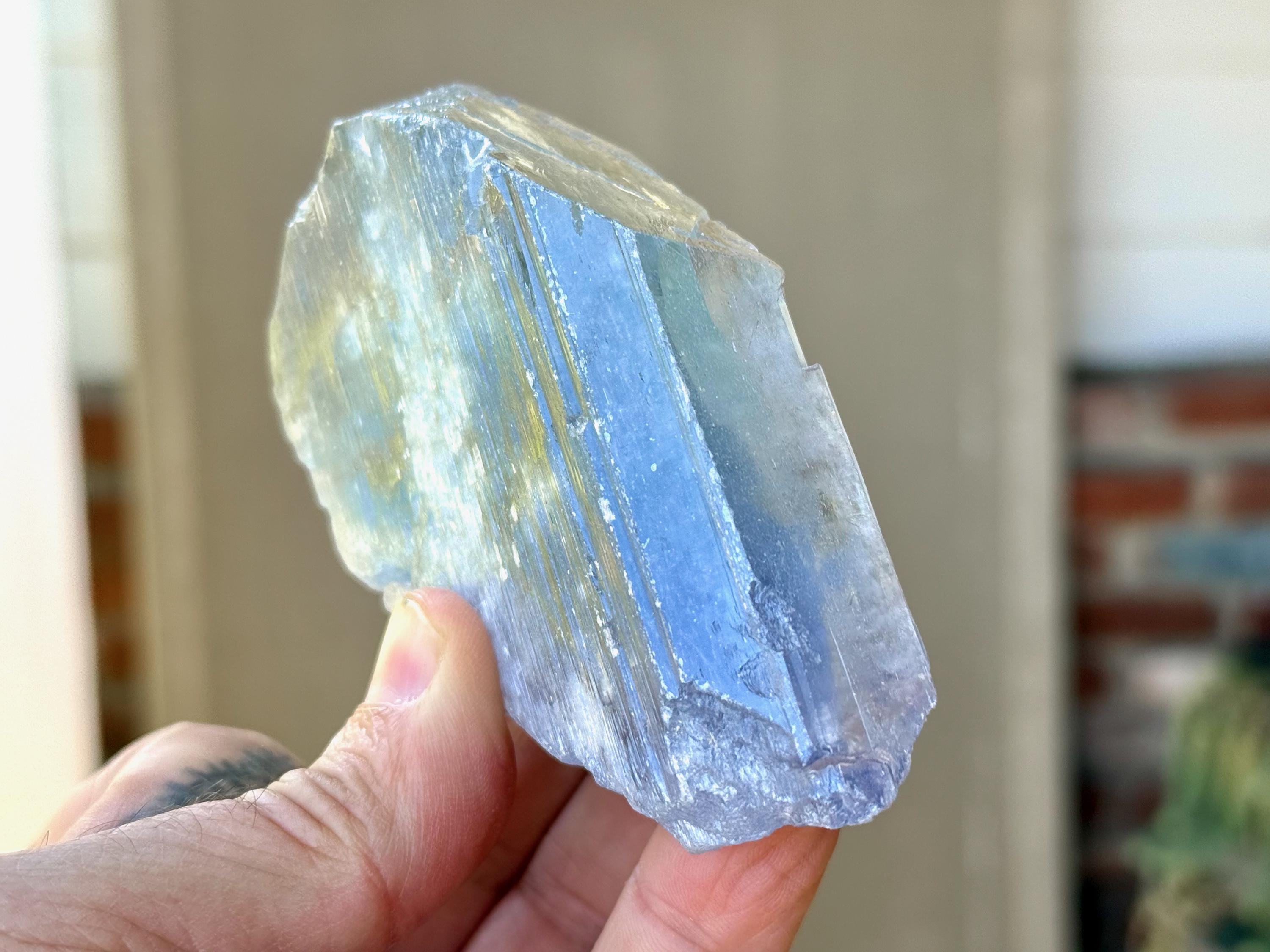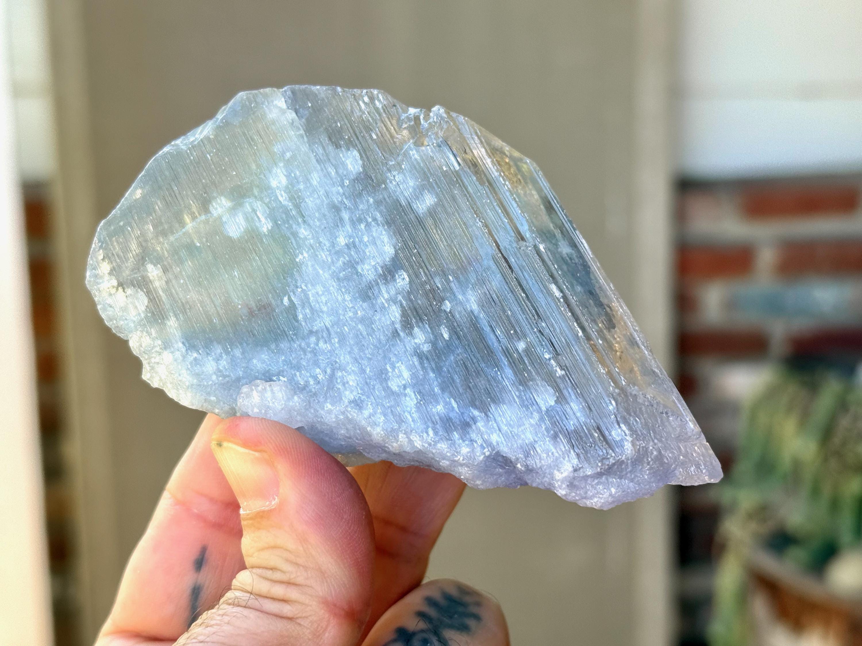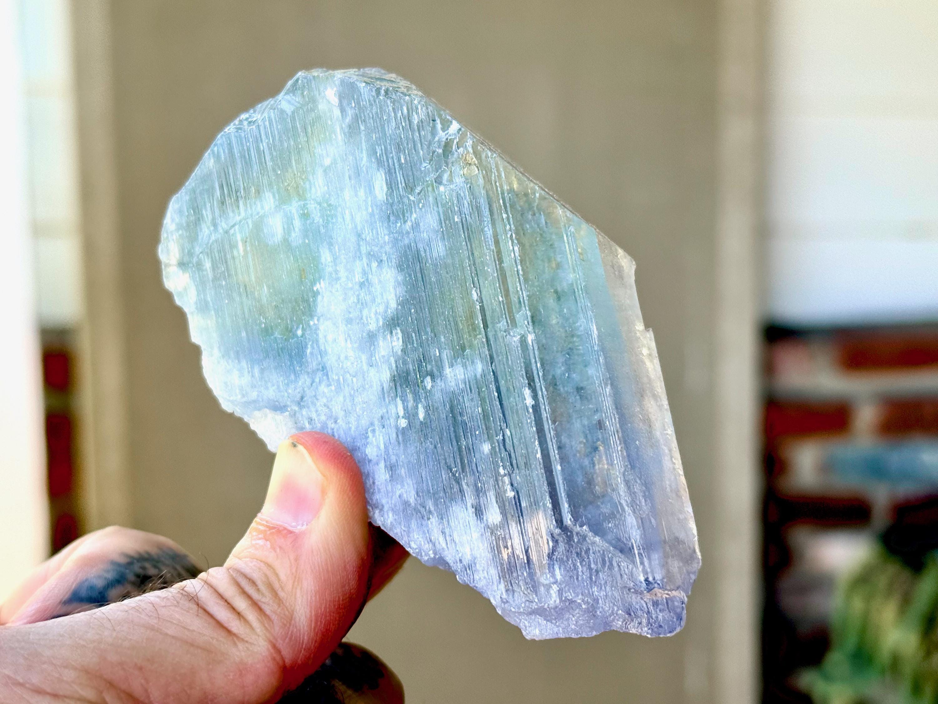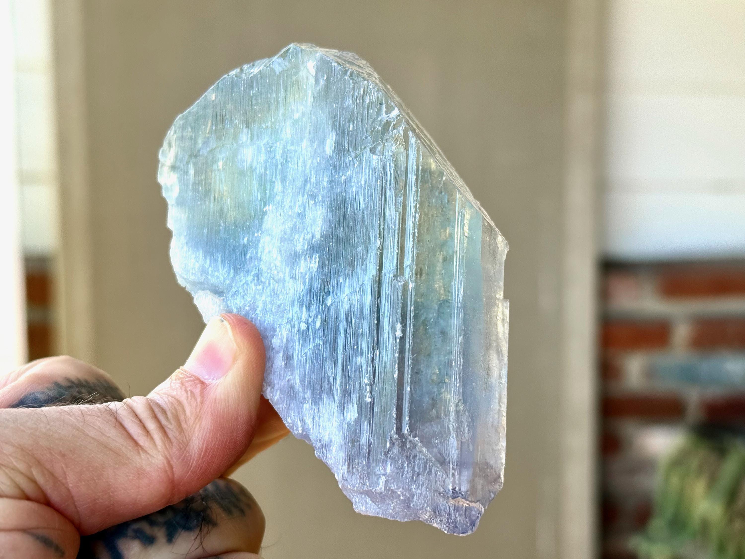 **Please note, Kunzite has the tendency to fade in color with prolonged exposure to sunlight. It is generally a slow process and will not happen in hours or even days, but we advise not keeping Kunzite displayed for extended periods of time in direct sunlight.**