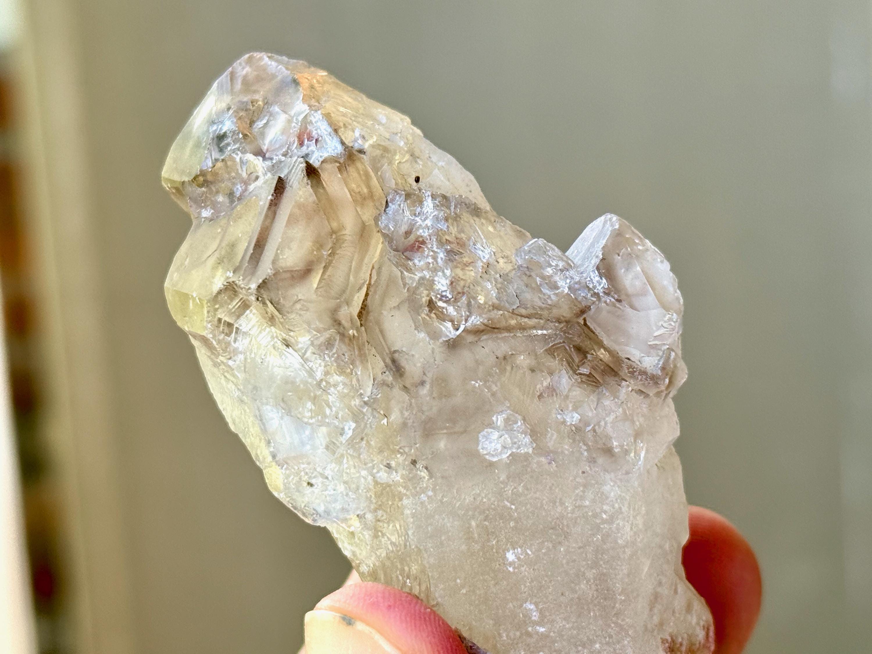 This Elestial Smoky Quartz comes from a 2020 find in the Aracuai region of Minas Gerais, Brazil. Elestial crystals can be distinguished by their layered growth patterns, multiple terminations (often trigonic), natural etched or textural surfaces (i.e. Jacare), and other distinctive and unique growth habits.