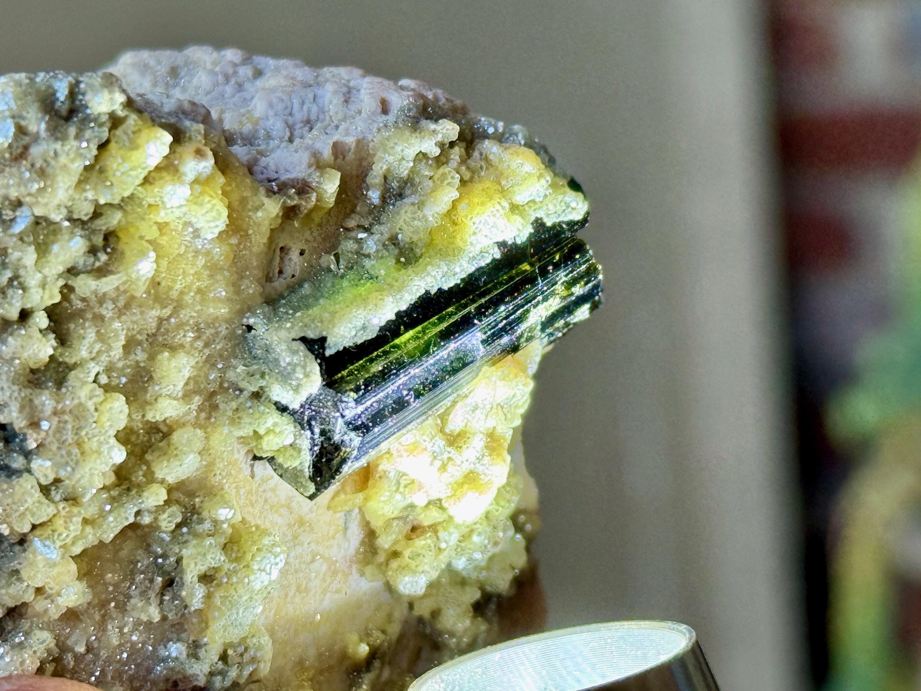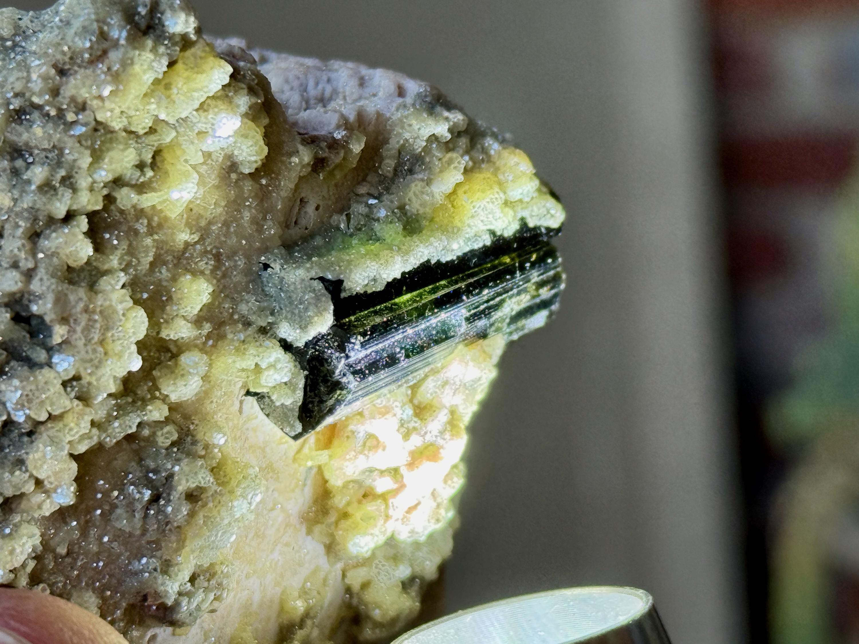 Green Tourmaline purifies and strengthens, allowing one to energetically carry greater amounts of Life Force (Prana Energy). As more energy is carried within the physical body, higher degrees of consciousness can be maintained. It is a wonderful protection stone, deal for sealing holes in the aura that leave one vulnerable to negativity.