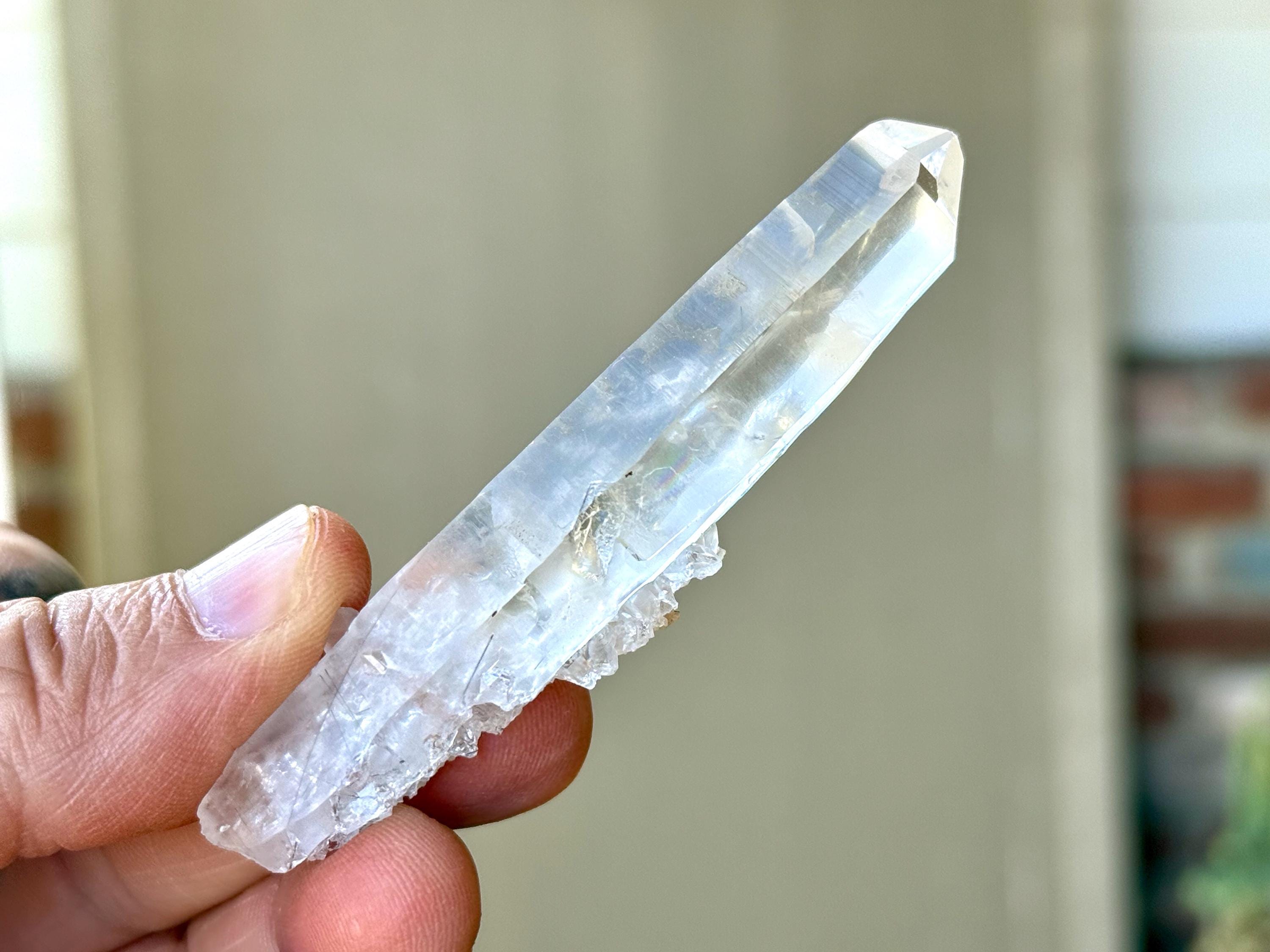 Laser Quartz is a term referring to a type of Quartz formation that is often elongated and tapered toward the top. These crystals are considered to be useful allies in energetic healing, specifically for concentrating energy at a particular point. This can be useful in personal healing work to alleviate chronic pain, etc. Laser Quartz are also useful tools in clearing physical areas of heavy energies.