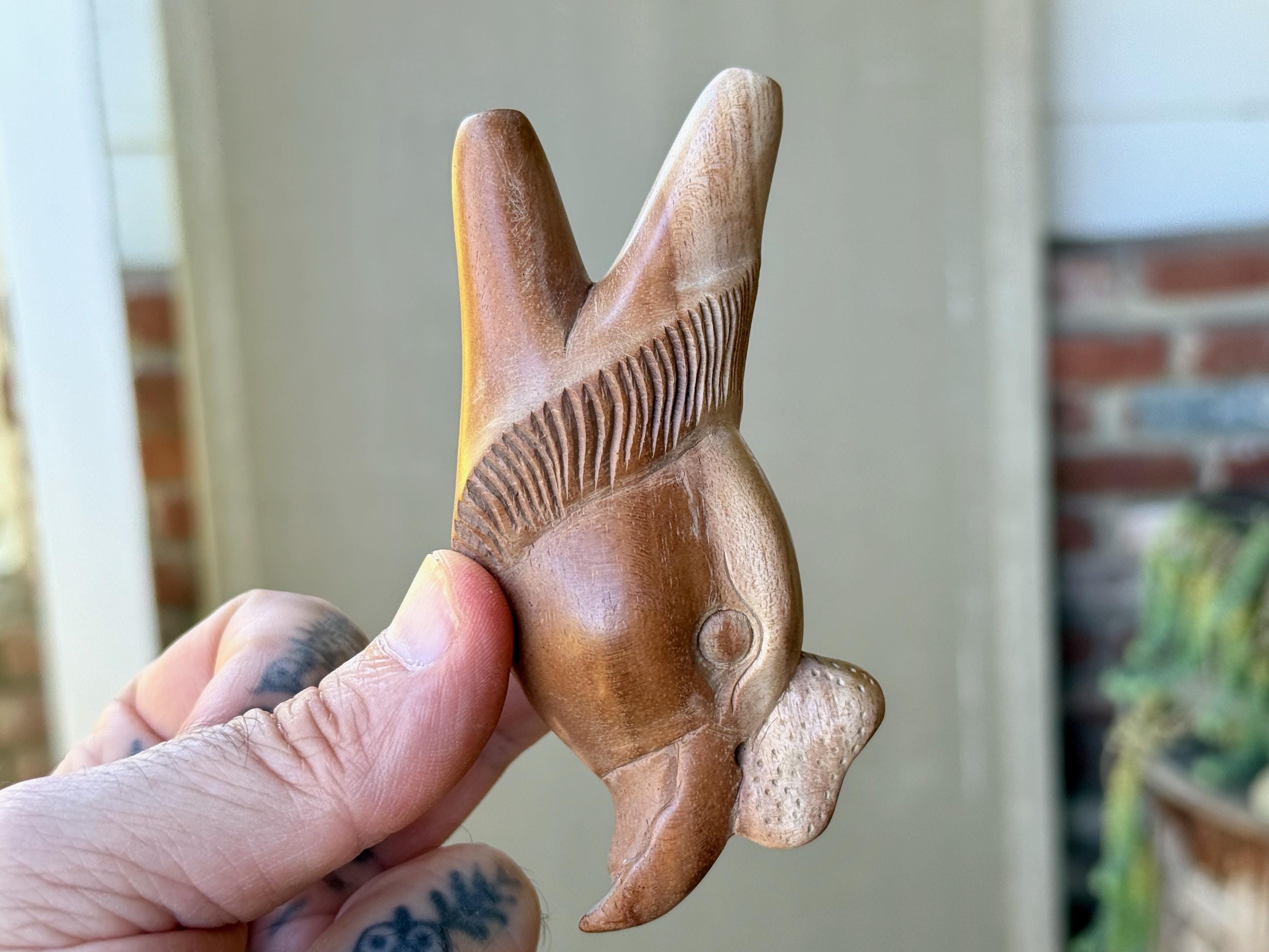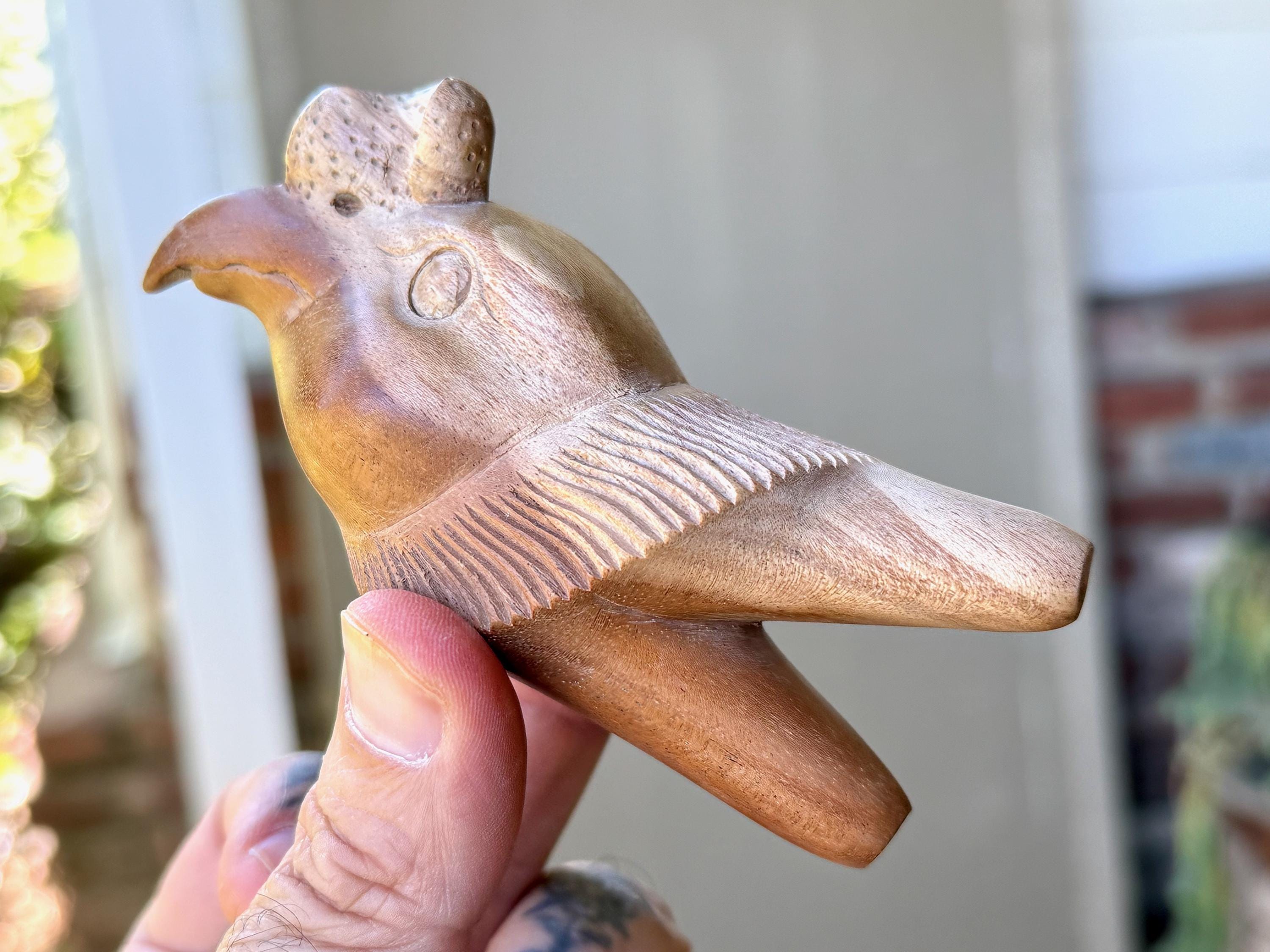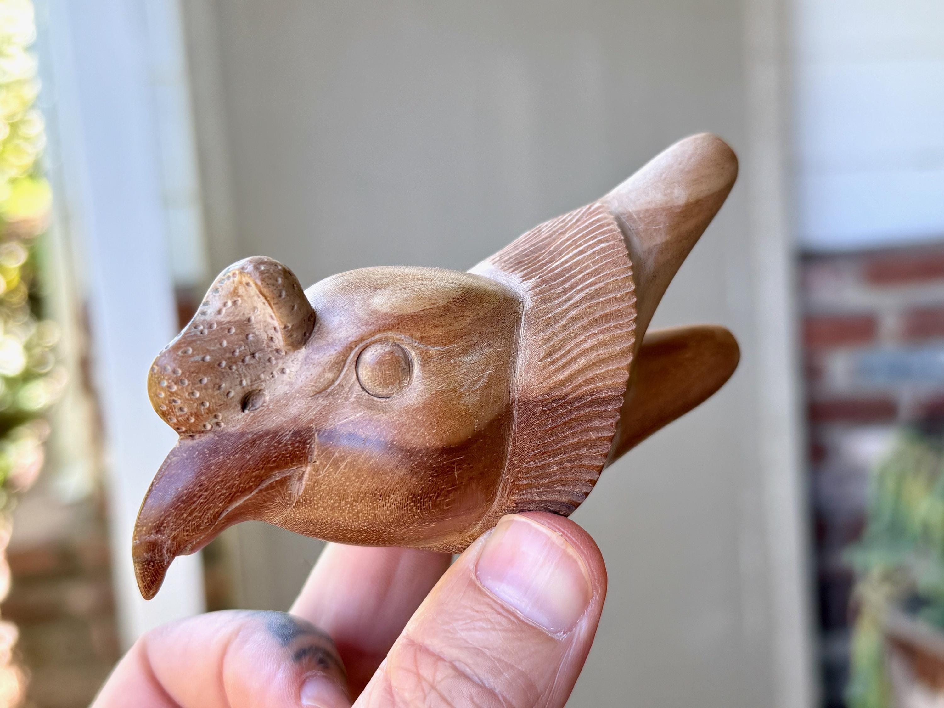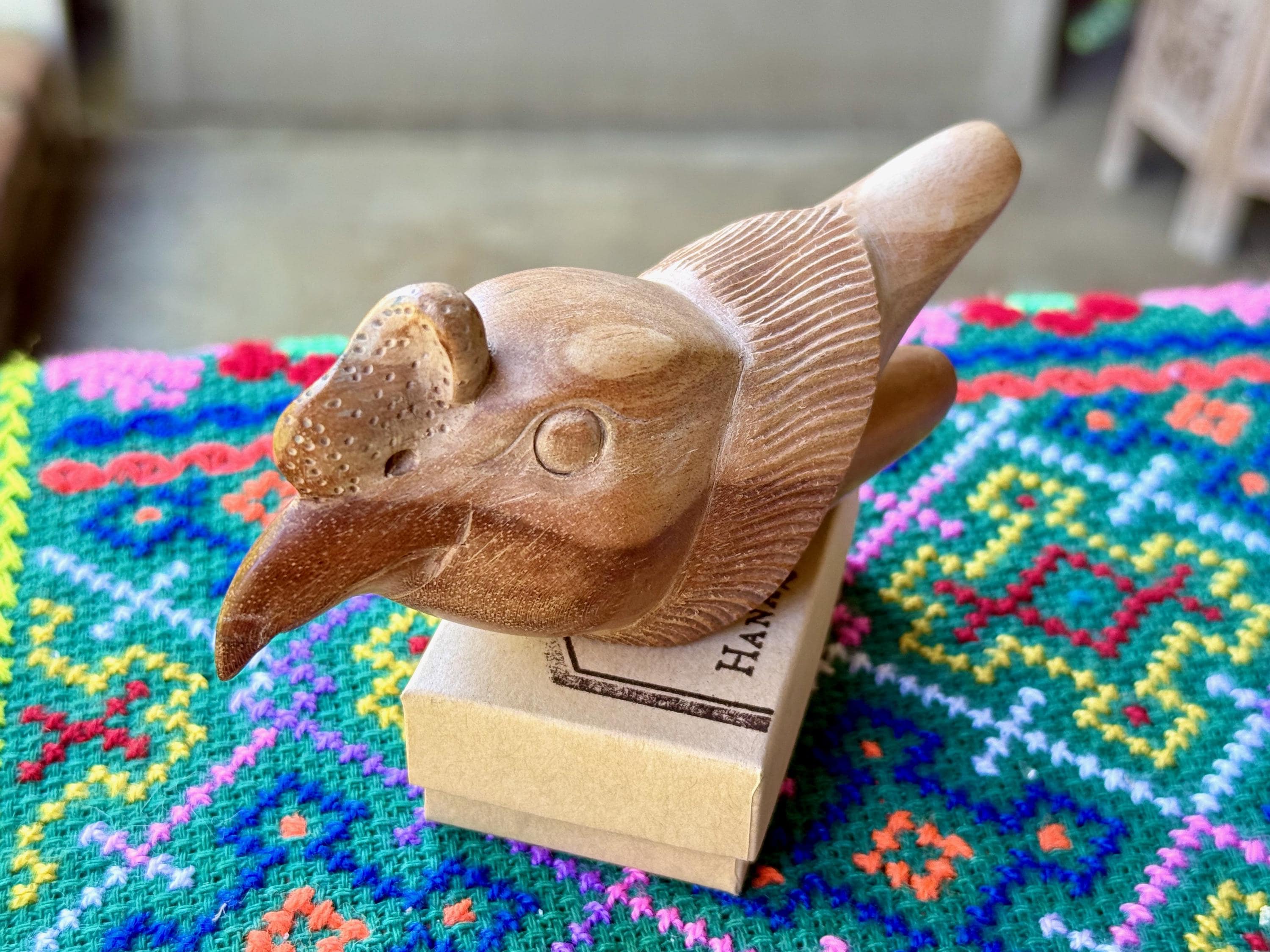 A masterful work of art, this powerful Condor is artistically carved from a single block of beautifully grained Tropoical Hardwood. Its features are so wonderfully articulated and expressive. A very powerful medicine tool.