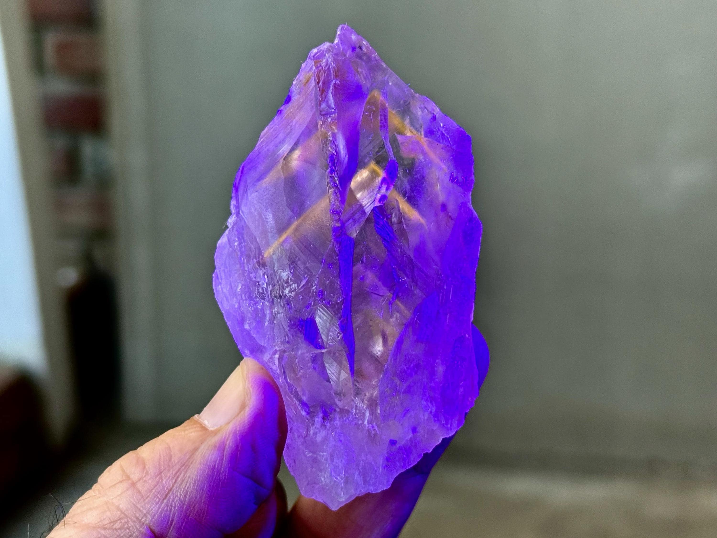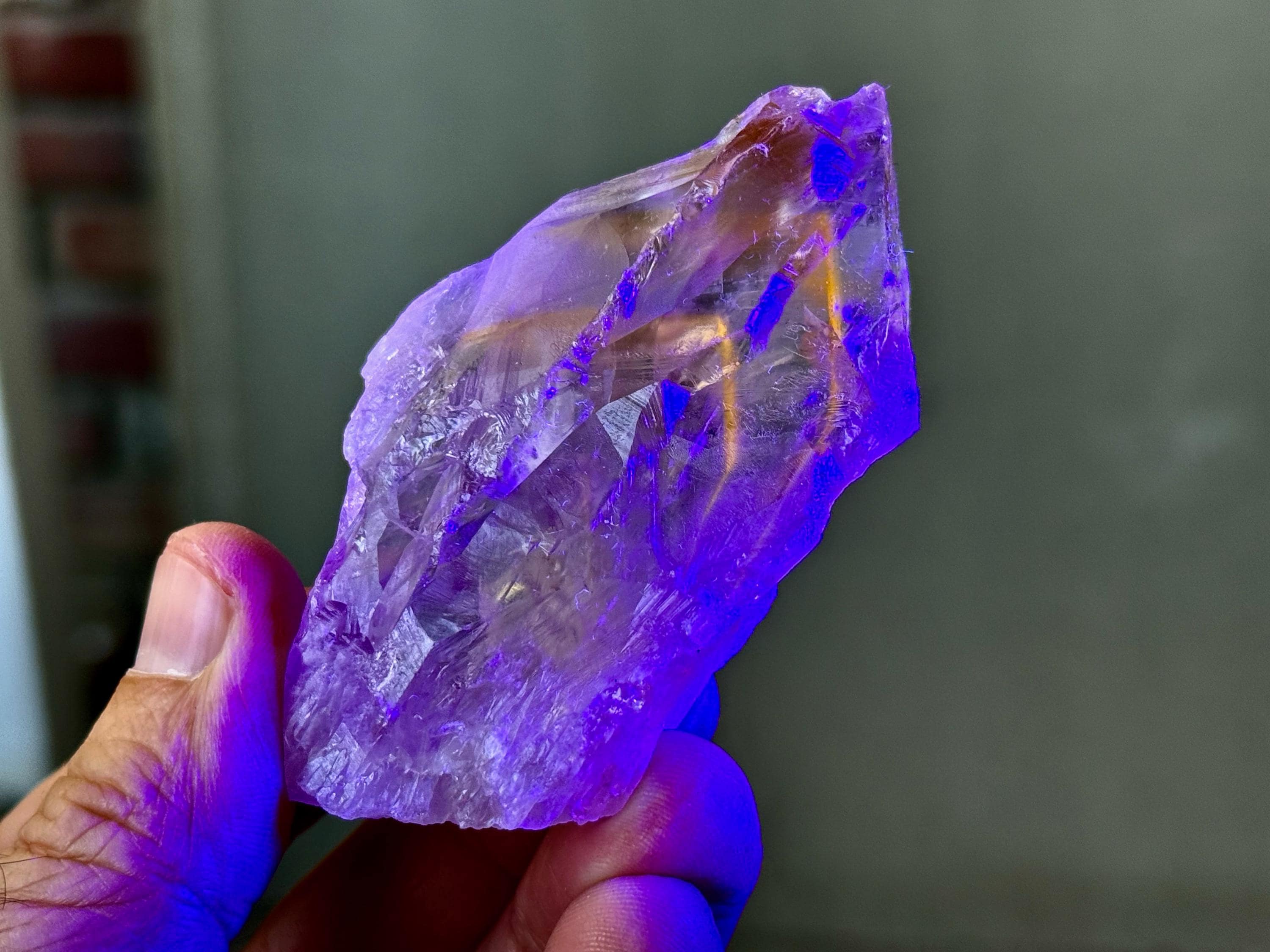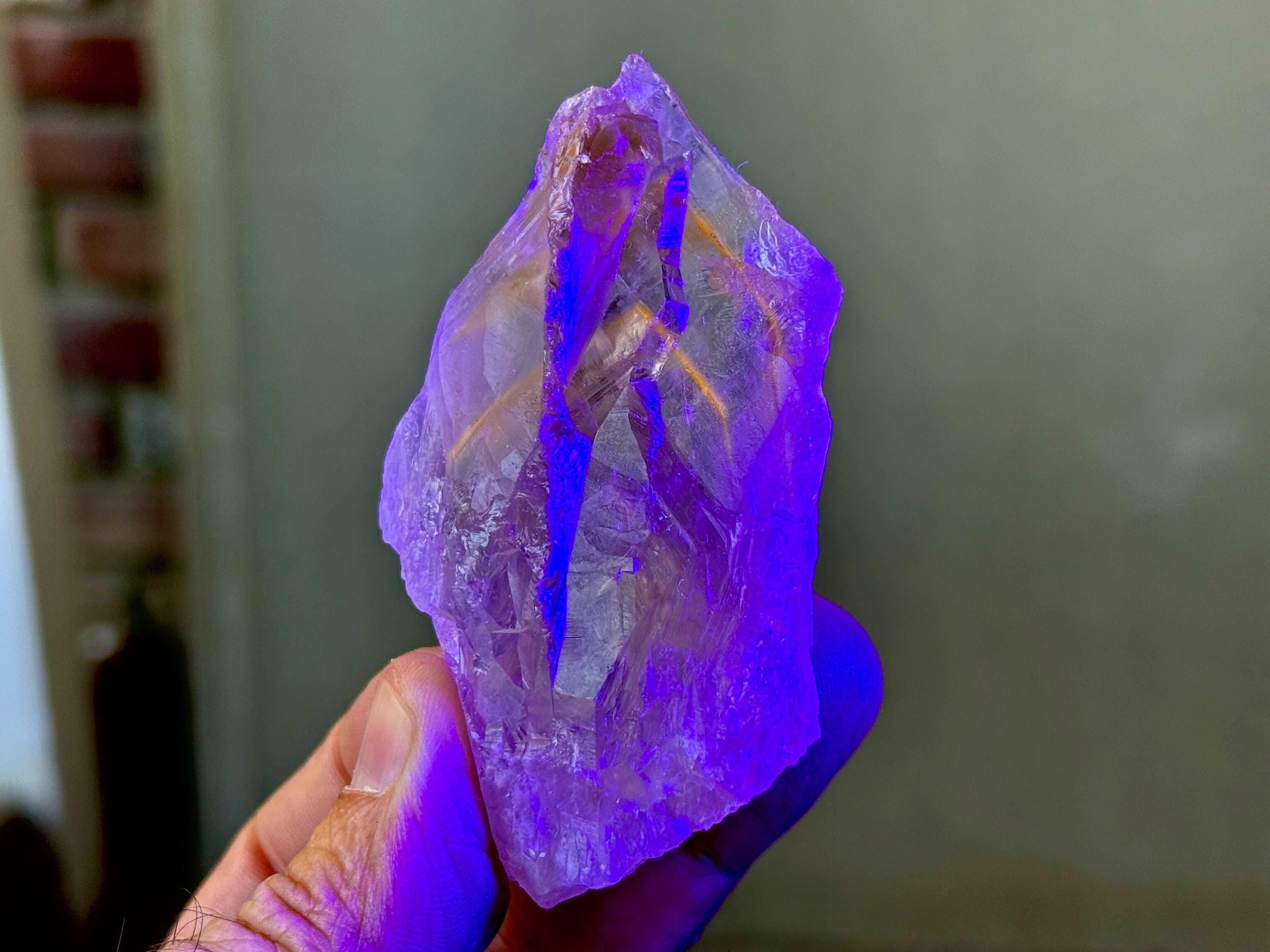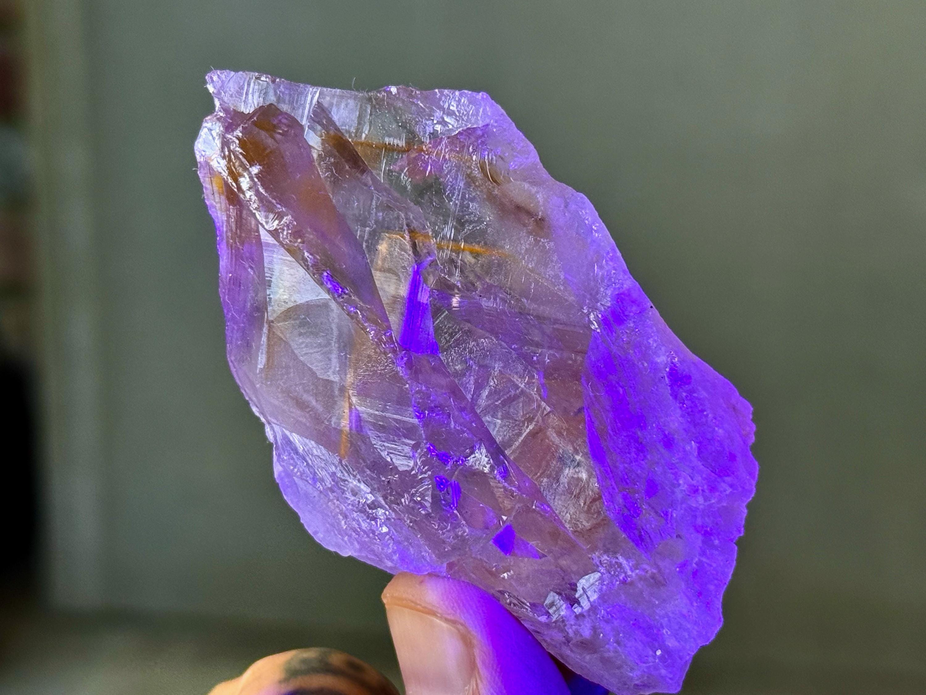 **Please note, the inclusions in this crystal are all natural/untreated. A UV light is necessary to see the phantoms glow, and they can be found affordably at Amazon or any other online outlet.