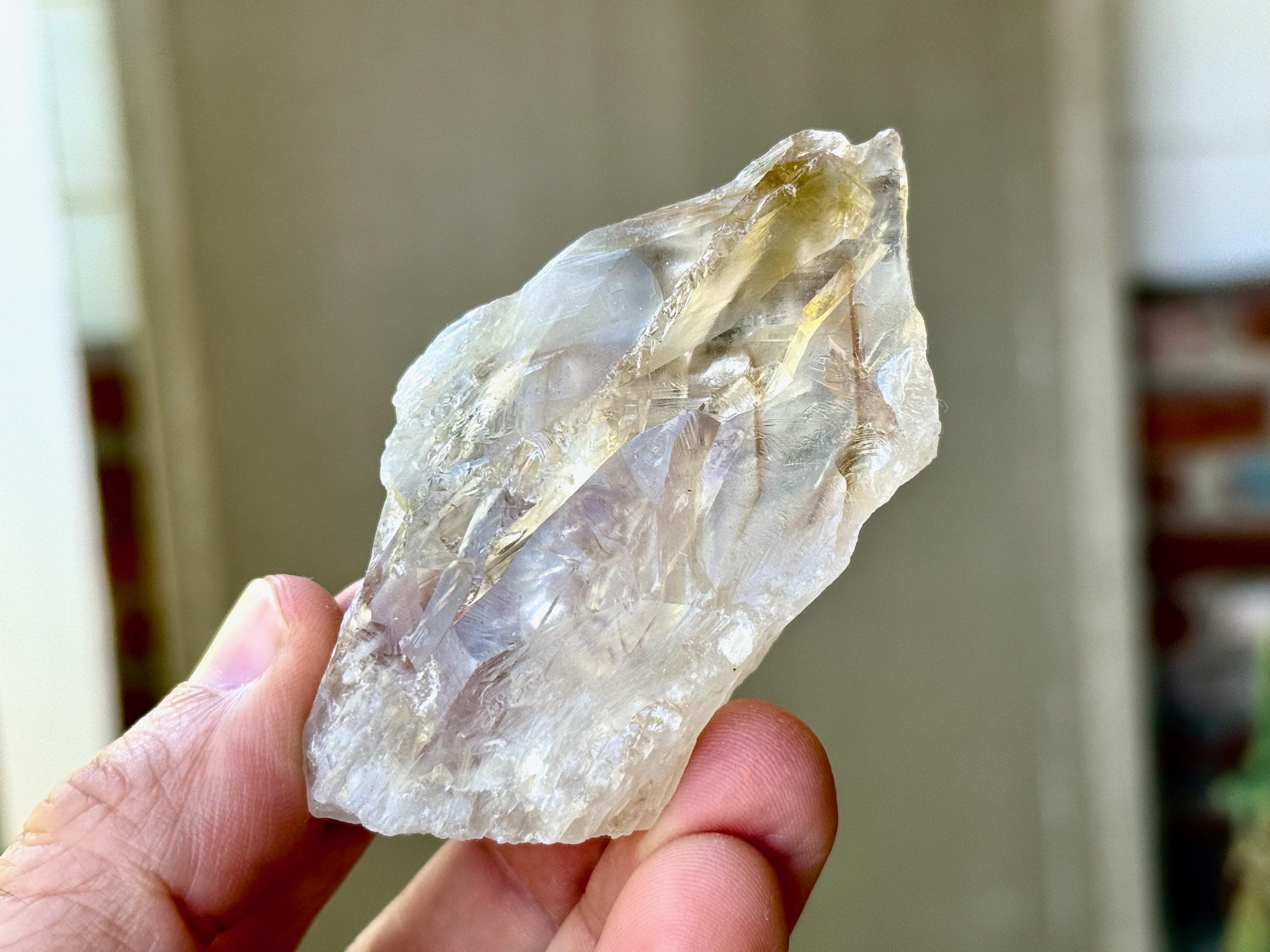 This stunning, all-natural Powellite Phantom Quartz comes from a new find in Bahia, Brazil. While most of the crystals from this find were cut and polished at the source, this crystal comes from a small parcel of entirely natural pieces we were able to acquire!