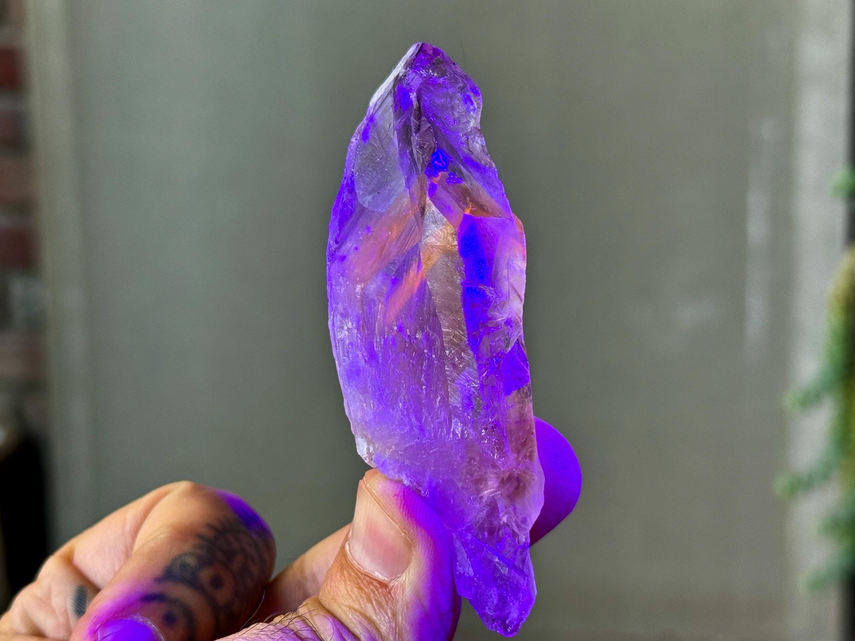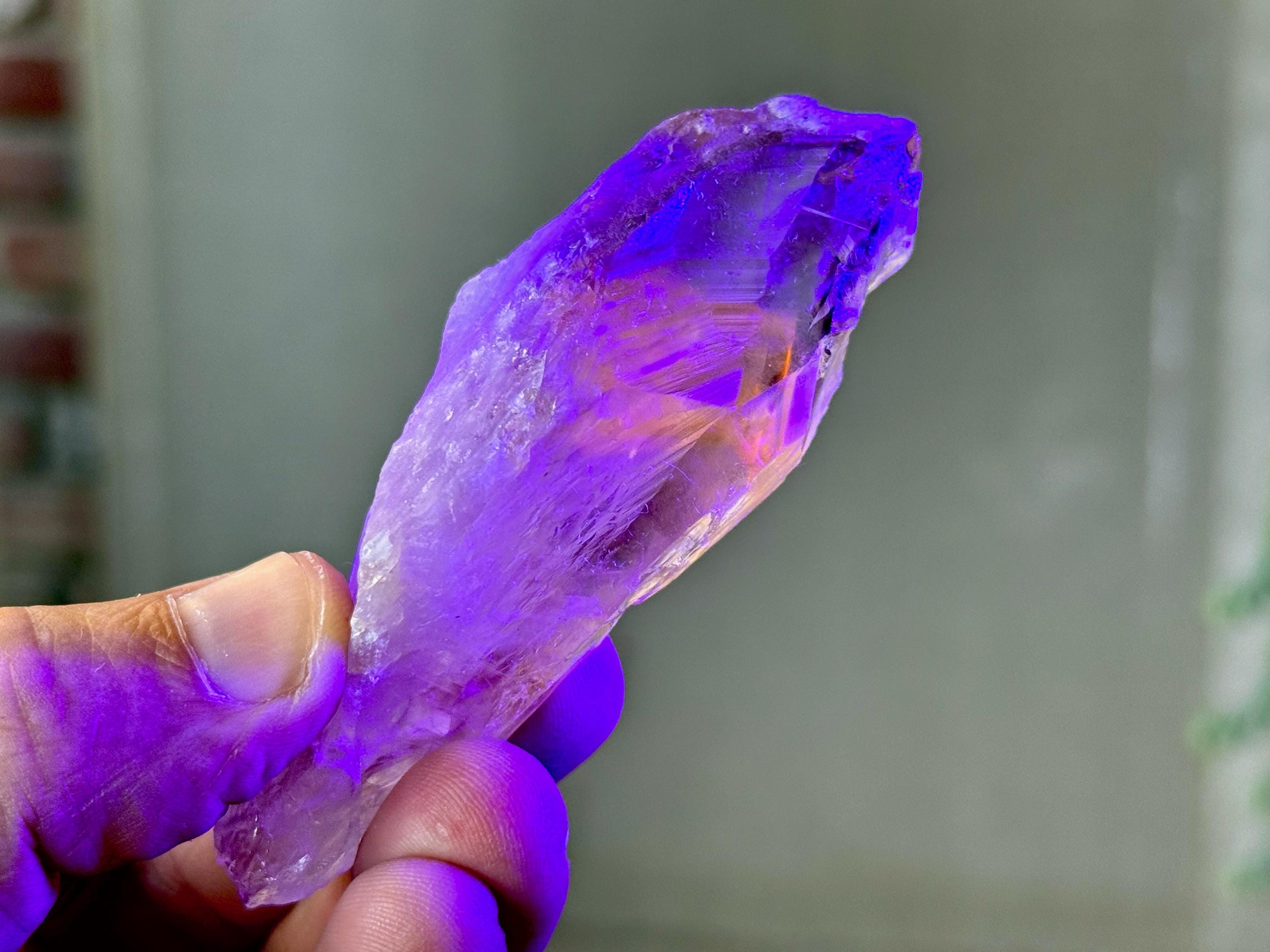 **Please note, the inclusions in this crystal are all natural/untreated. A UV light is necessary to see the phantoms glow, and they can be found affordably at Amazon or any other online outlet.