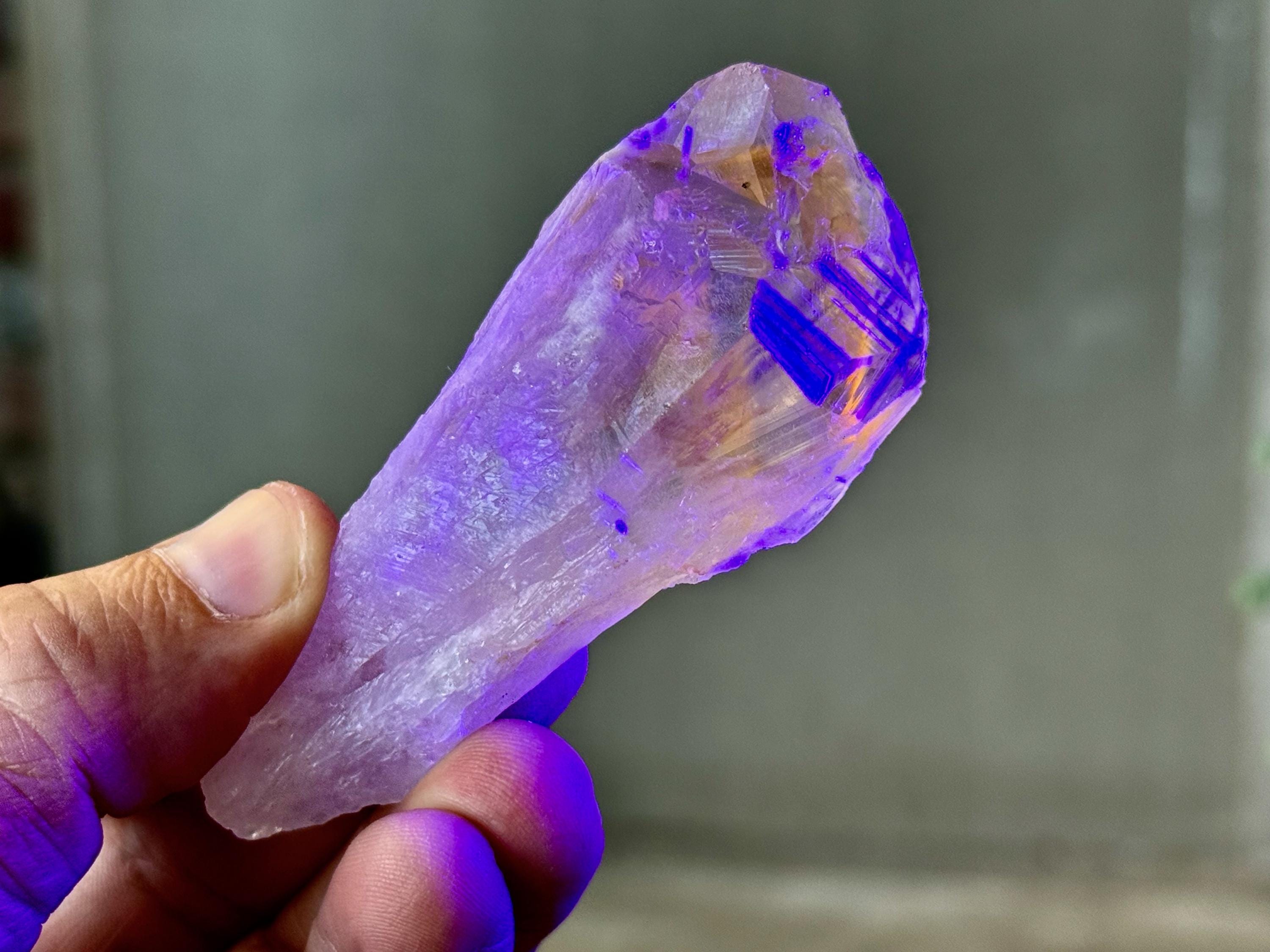 **Please note, the inclusions in this crystal are all natural/untreated. A UV light is necessary to see the phantoms glow, and they can be found affordably at Amazon or any other online outlet.