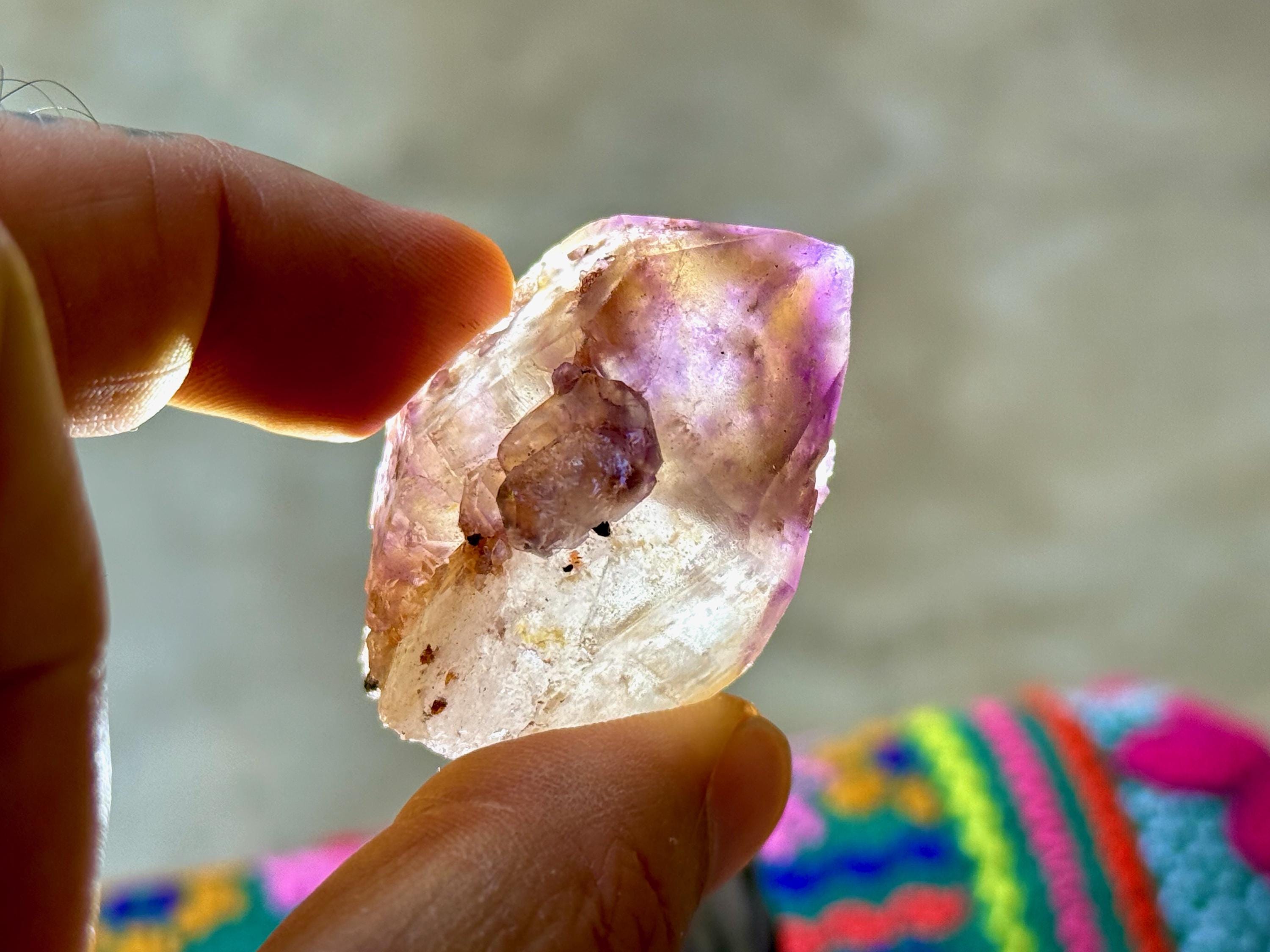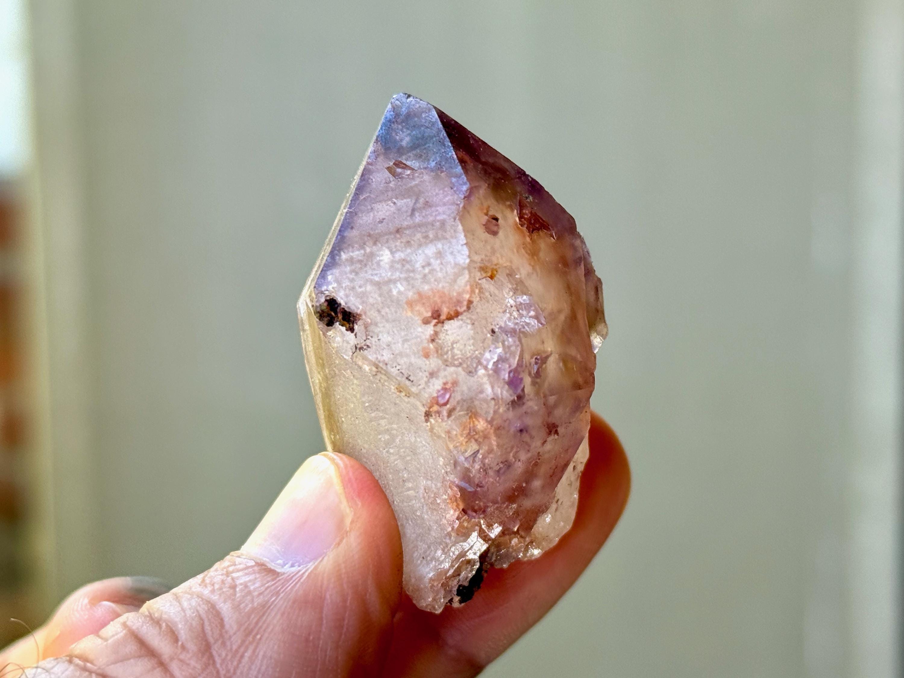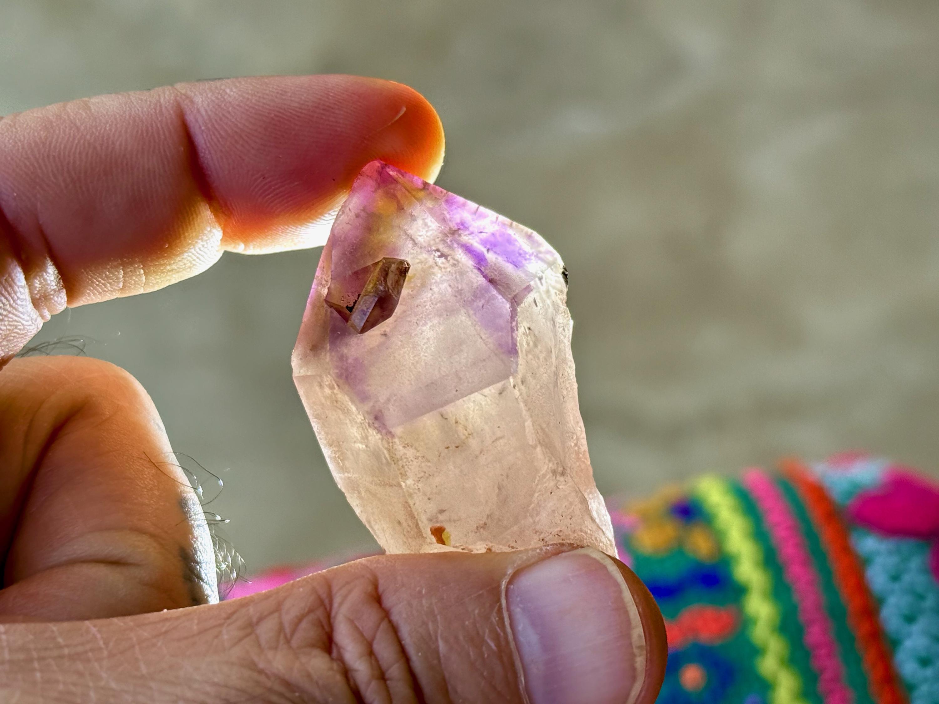 This stunning Dreamcoat Lemurian comes from a recent small find in Cristalina, Goias, Brazil.