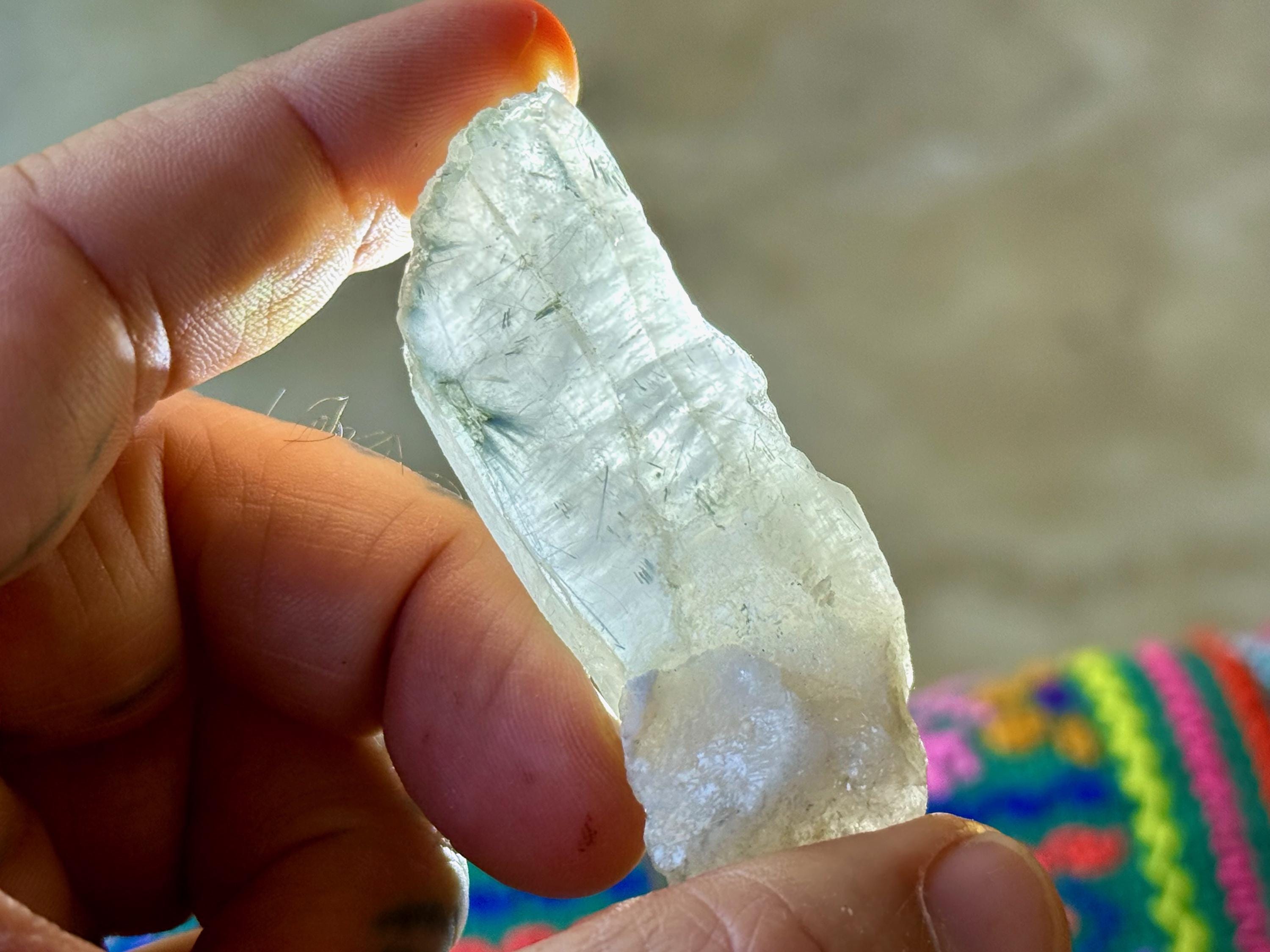 This beautiful Indicolite Quartz crystal comes from a recent find in Jenipapo, Minas Gerais, Brazil. Indicolite (Blue Tourmaline) is one of the preeminent stones to aid the expansion of psychic skills such as channeling and mediumship.