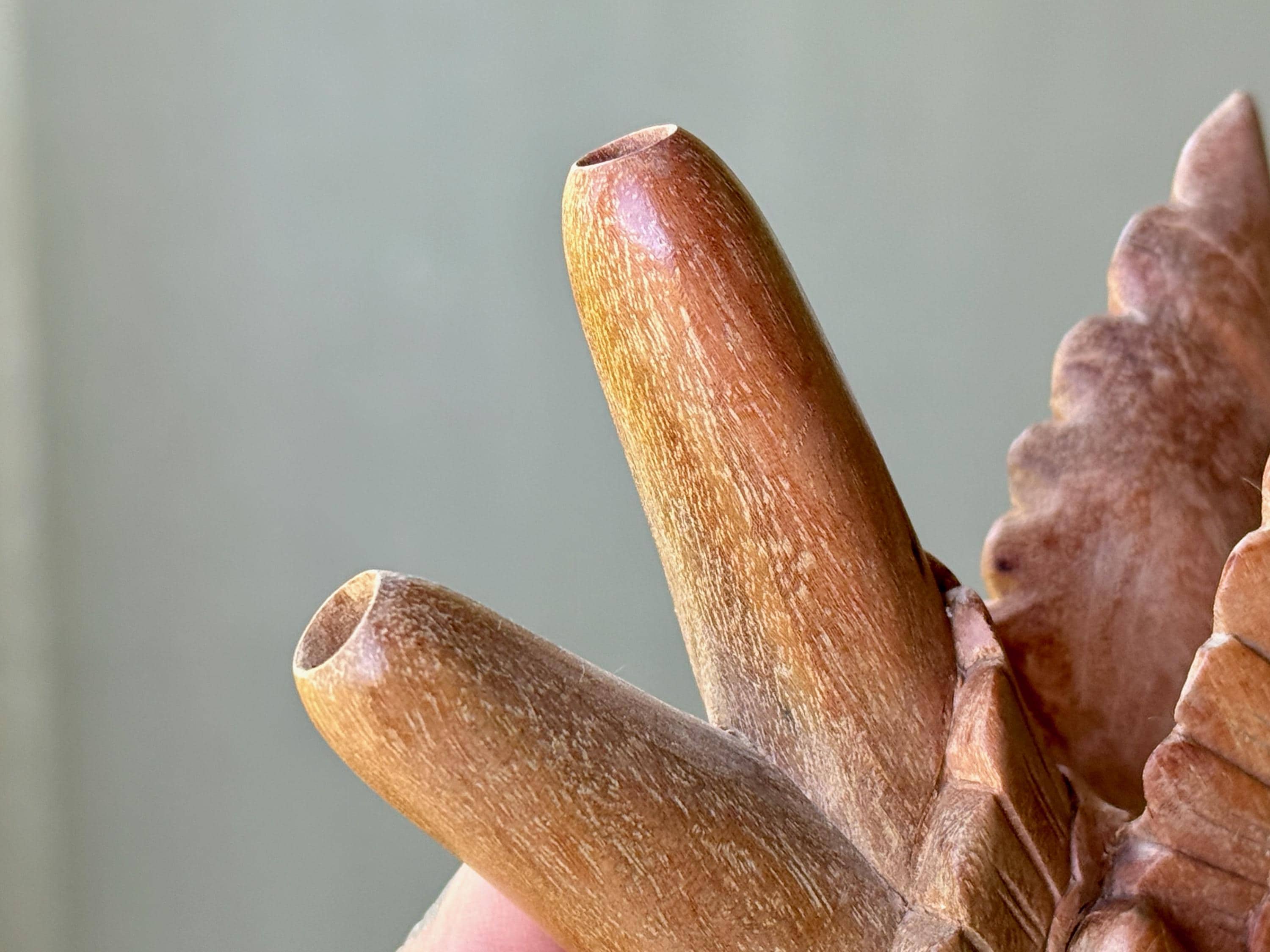 At HanaqPacha, we work with master woodcarvers all over the world who create outstanding custom works of art for us. These exquisite pipes are made with high-grade, indigenous wood and handcrafted with precision. Each design is extremely high-quality, destined to last a lifetime and made with loving intention for ceremonial use. The attention to detail is extraordinary and their functionality is excellent.