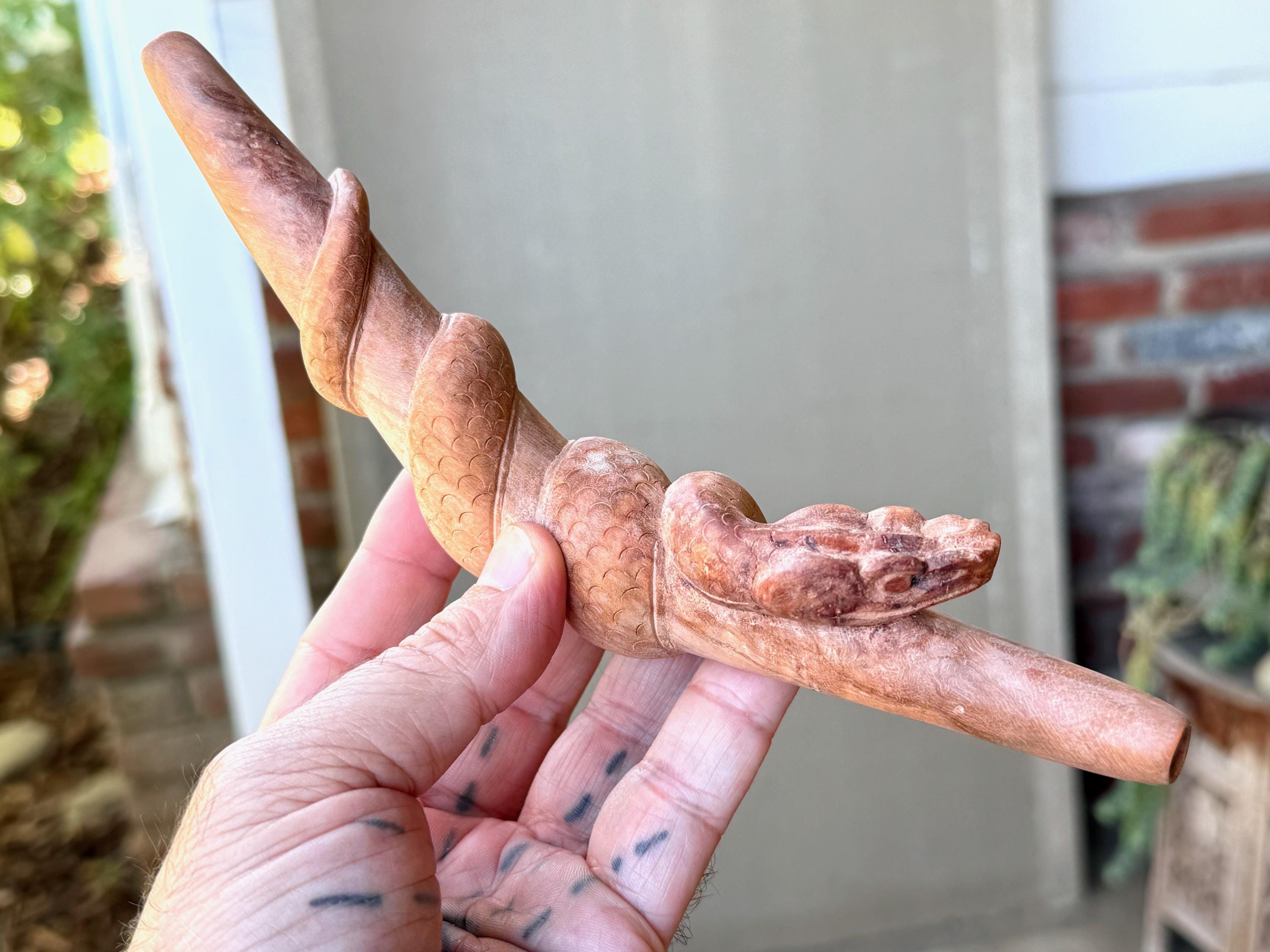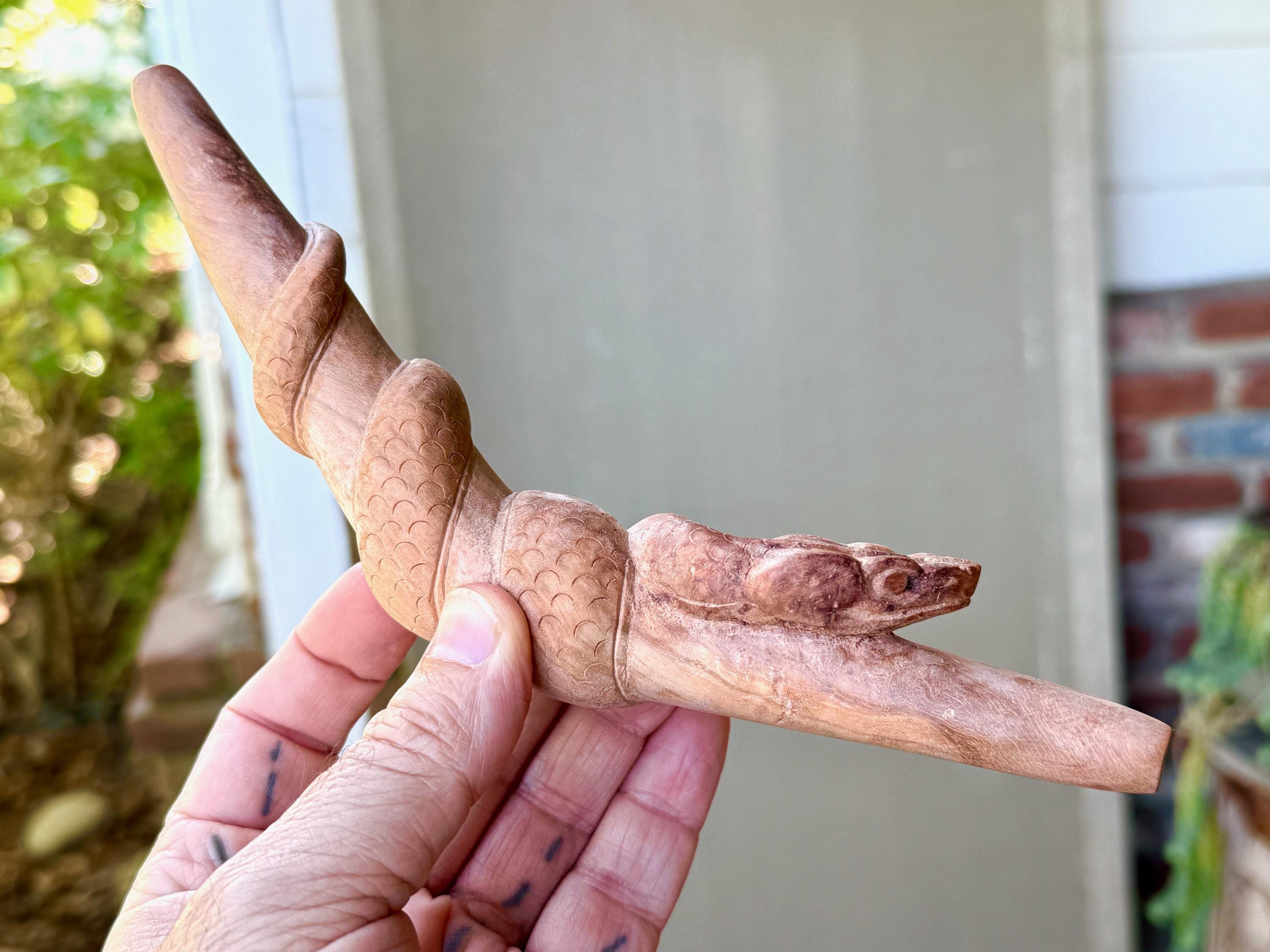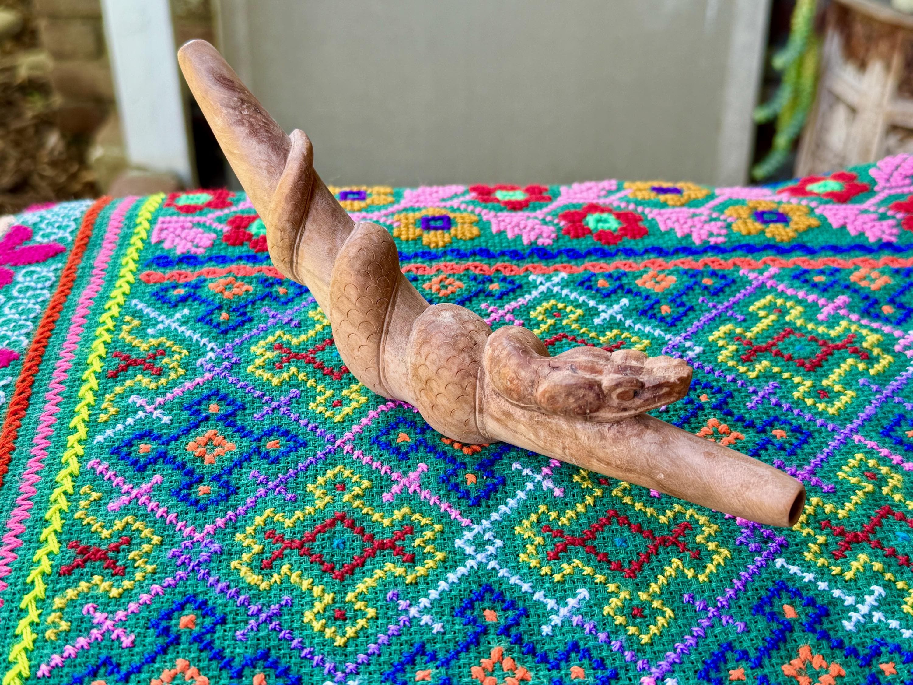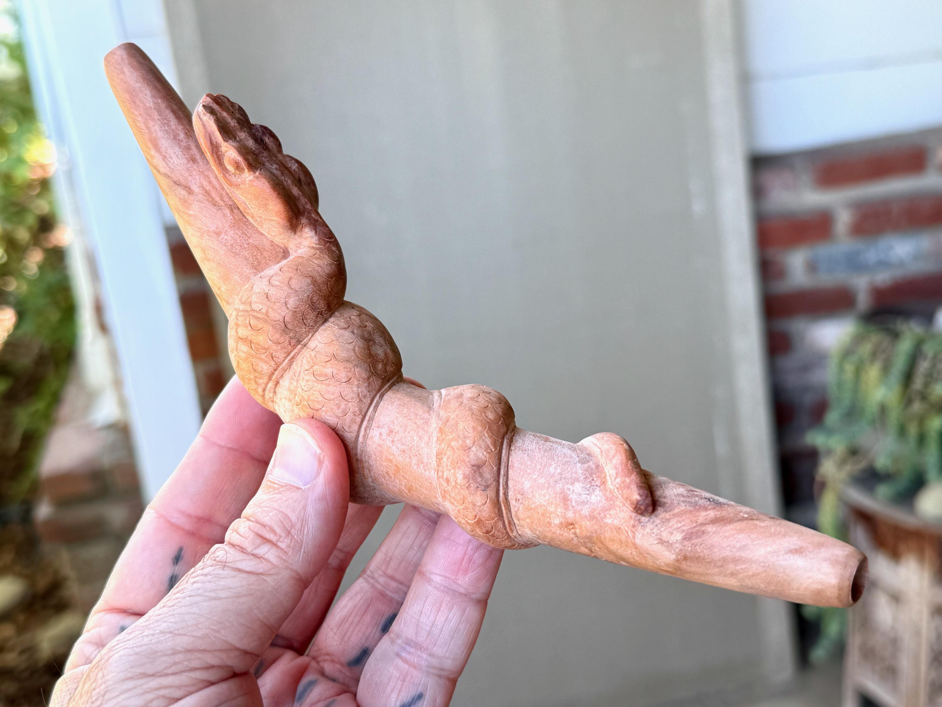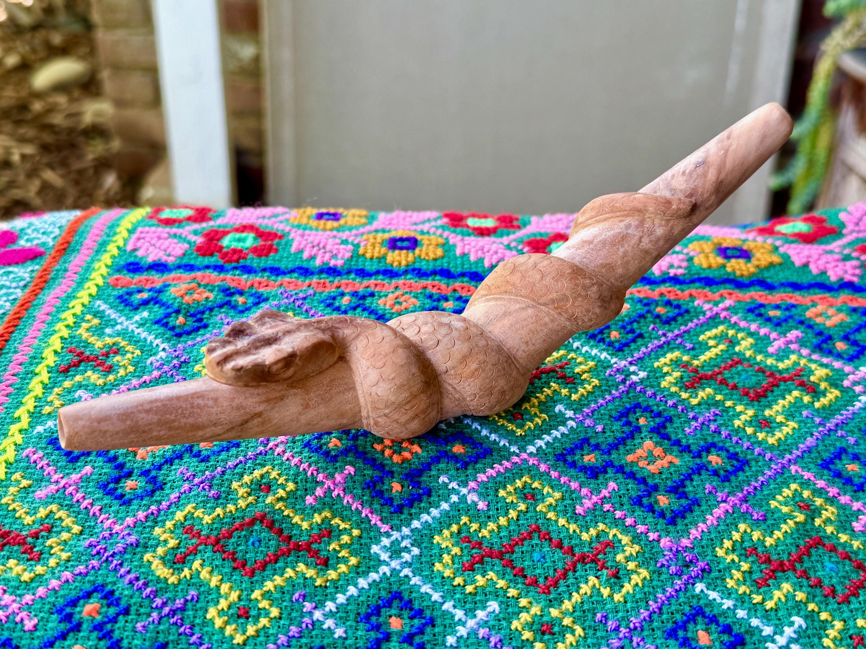 This exquisite Snake Tepi Pipe was hand carved from a single piece of natural, tropical hardwood. In Peruvian plant medicine, the snake represents the "Madre" vine.