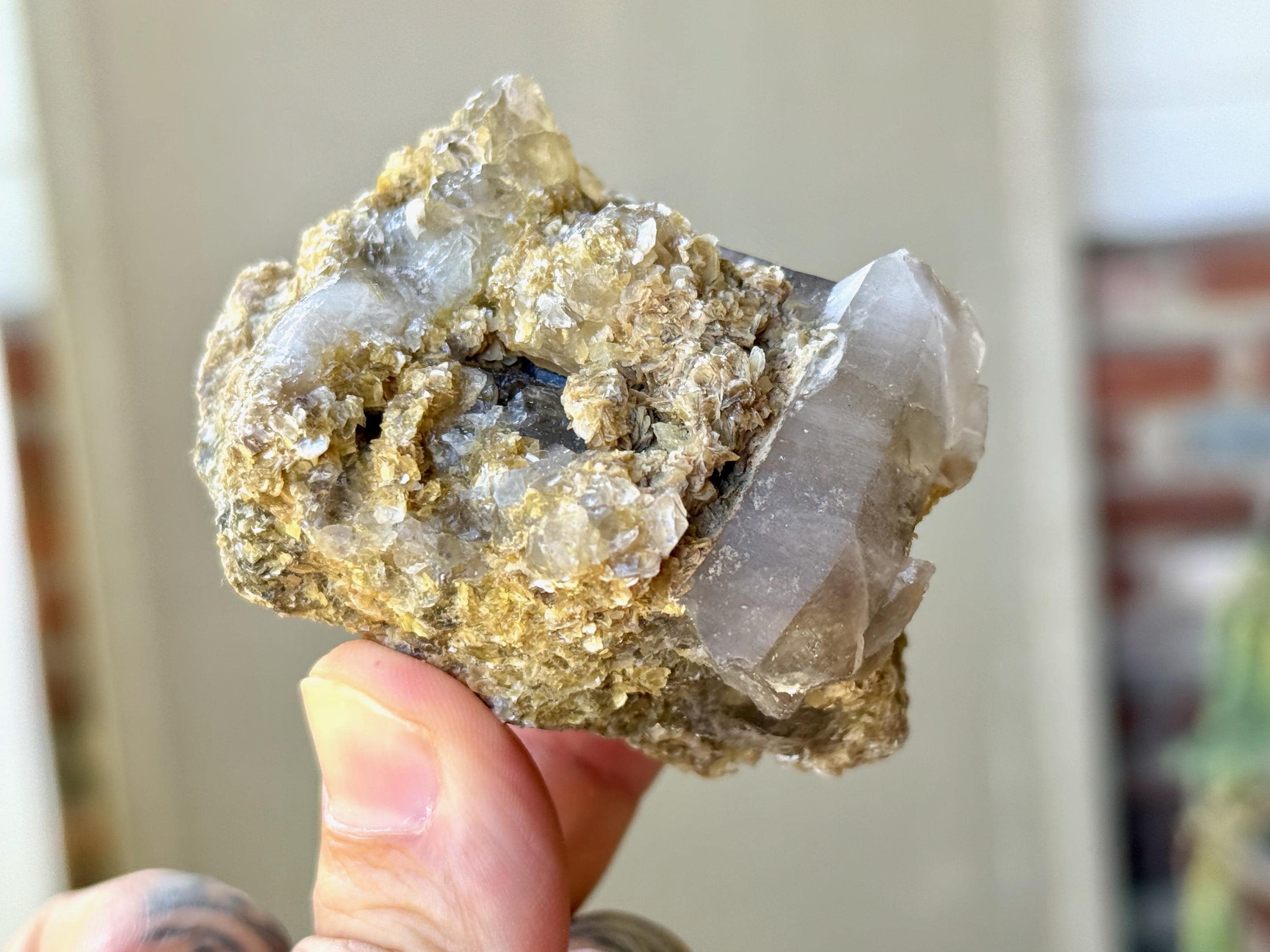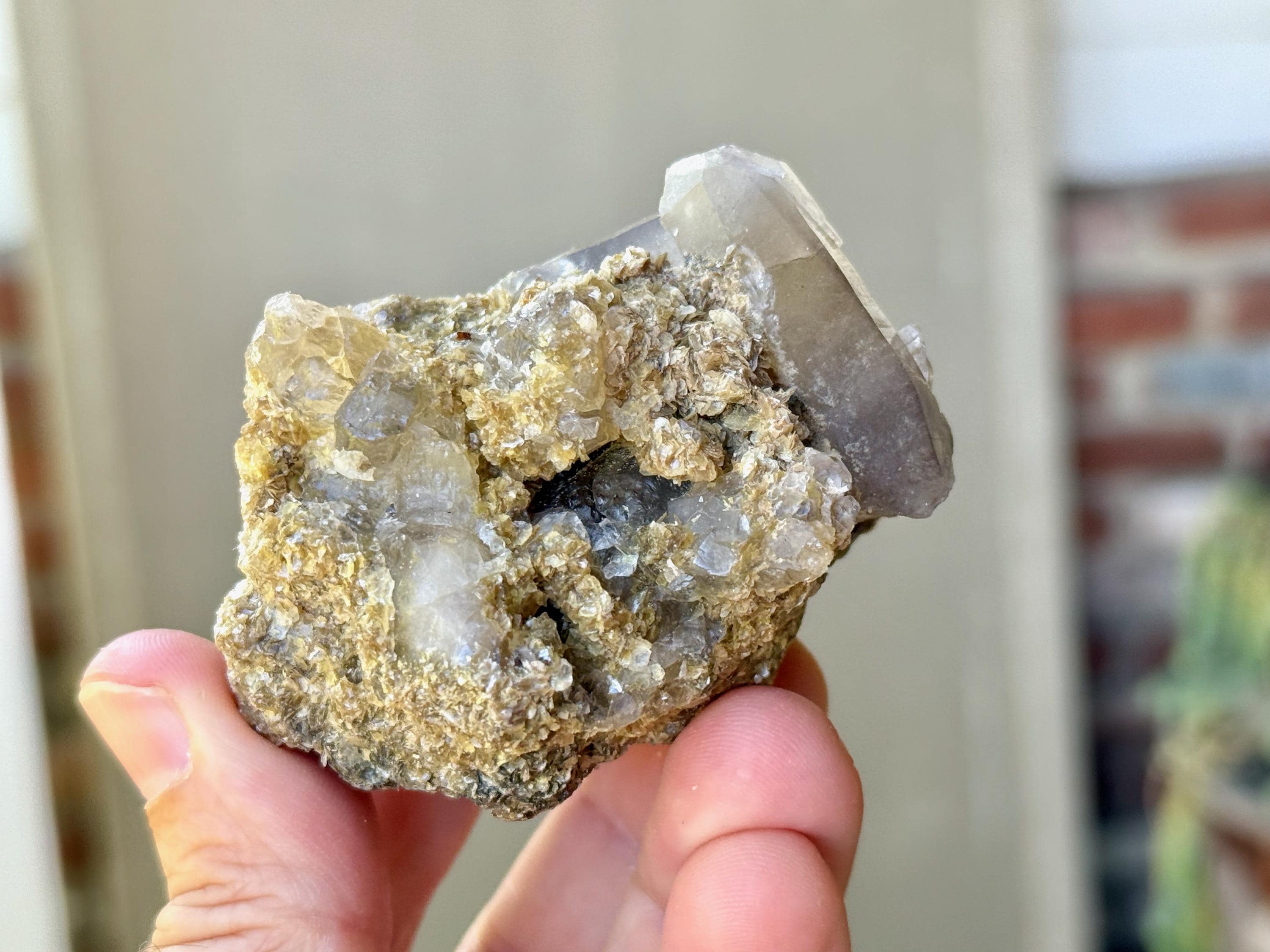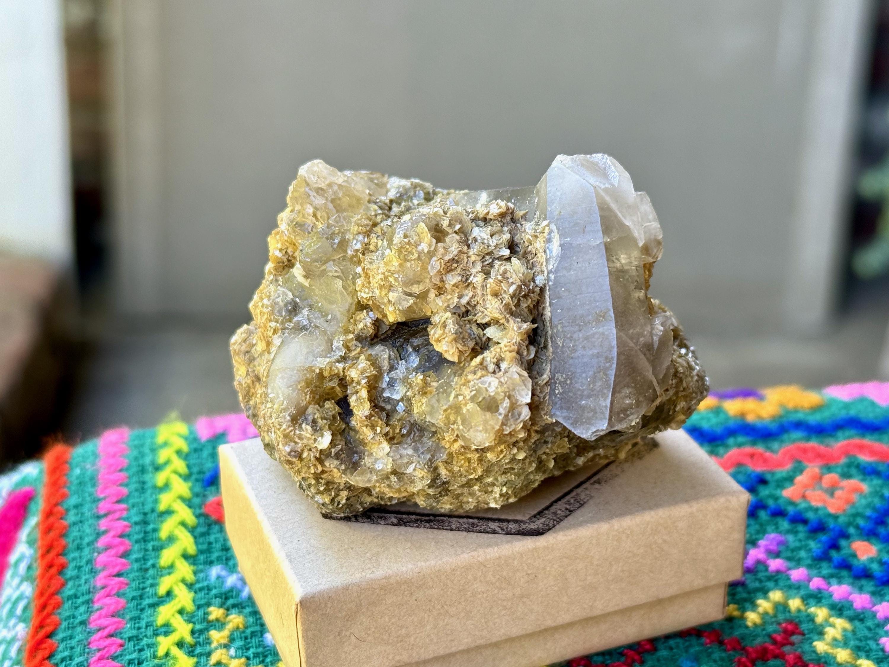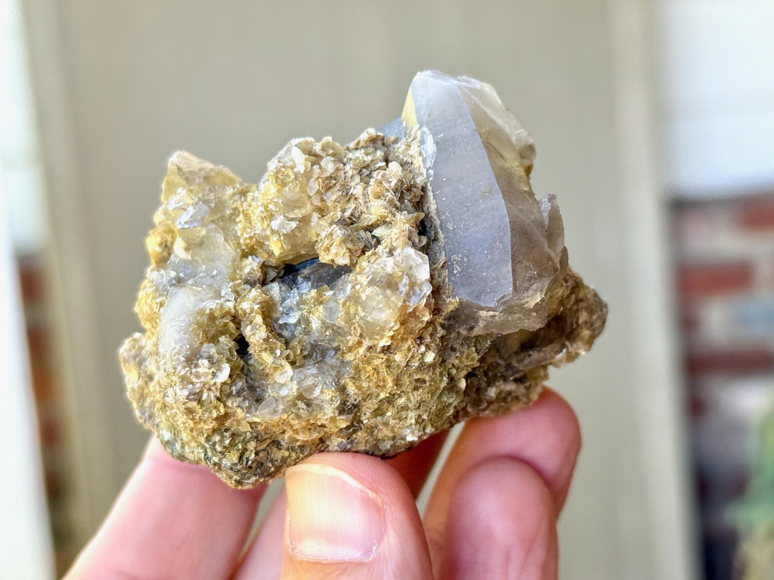 This Smoky Quartz with Golden Mica and Kaolinite comes from a recent find in Coronel Murta, Minas Gerais, Brazil.