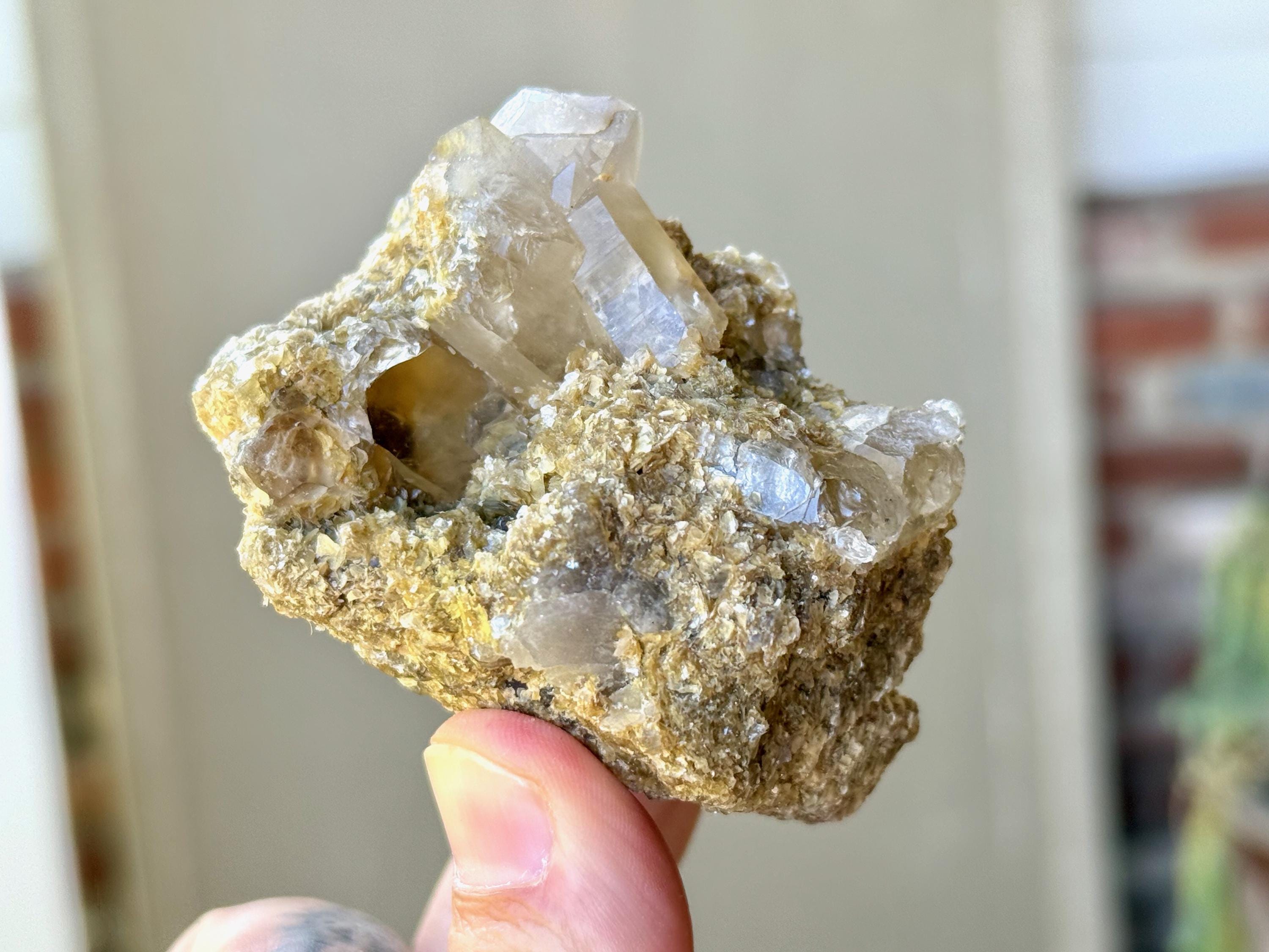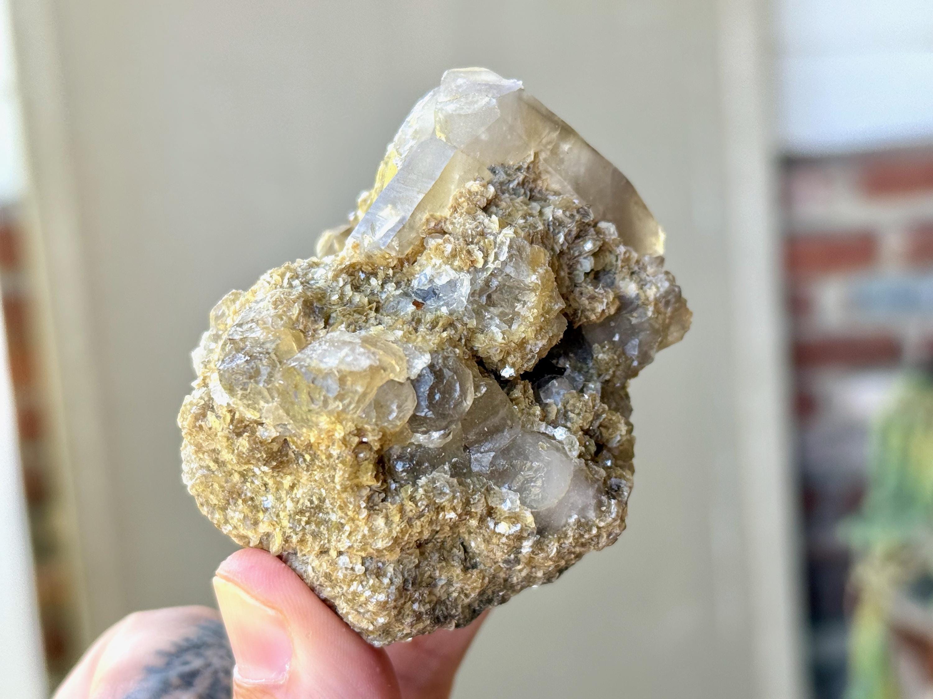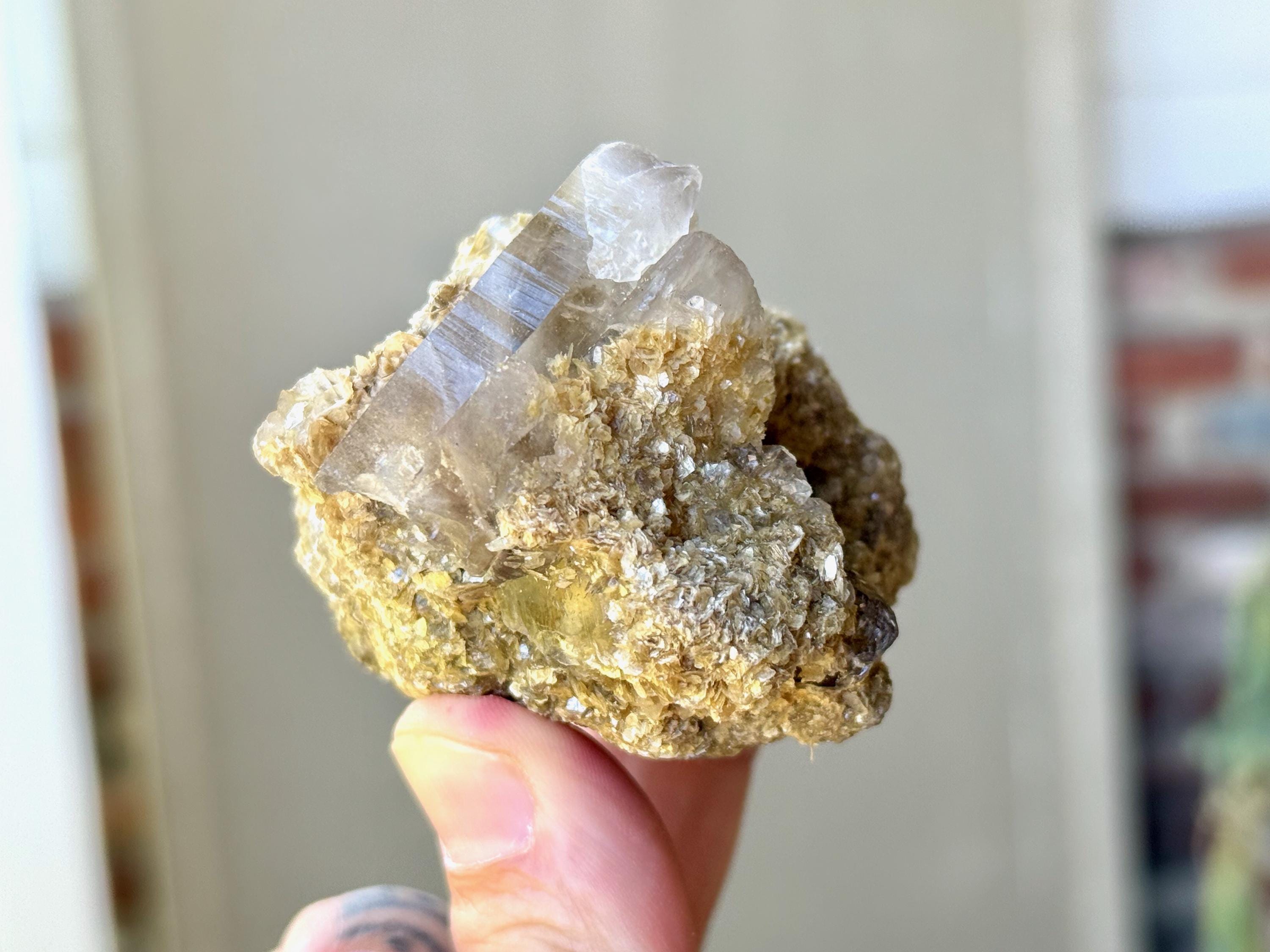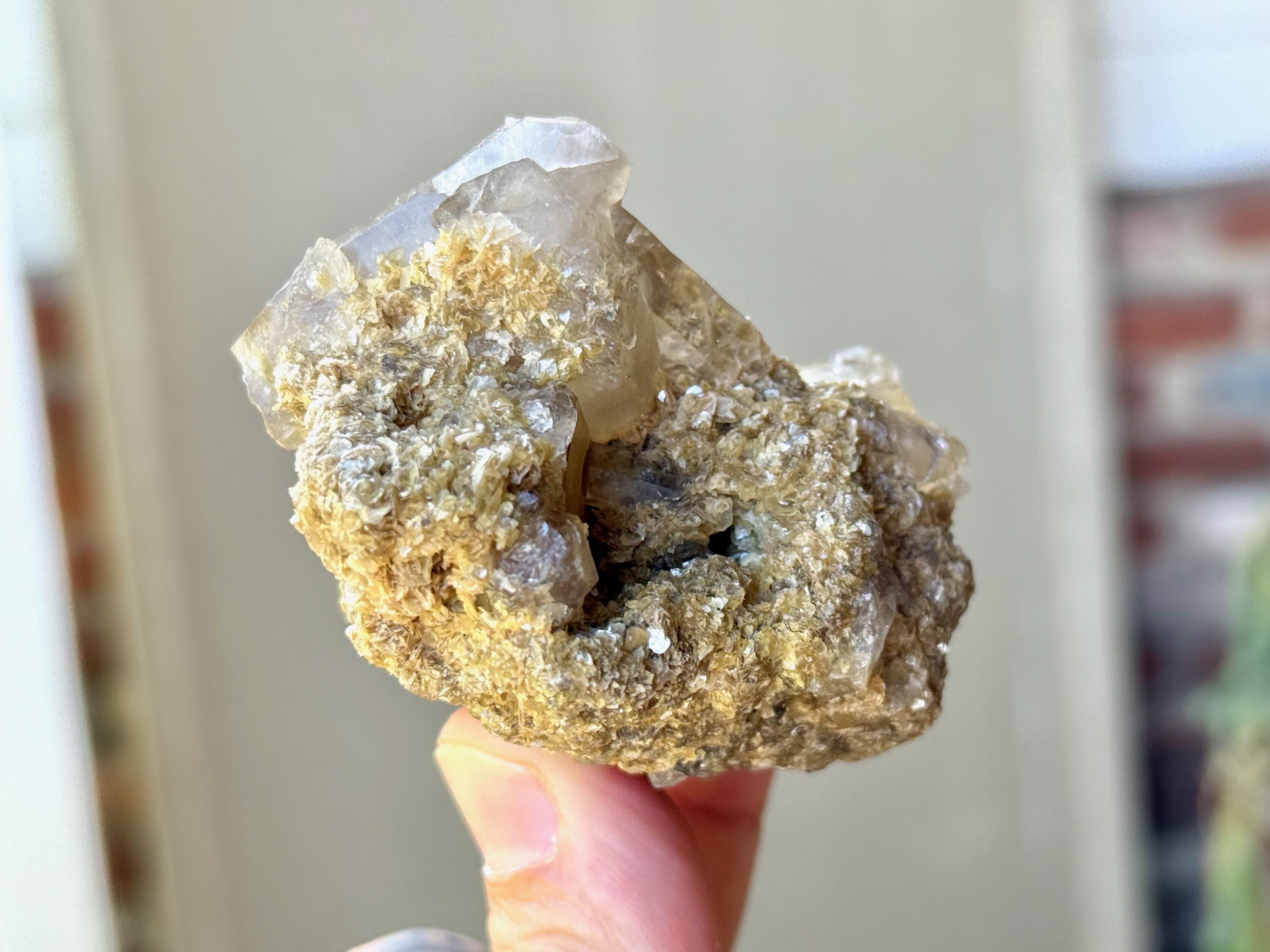 This Smoky Quartz with Golden Mica and Kaolinite comes from a recent find in Coronel Murta, Minas Gerais, Brazil.