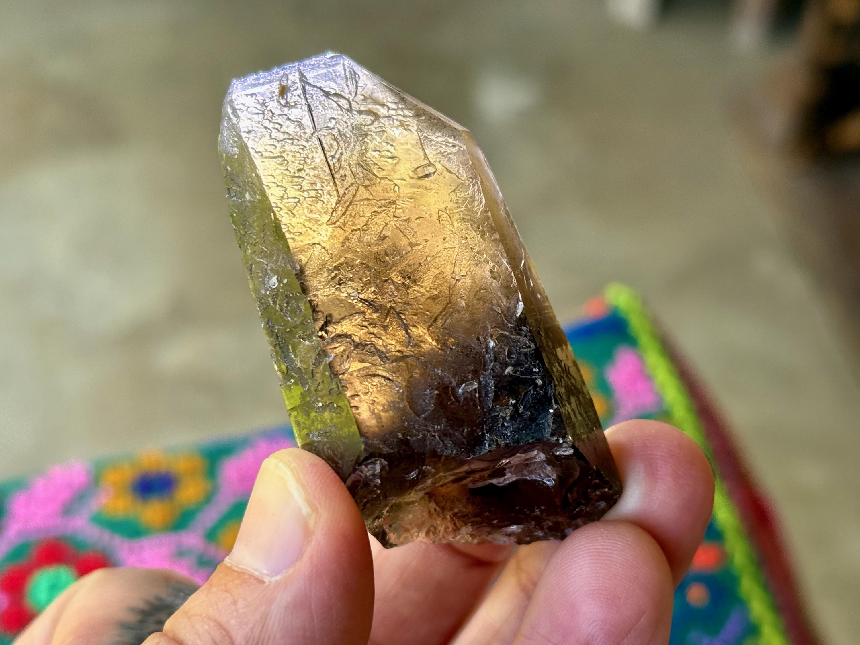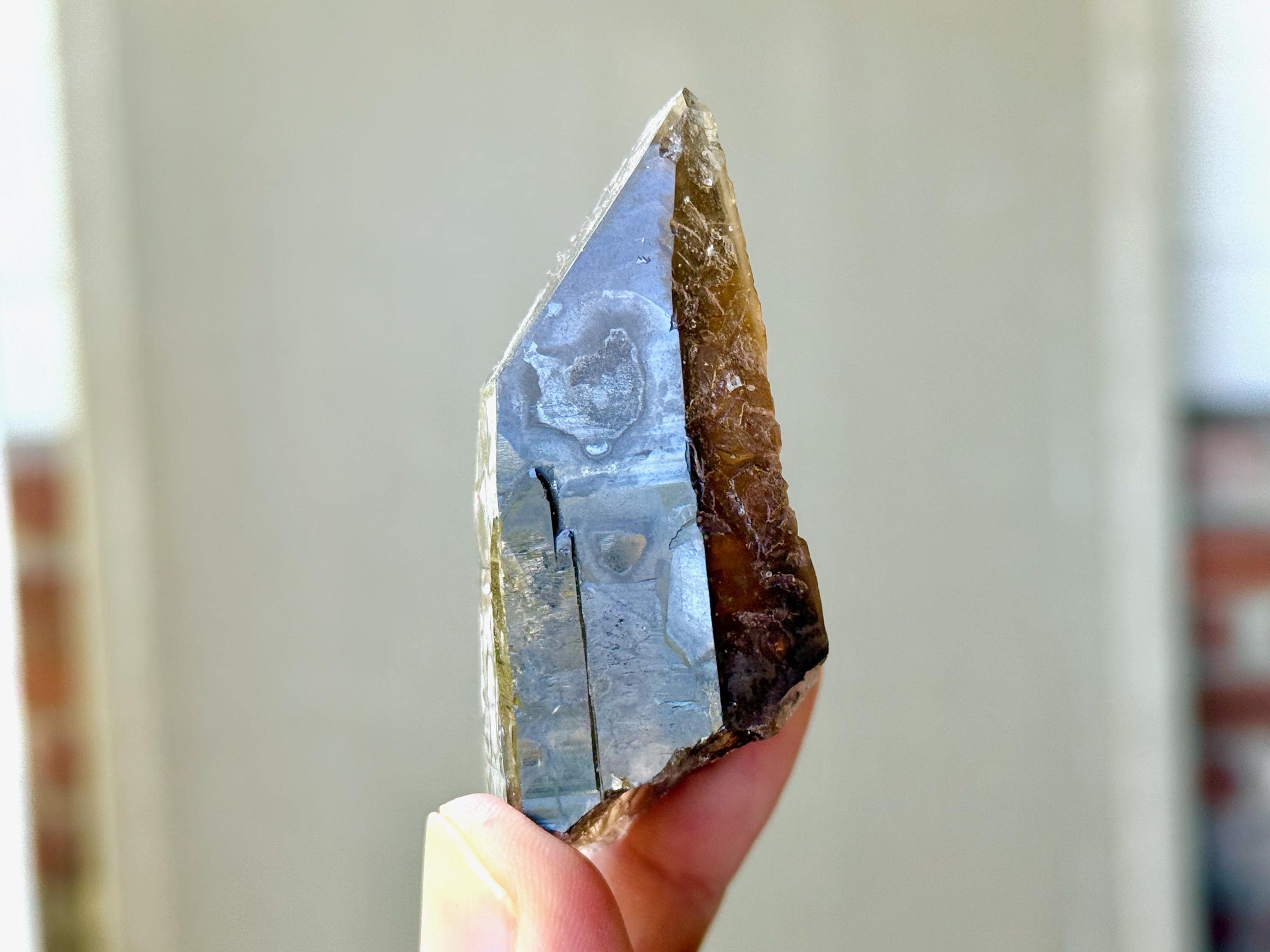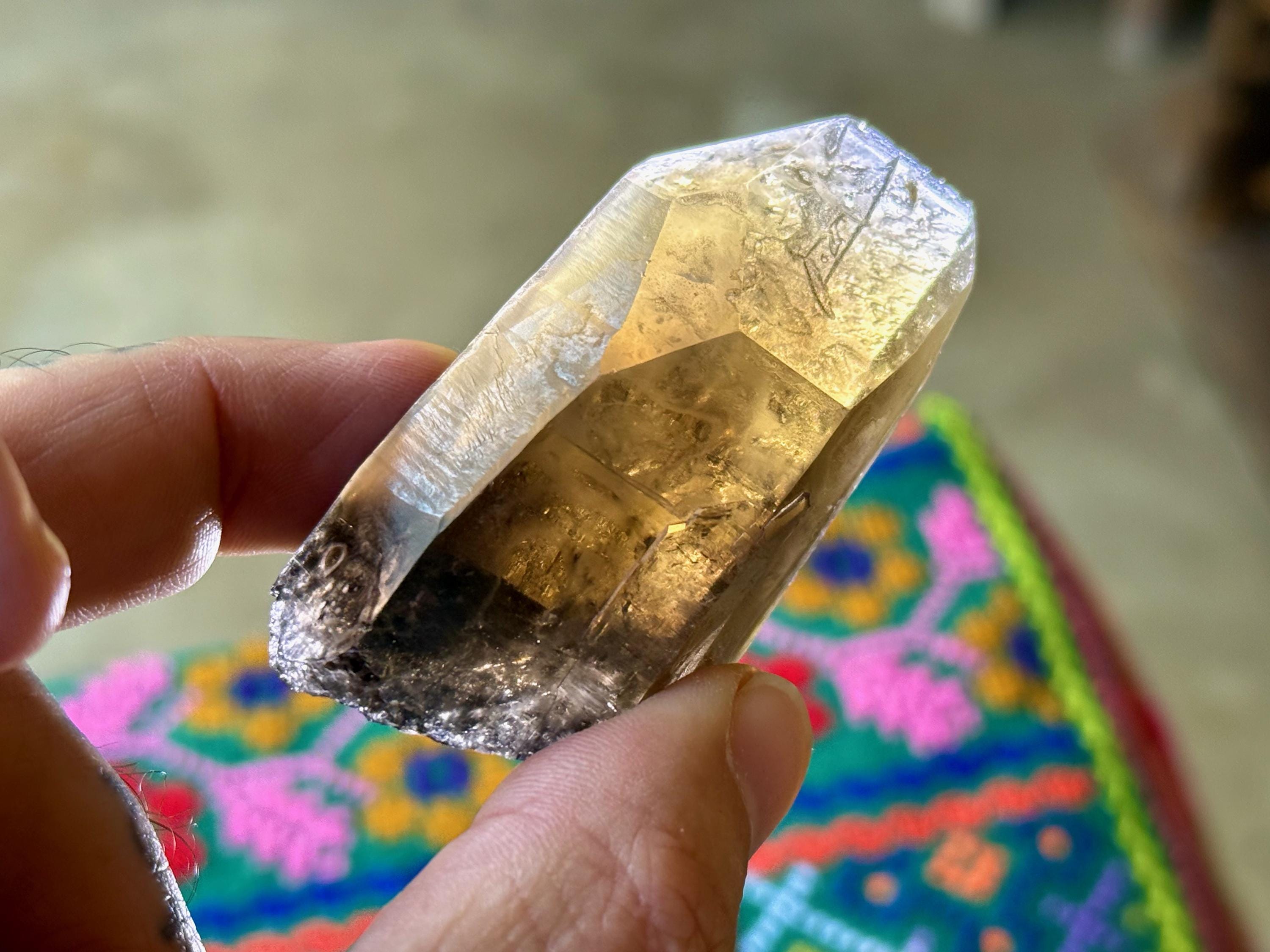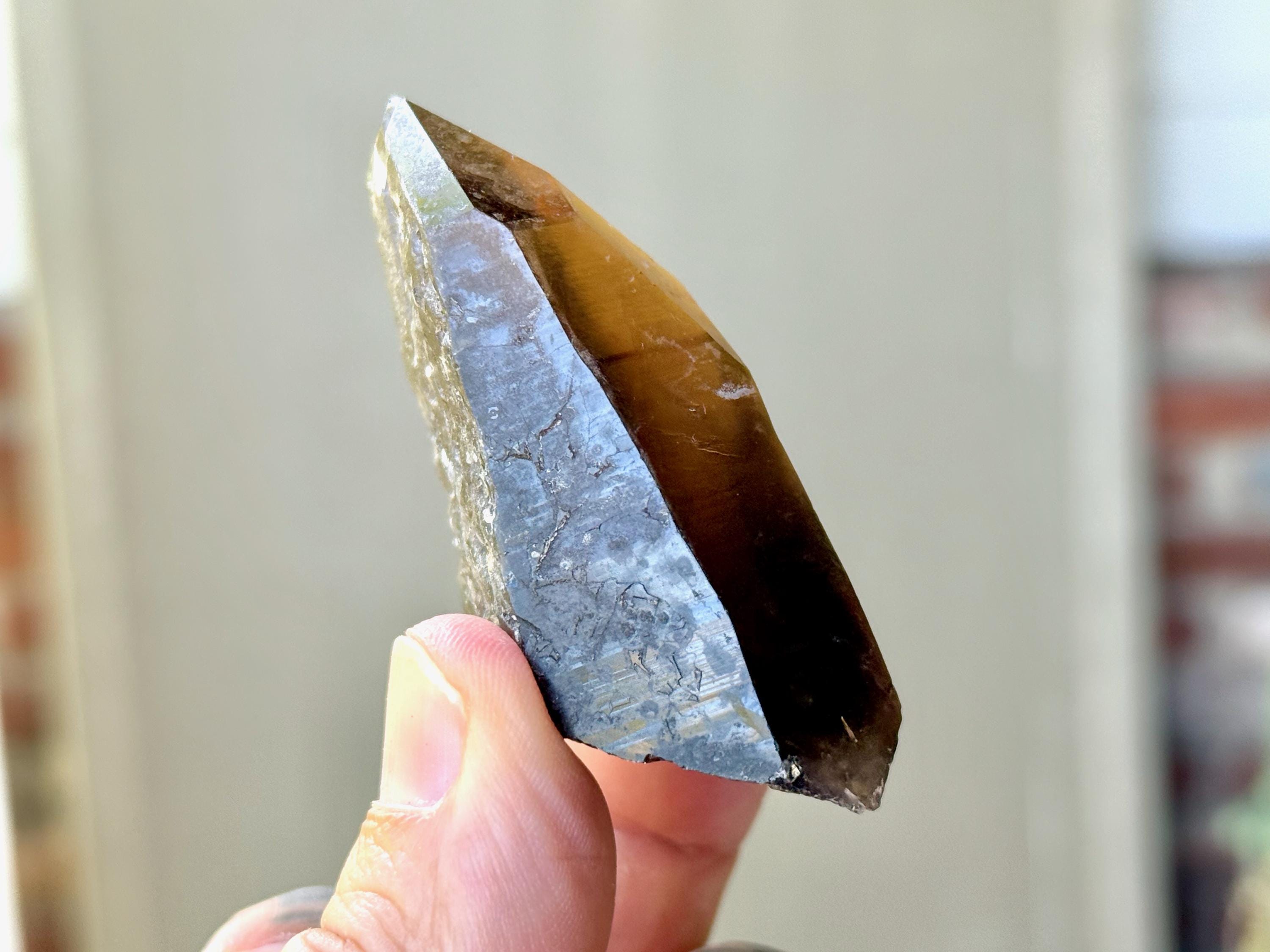 Pele's Dream crystals are smoky Citrine Lemurians with vibrant hues and exquisite luster, and that sometimes (but not always) feature Lemurian striations, as well as unique Starbrary-type markings and other etchings or imprints. Metaphysically, they seem to share energetic similarities with the Shadow Healer Lemurians from about 10-15 years ago, which were a small production of similarly smoky Citrine Lemurians from Minas Gerais, Brazil (see more about their energetic properties at the bottom of this listing).