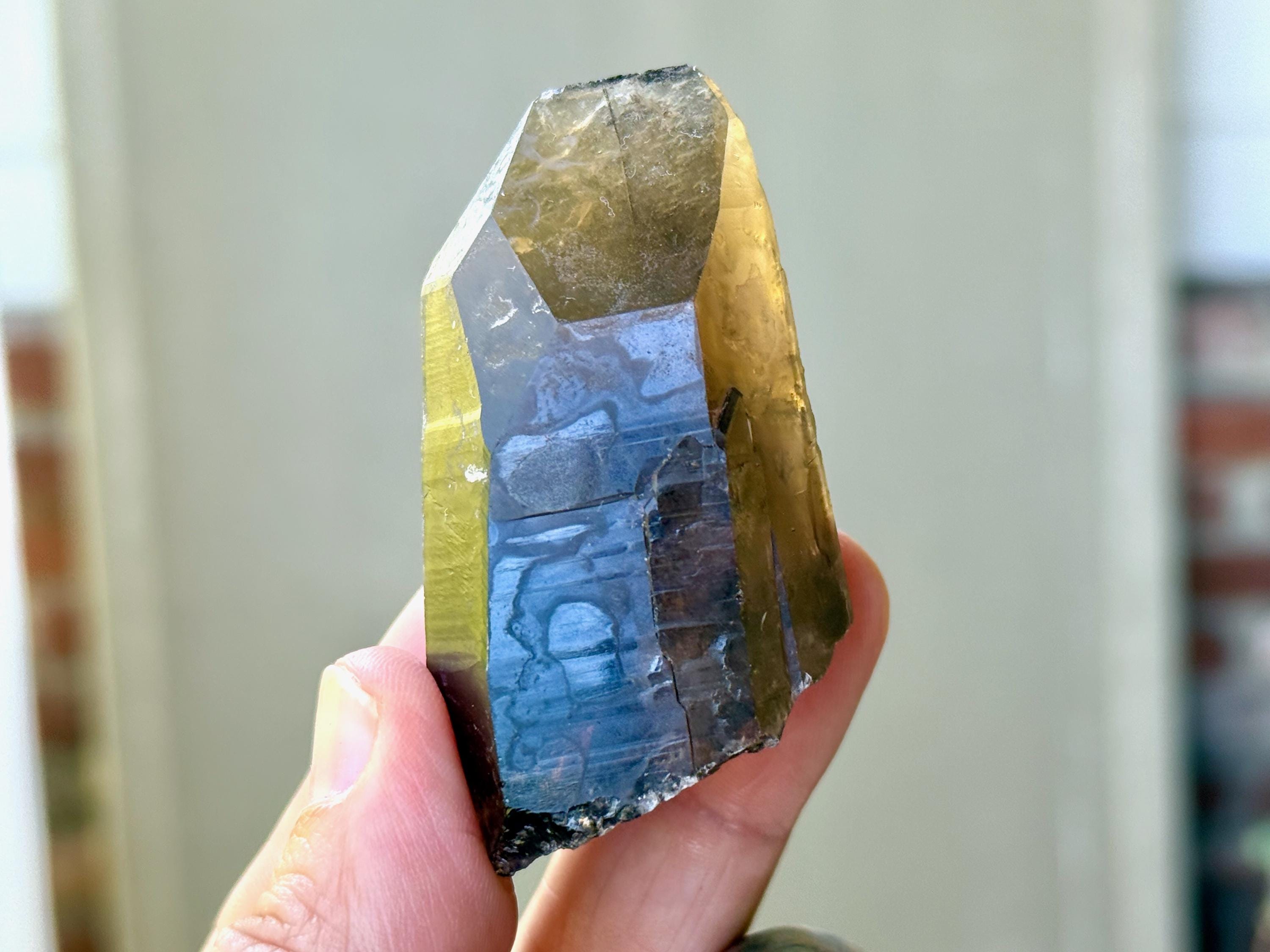 This stunning Pele’s Dream Lemurian Citrine comes from a recent find in Cristalina, Goiás, Brazil.