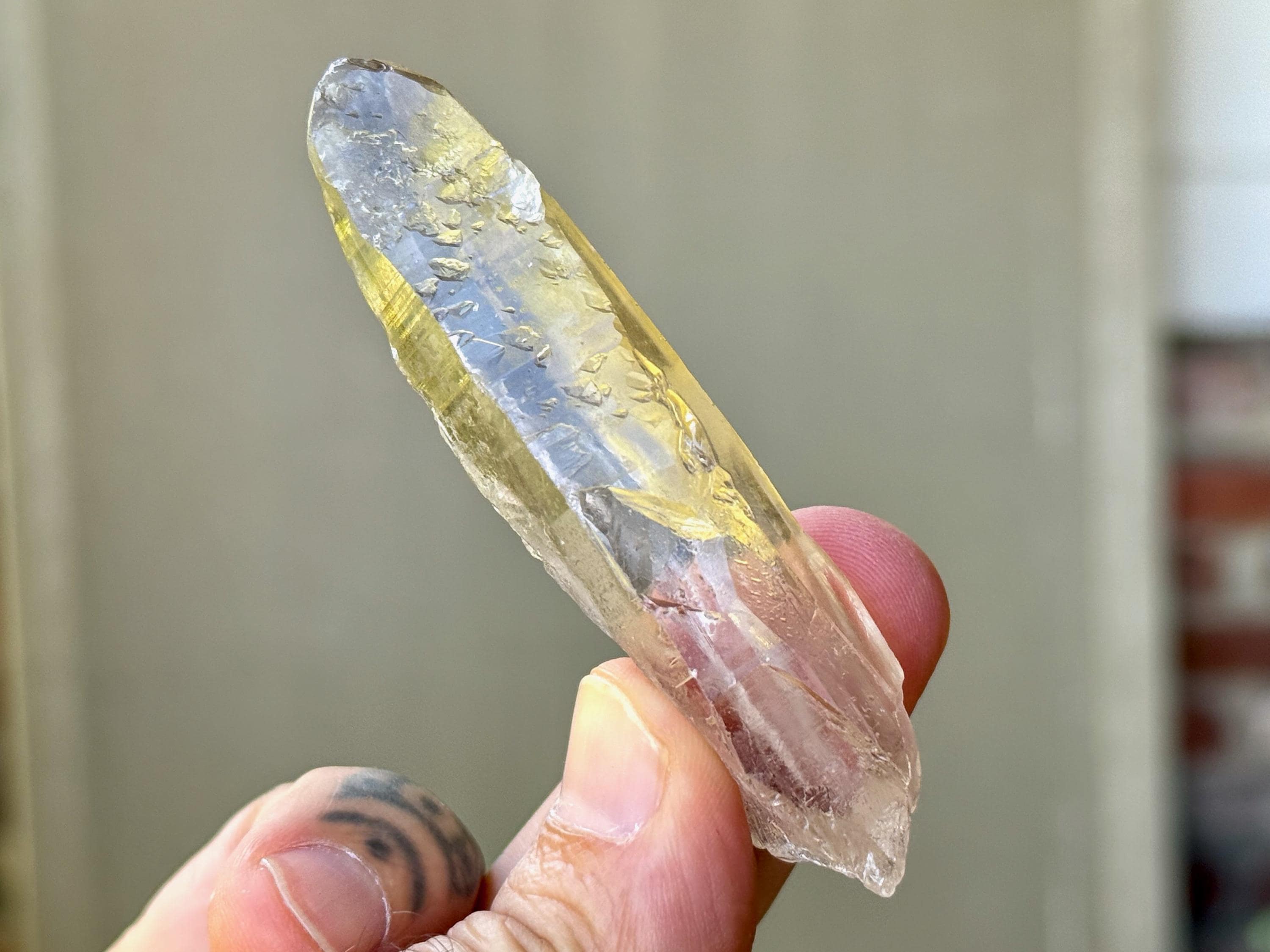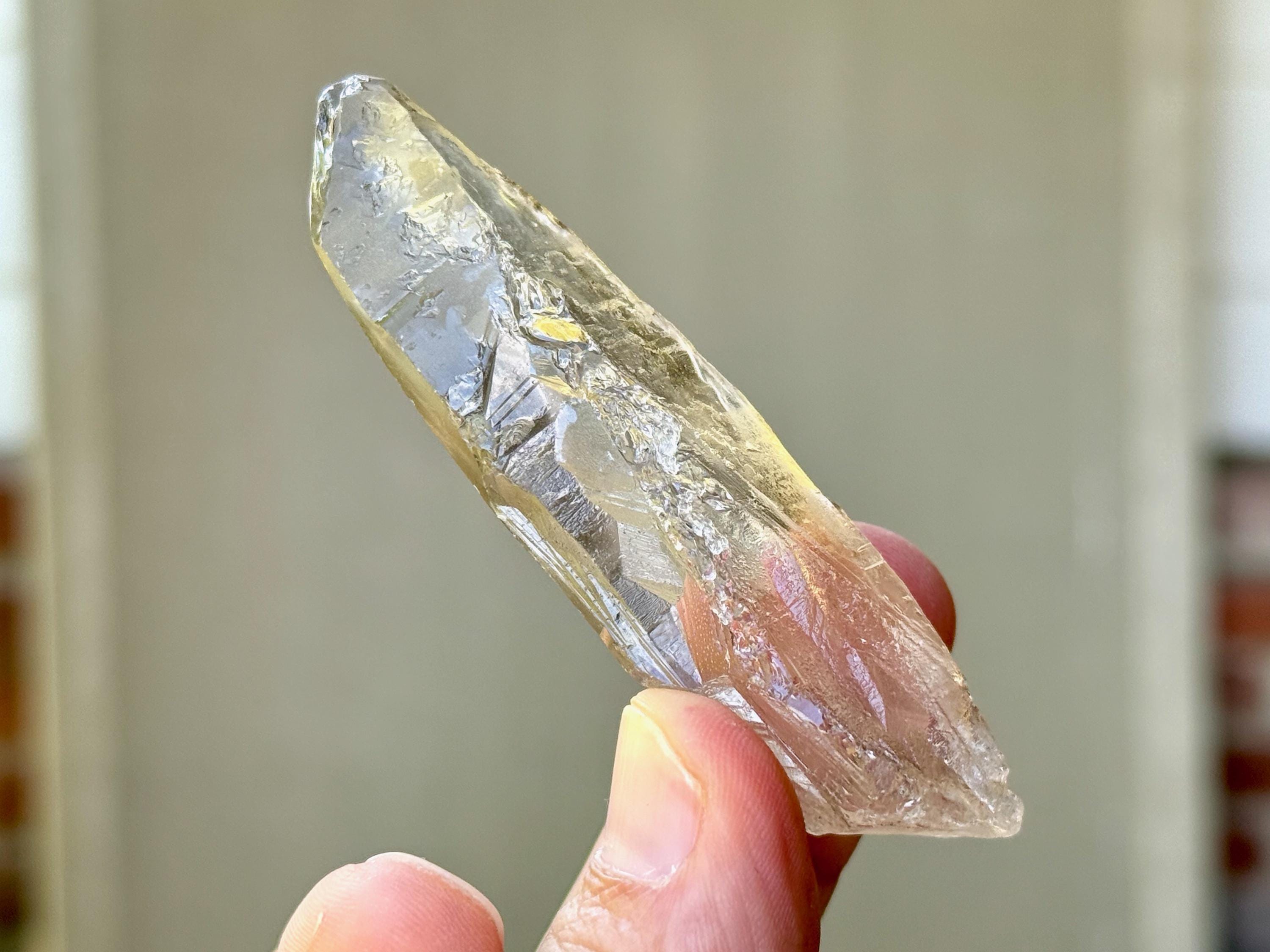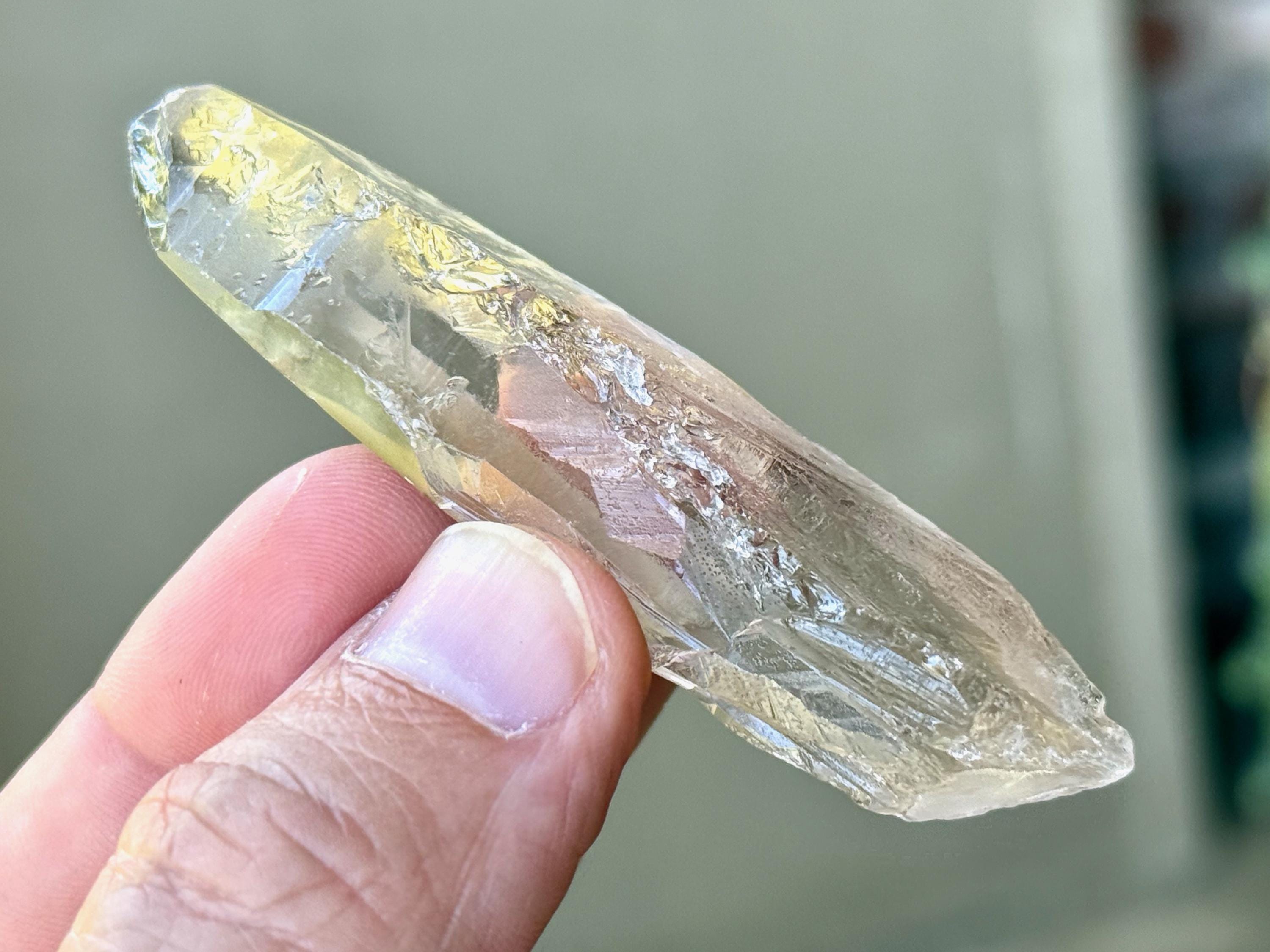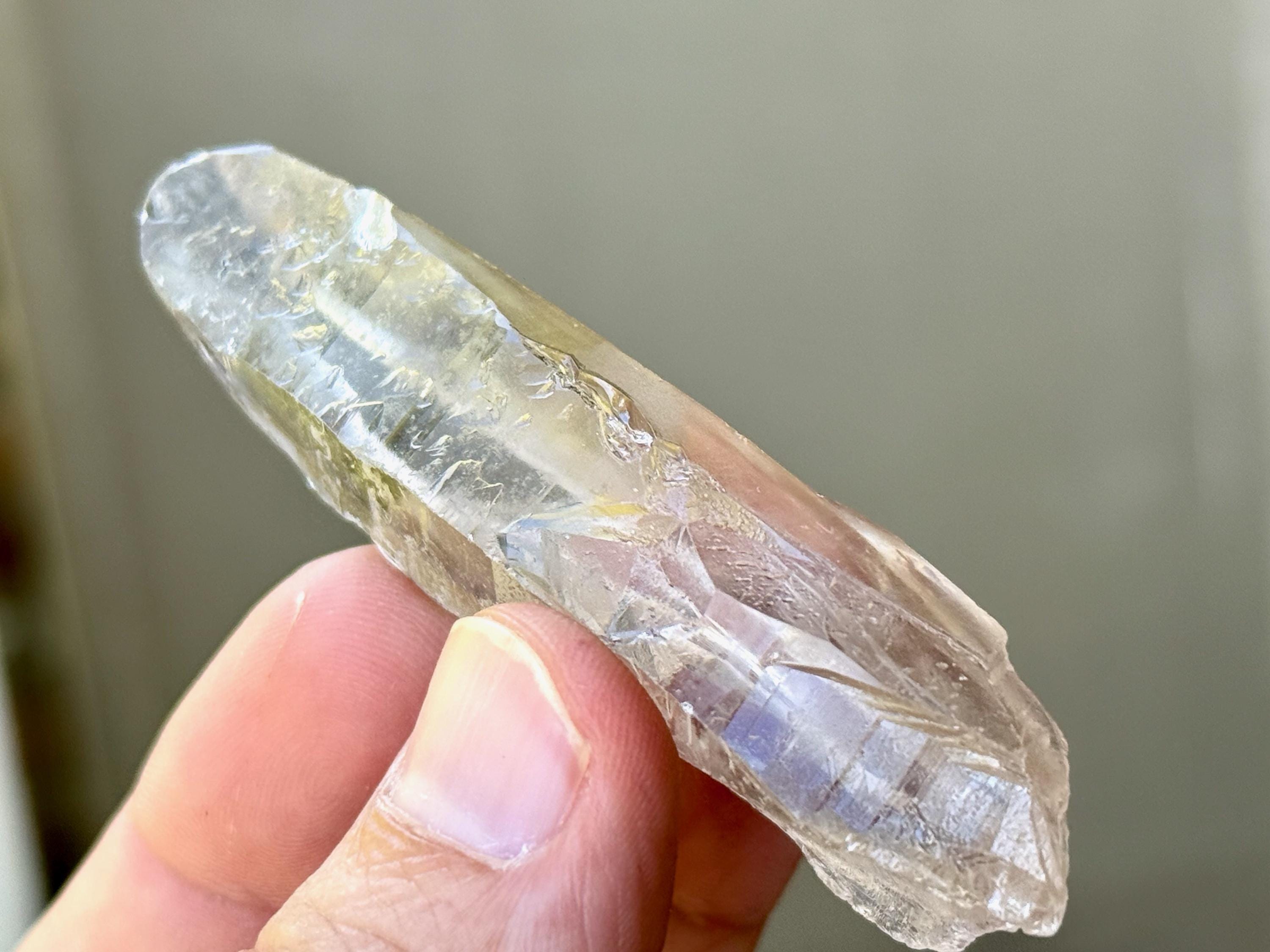 Magnificent clarity and superb luster to this exquisite Lightning Strike Lemurian Citrine with a mild golden hue. This crystal displays a classic formation with well-defined striations on its sides, and even some Starbrary type glyphs as well.