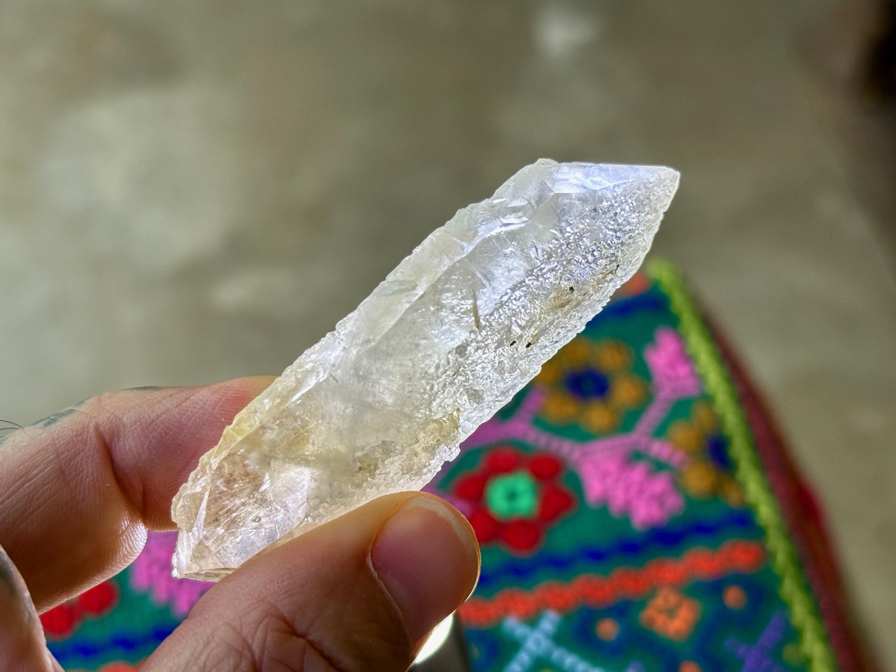 Lemurian Quartz resonates with all chakras, but primarily the Crown Chakra. It has one of the highest vibrations of any crystal and is a beautiful companion for meditation and to realign energies in the body. It can assist in clearing blockages in one's energy field and/or chakras, dispelling heavy energies from the body. If there is stagnant energy in the body, it can help to increase Prana (life force) energy to get things moving properly again. Meditating with Lemurian Crystals can allow us to connect with higher-dimensional spirit guides and connect to Divine realms, as well as to decode the information they contain within.