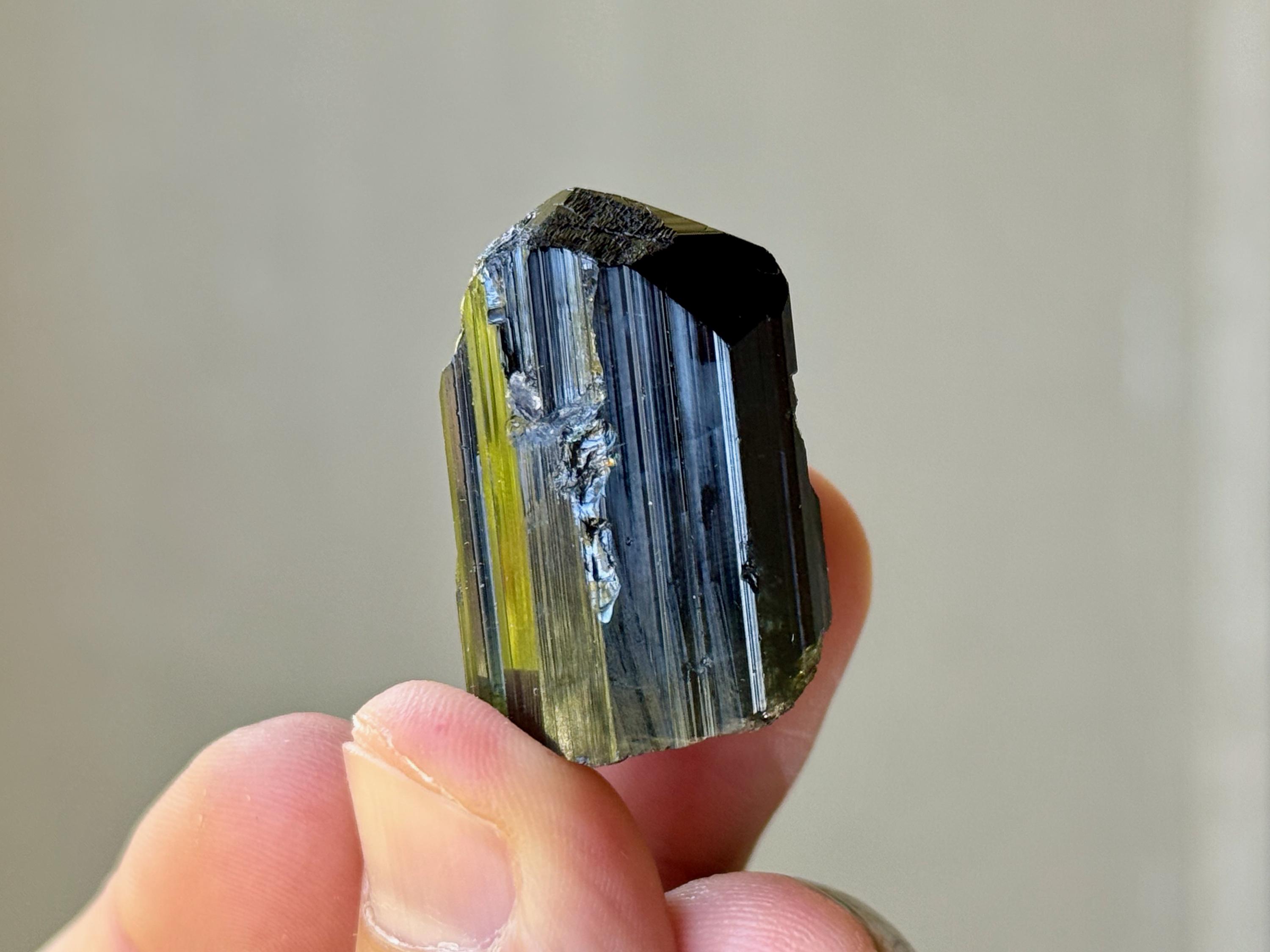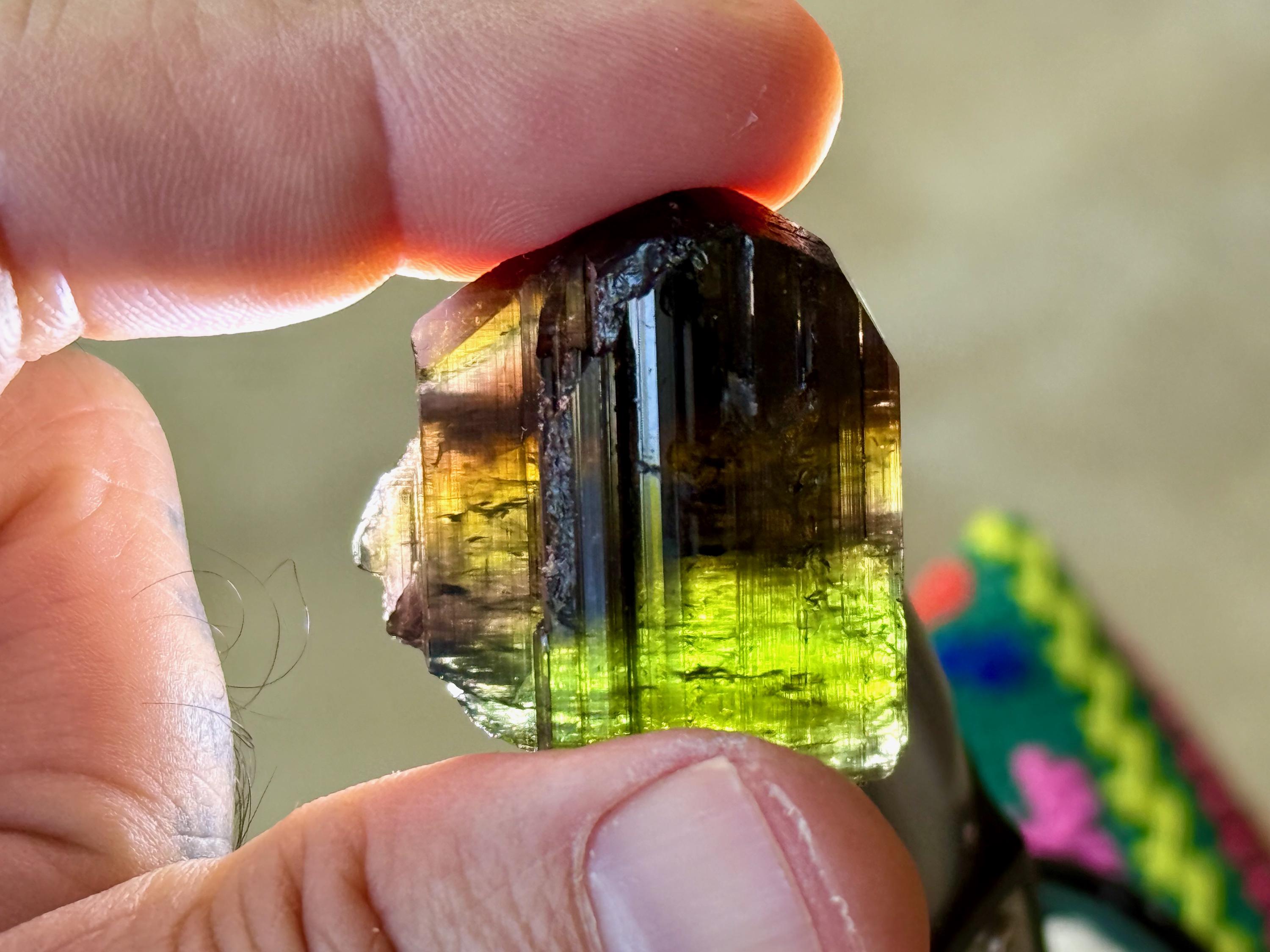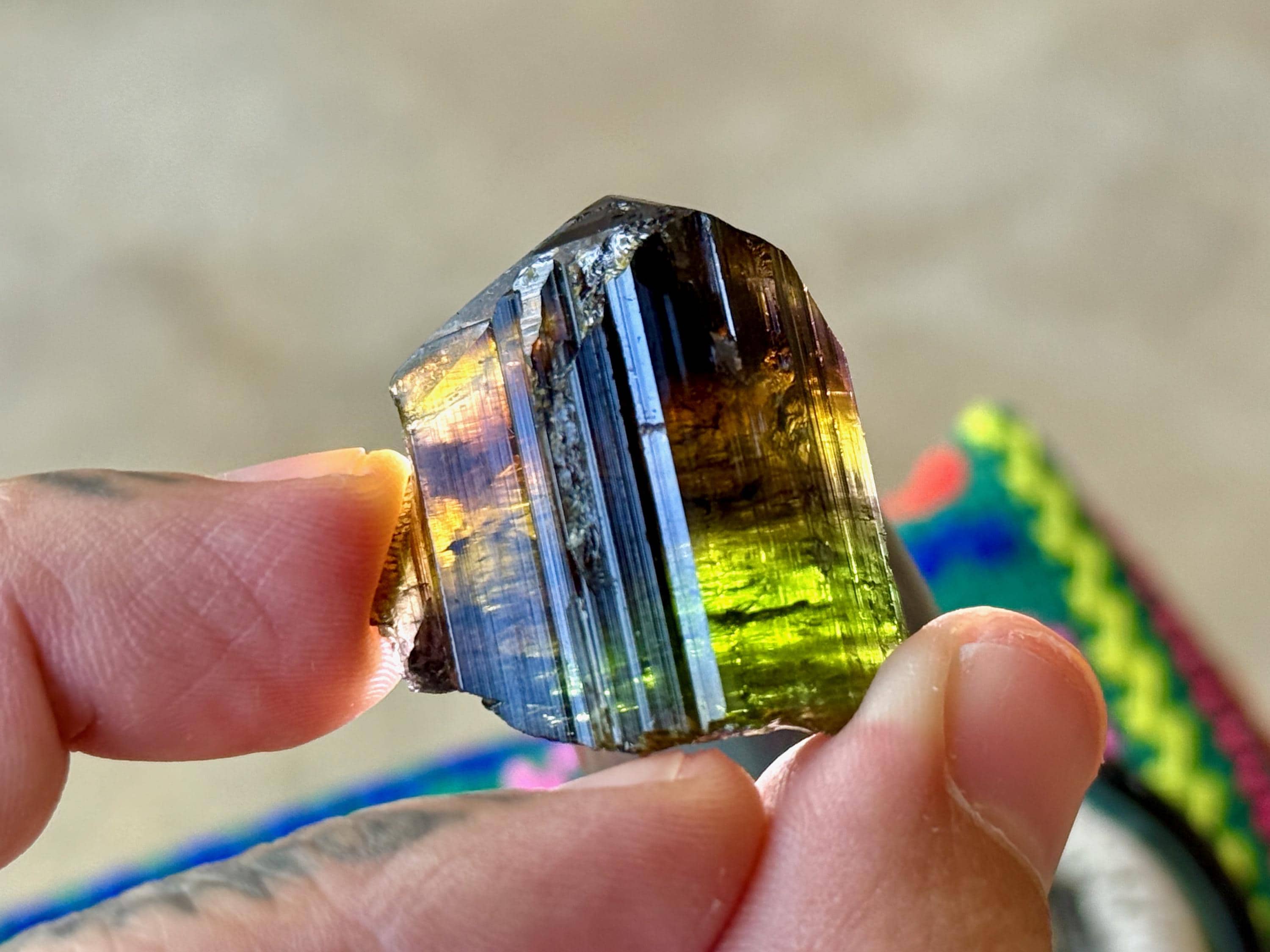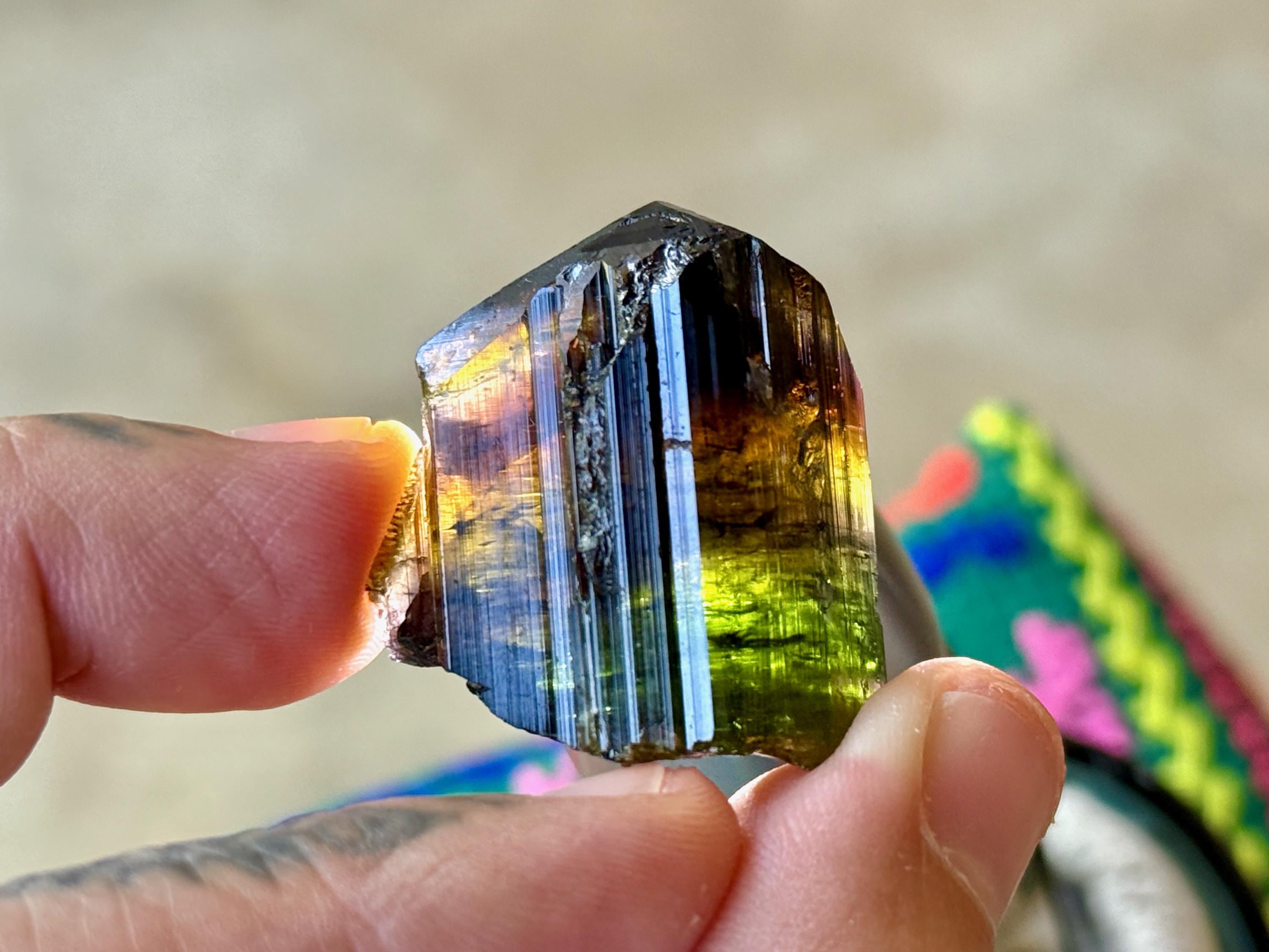 This exceptional Multicolor Tourmaline comes from a new (2025) find in Coronel Murta, Minas Gerais, Brazil. This crystal is all-natural and possesses banded colors of Orange, Yellow, Blue, Green & Pink.