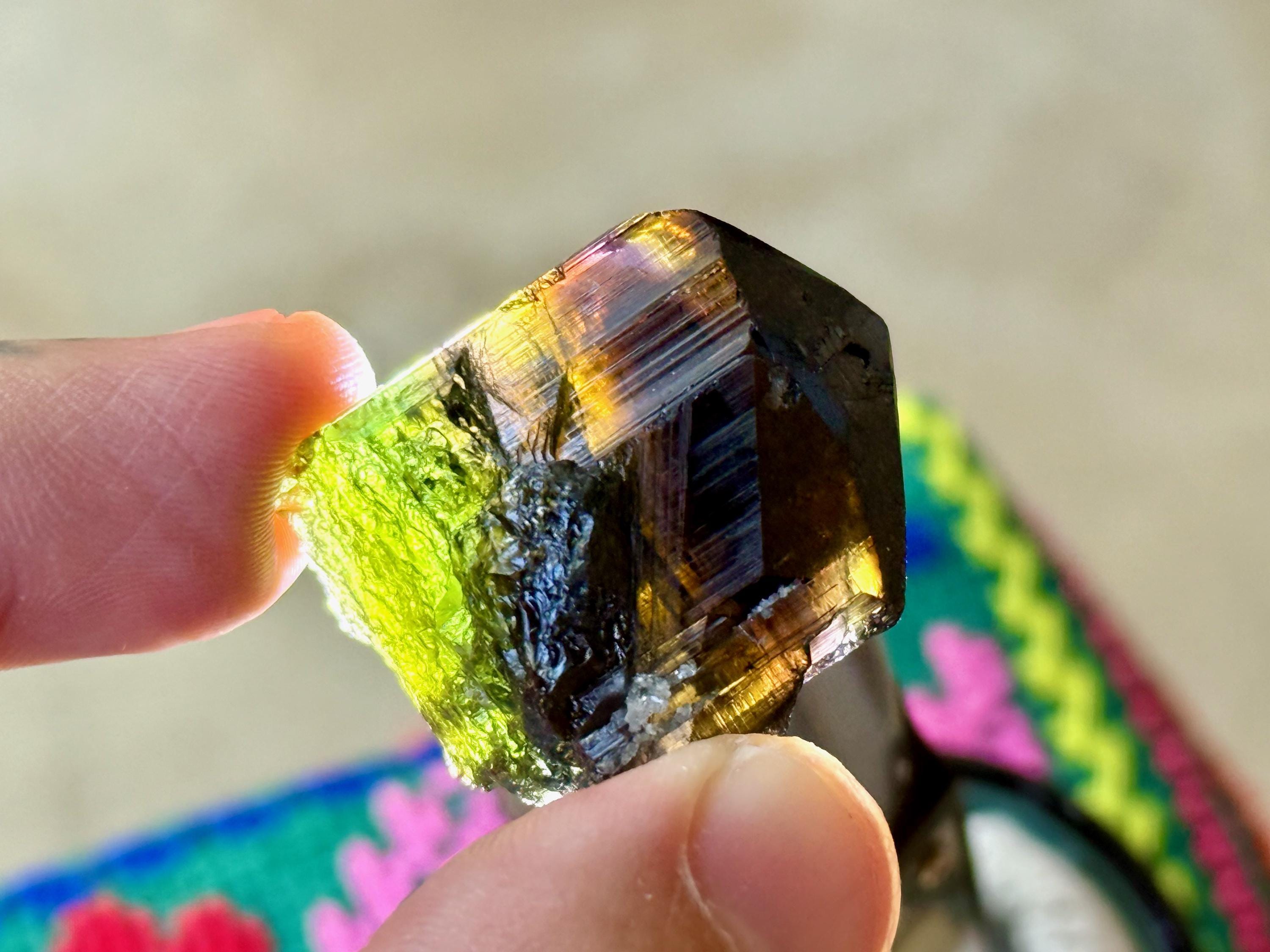 A veritable water-color burst of hues within this lustrous Tourmaline with at least 3-4 distinctive colors!