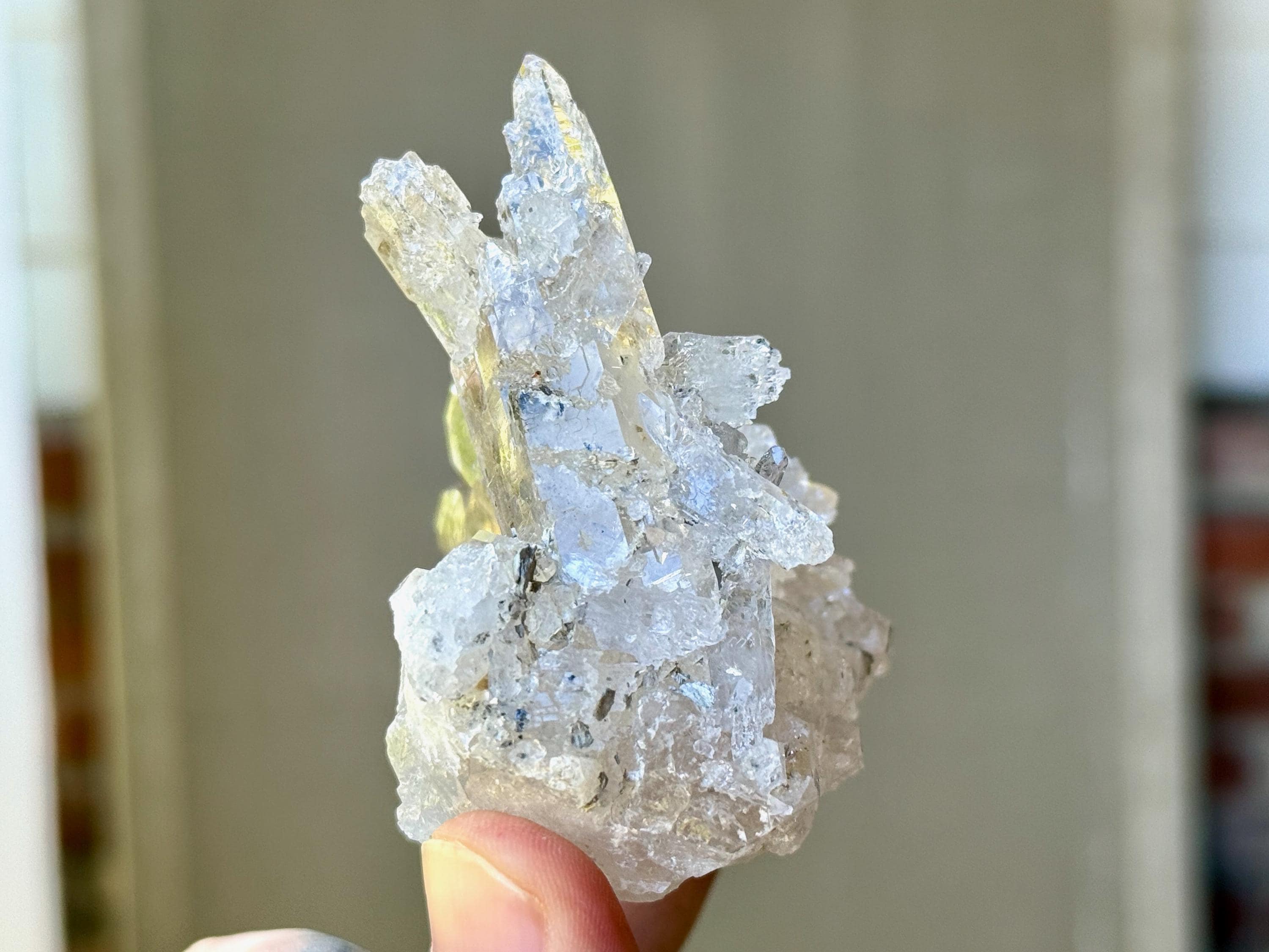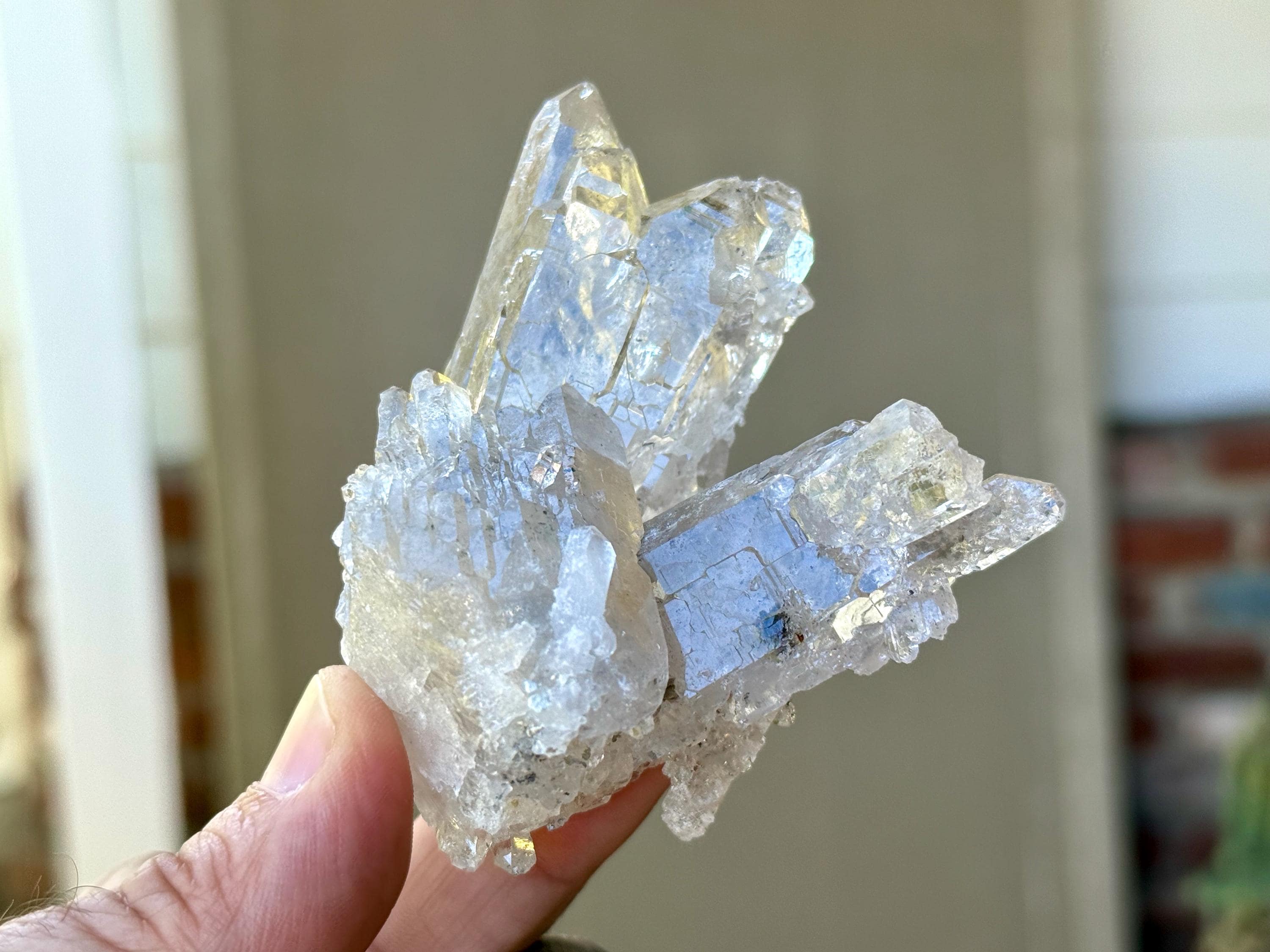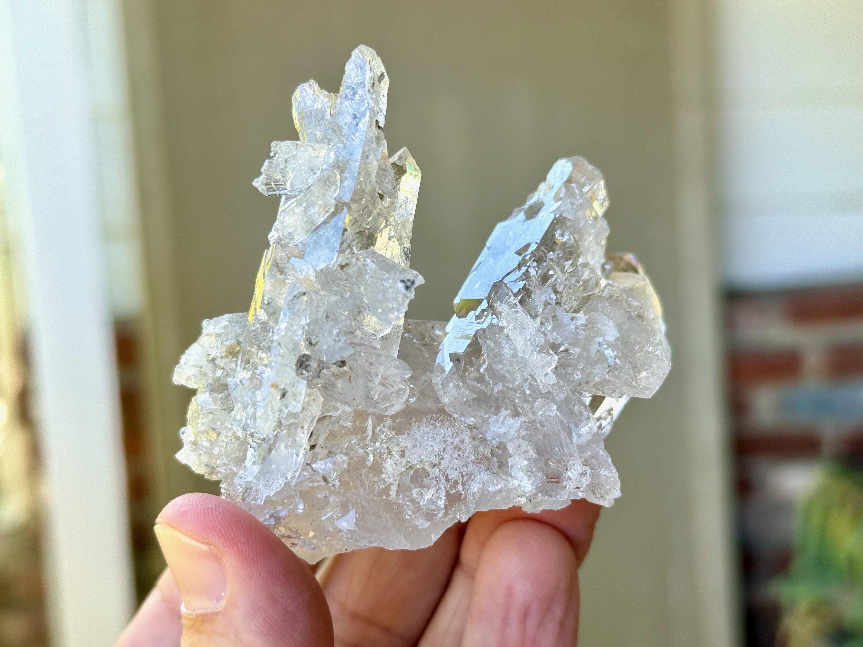 Exquisite, light-bearing luster to this brilliant Cathedral Quartz cluster! This crystal possesses a marvelous aesthetic formation with a broad horizontal "base" crystal that acts as a platform, allowing it to sit nicely for display (Photos 3-4). Atop this base growth are a number of additional Quartz growths, each with multiple points of their own.