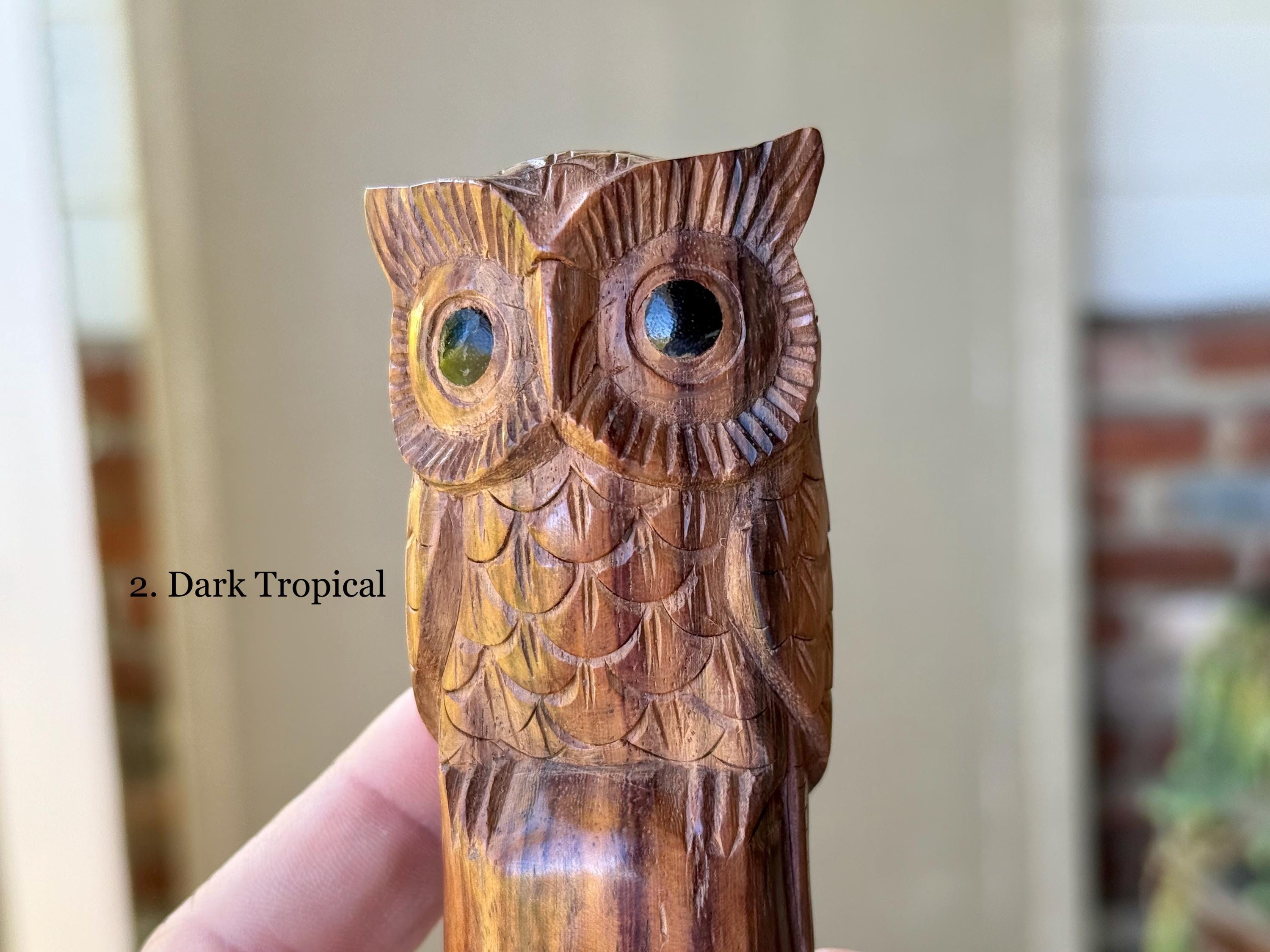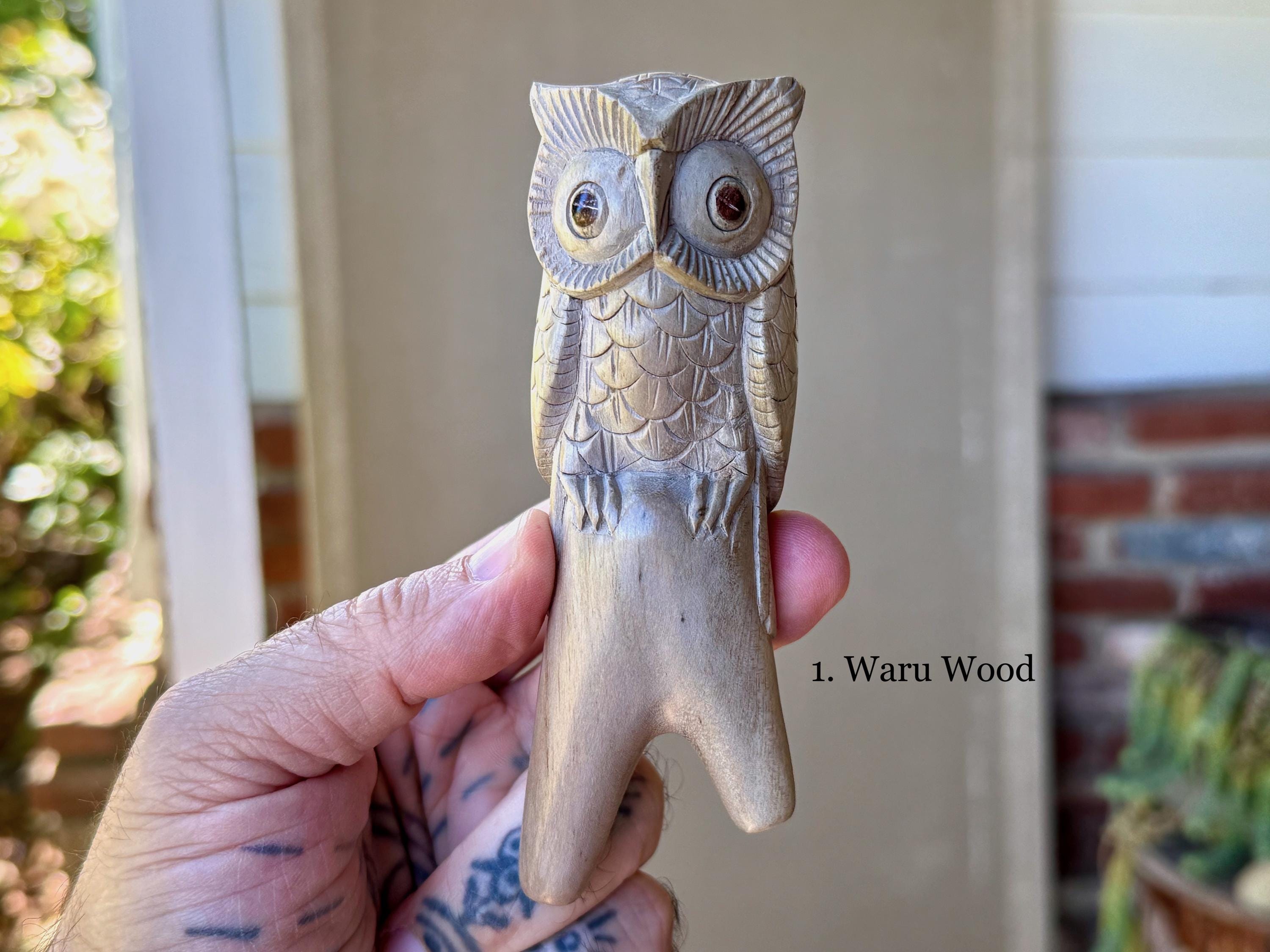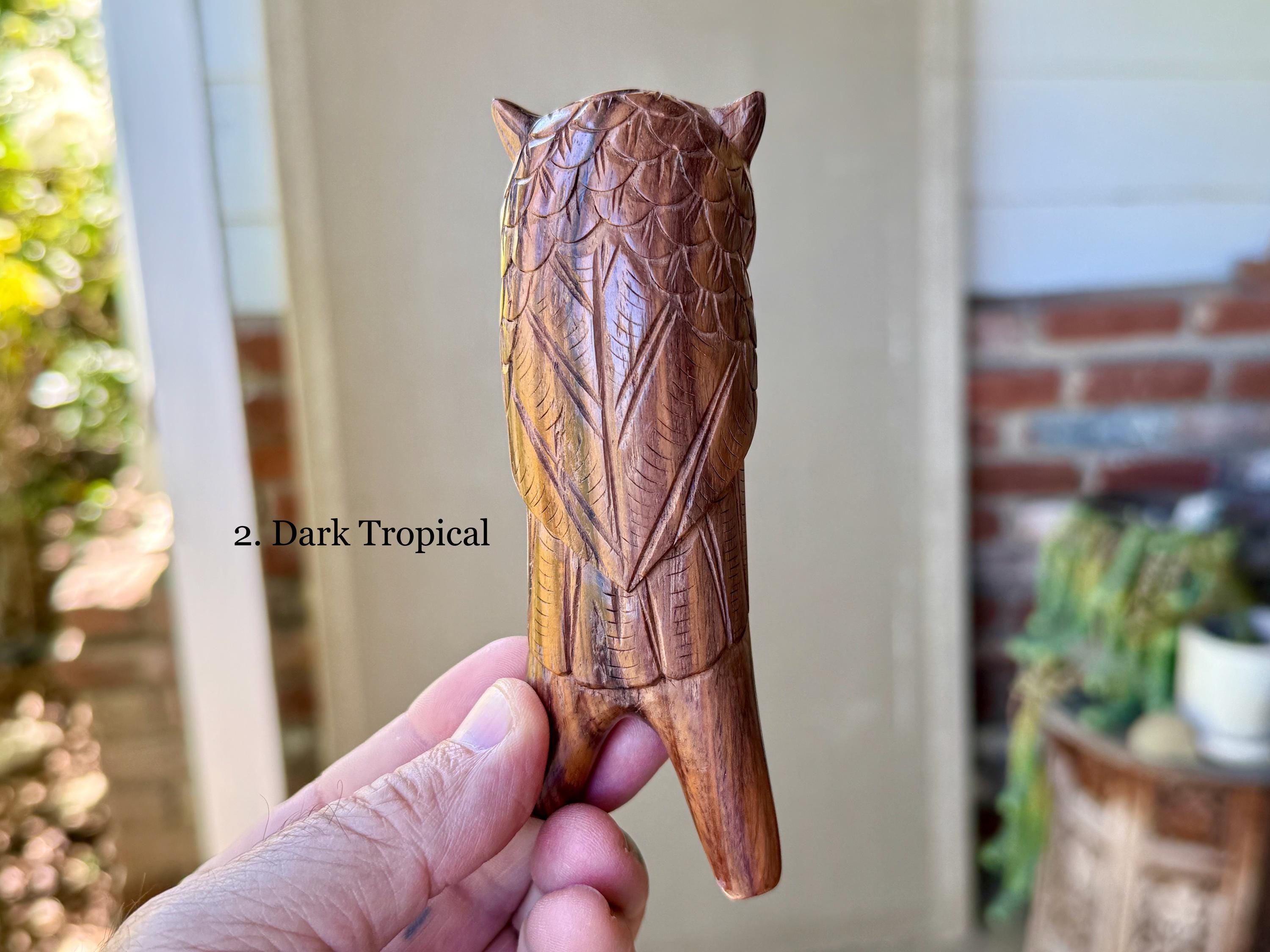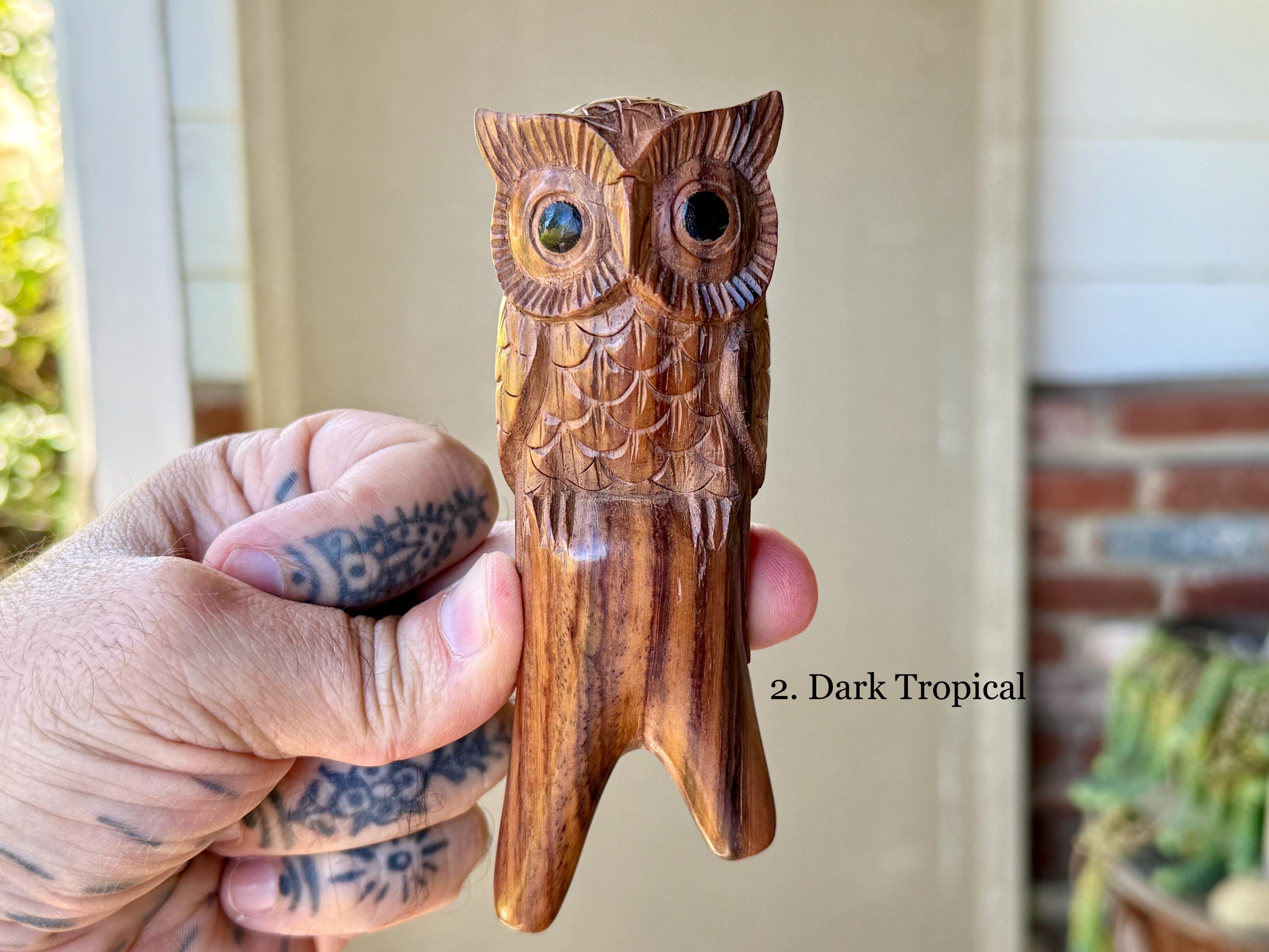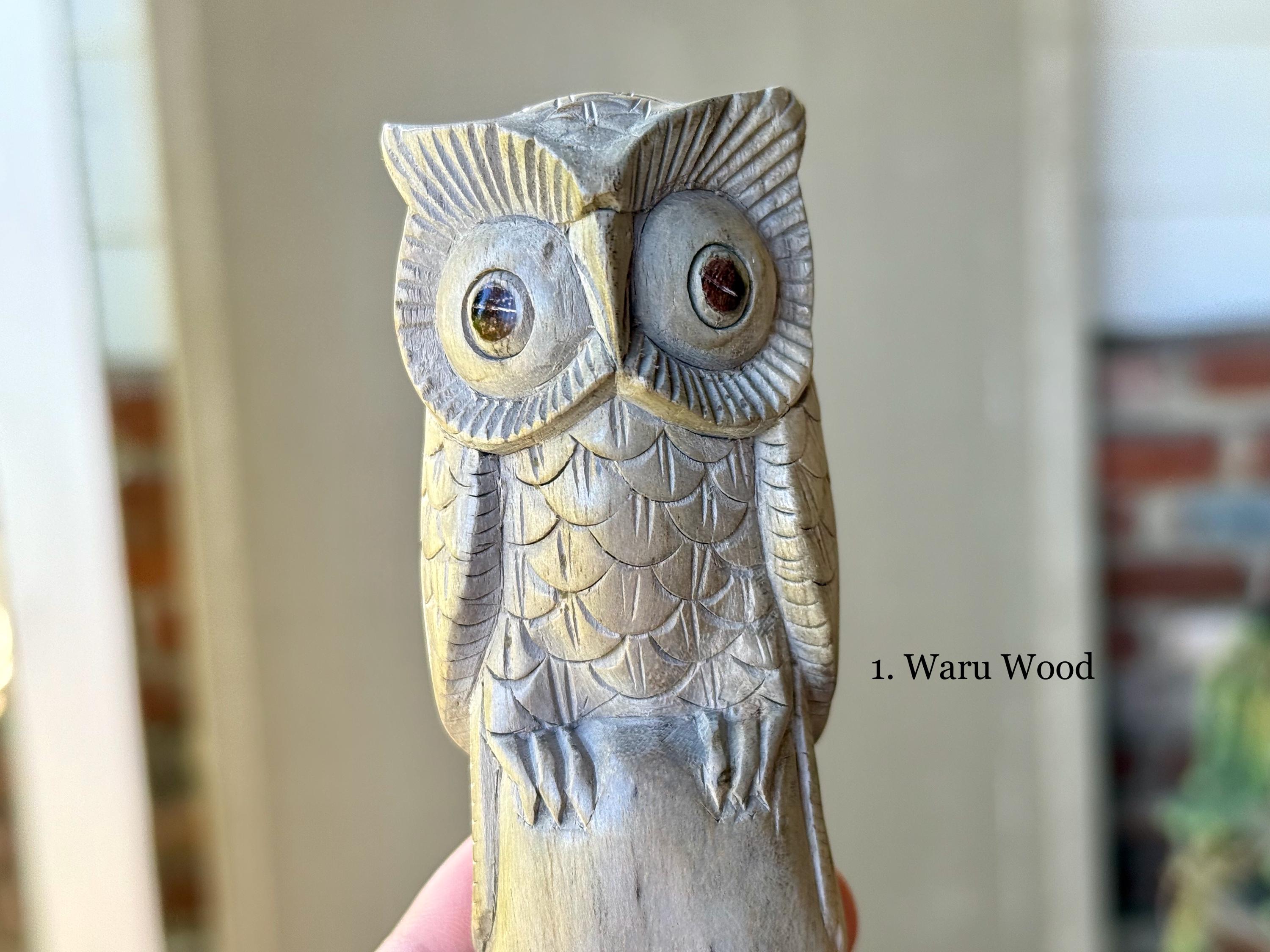 These Owl Kuripes are hand carved by our artisans from native, tropical woods with masterful attention to detail! Each selection is labeled, simply select your preference from the dropdown menu.