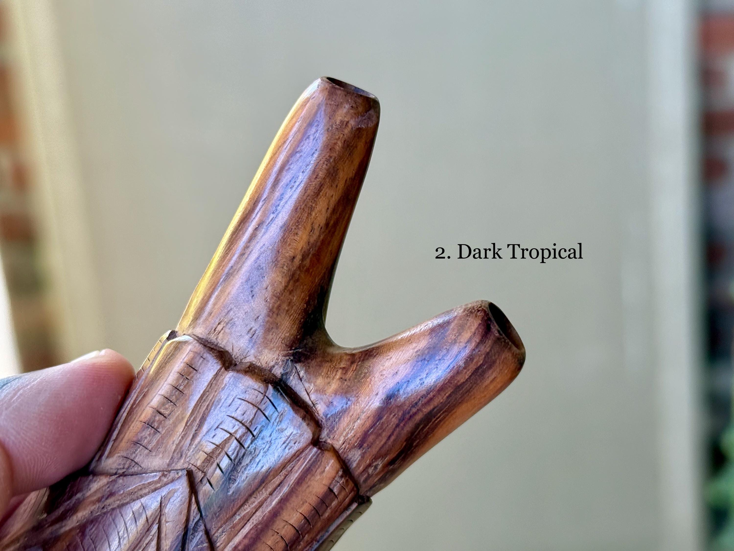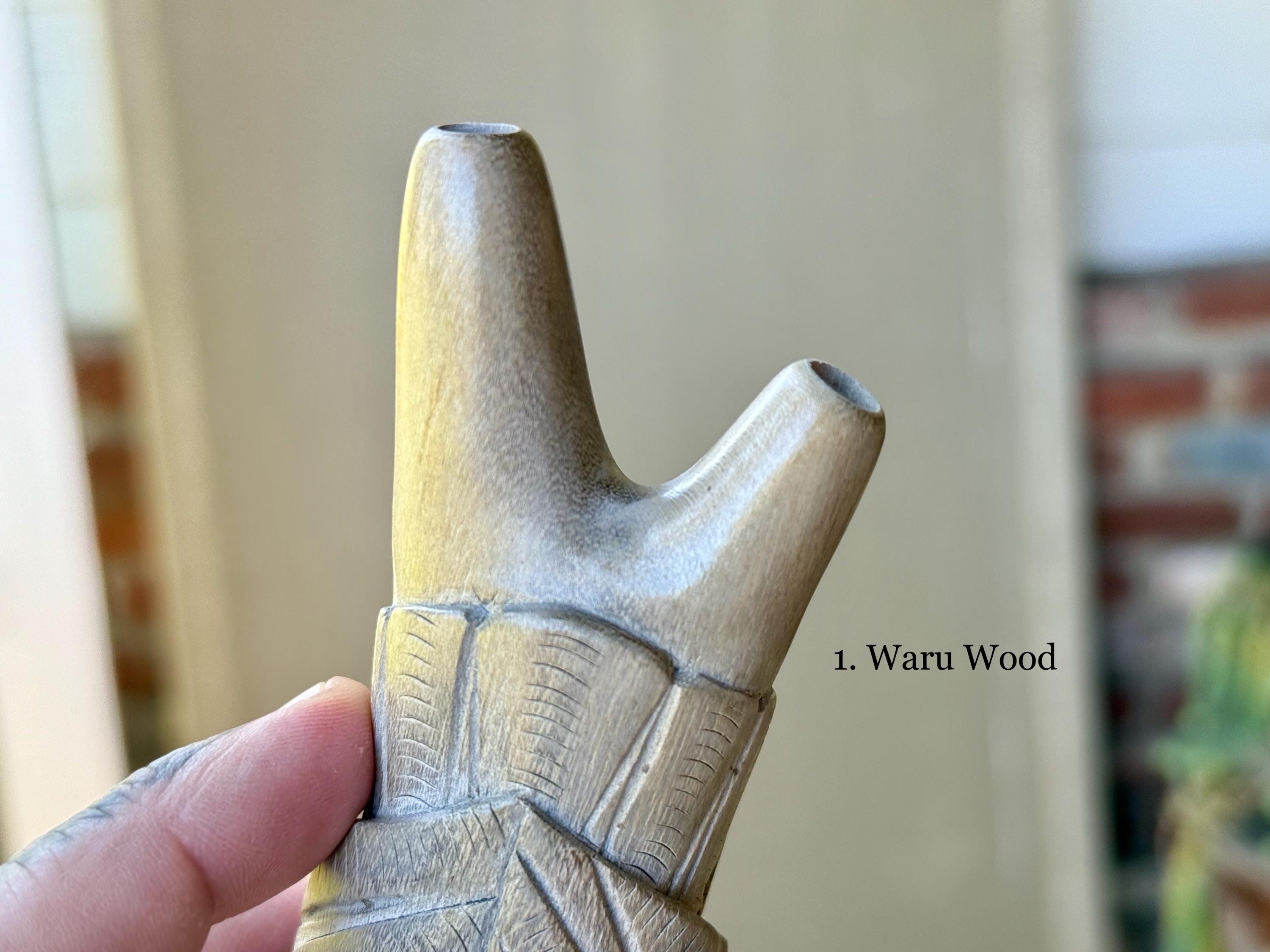 Single Block Kuripes such as this one are carved from a solid piece of wood and therefore possess no fitted/glued joints. Because of this, there is less likelihood of breakage and the airflow is incredibly efficient, powerful and precise.