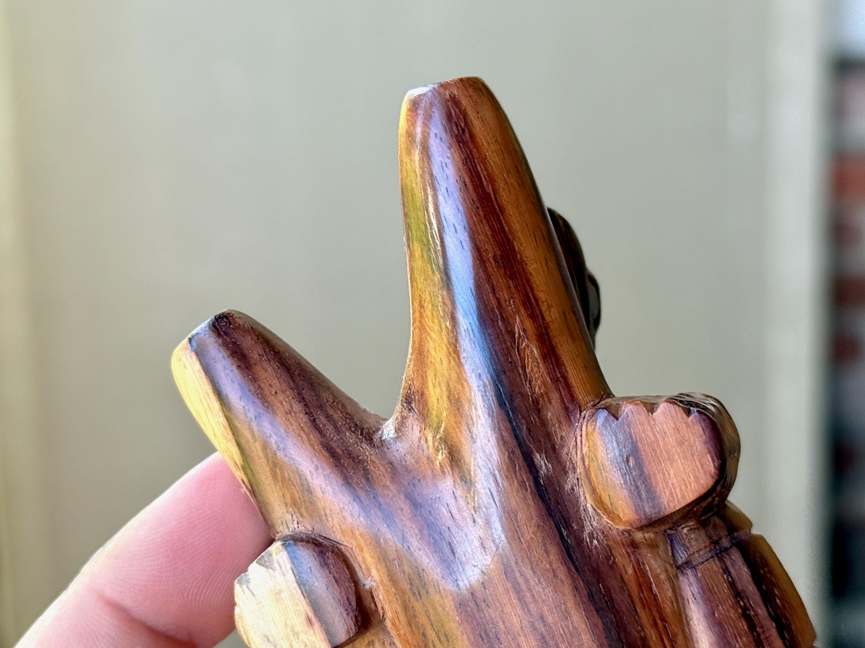 A warm hue and beautiful grain to the wood on this very charming Turtle Kuripe! Masterful attention to detail in the shell carving and expression. A beautiful and joyful medicine tool.