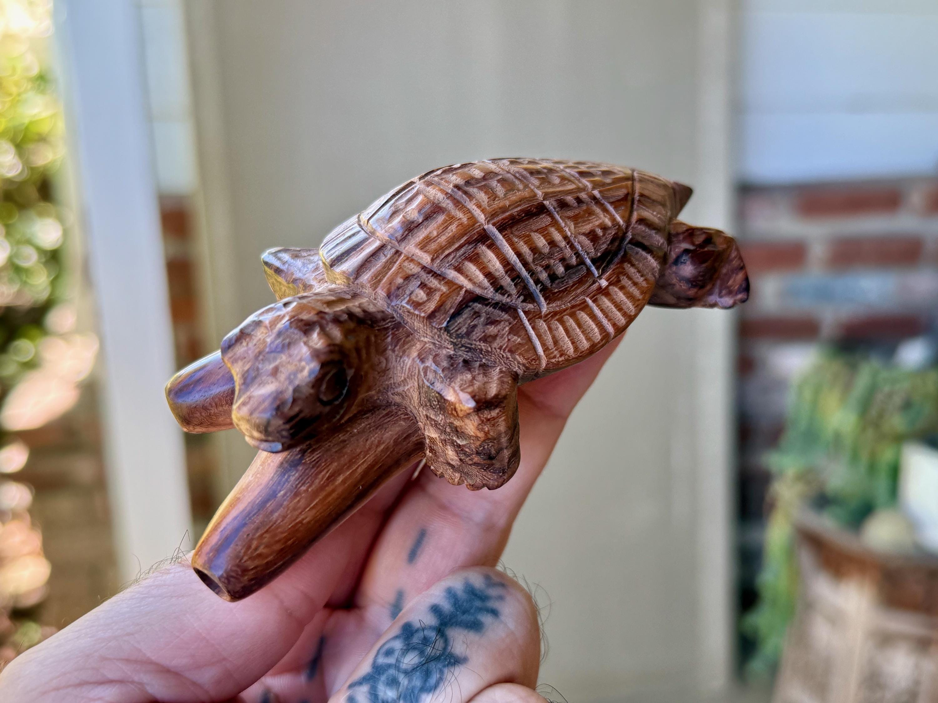This spectacular Turtle Kuripe was hand carved by our artisans from natural, dark tropical hardwood.