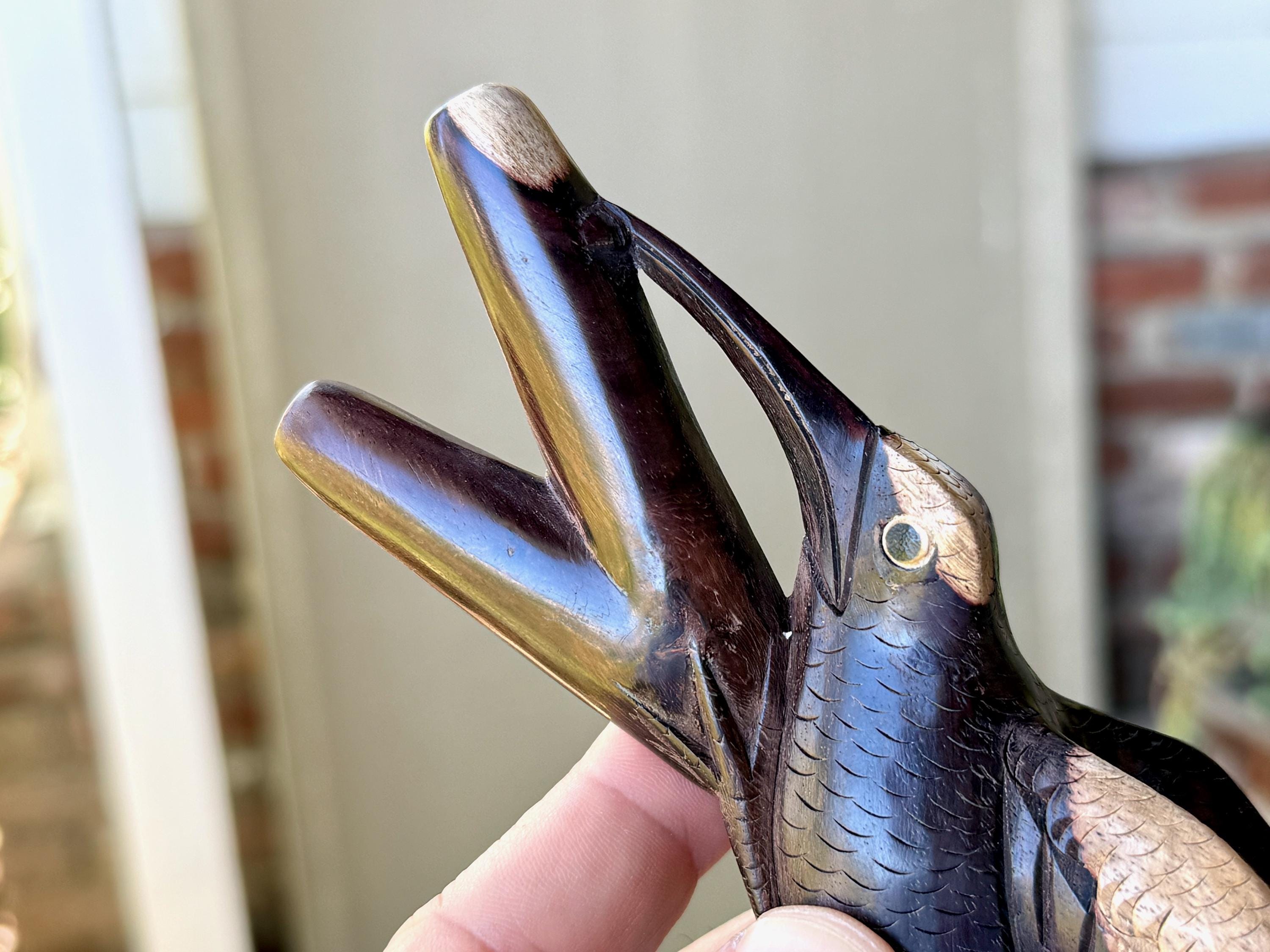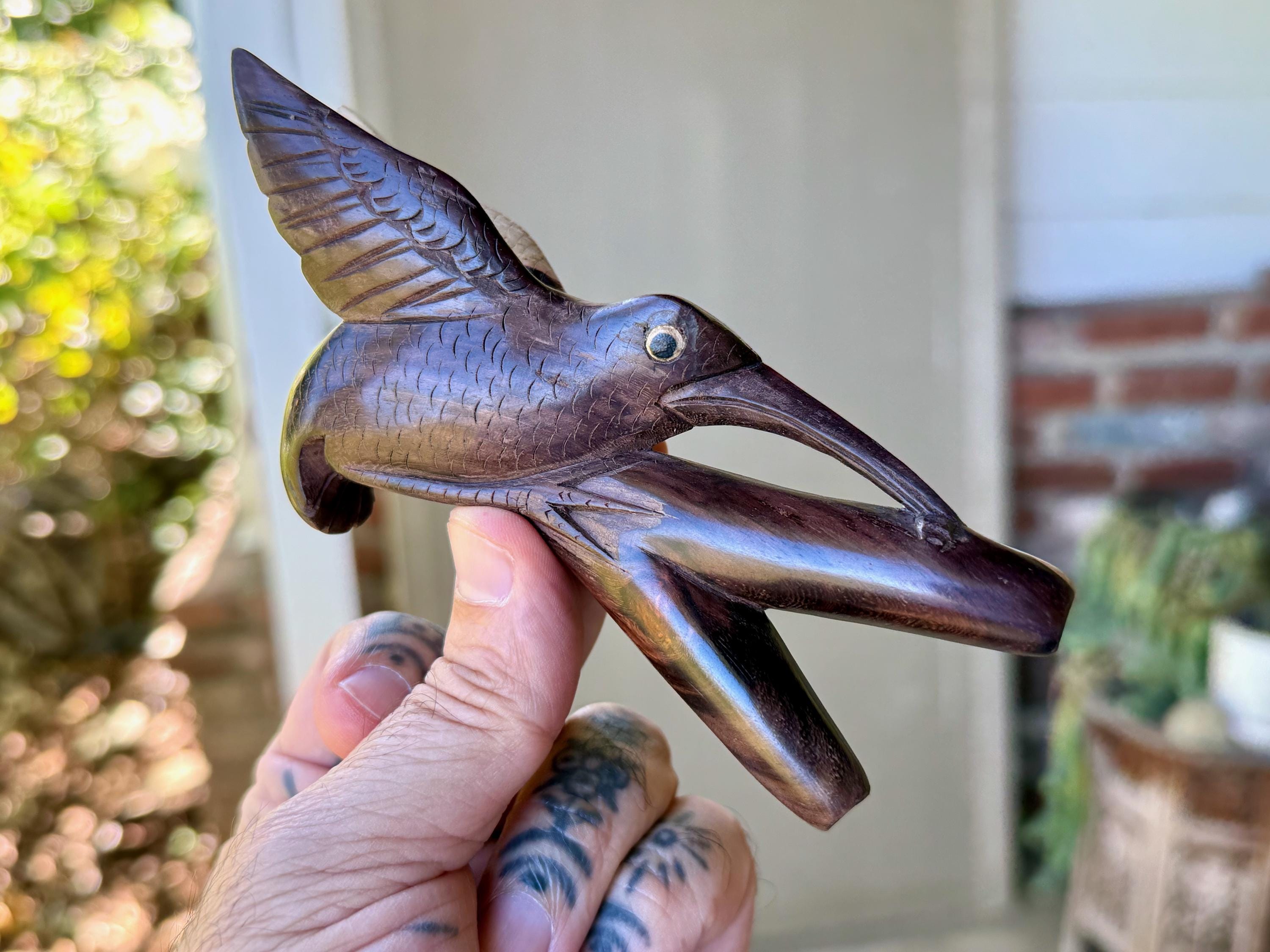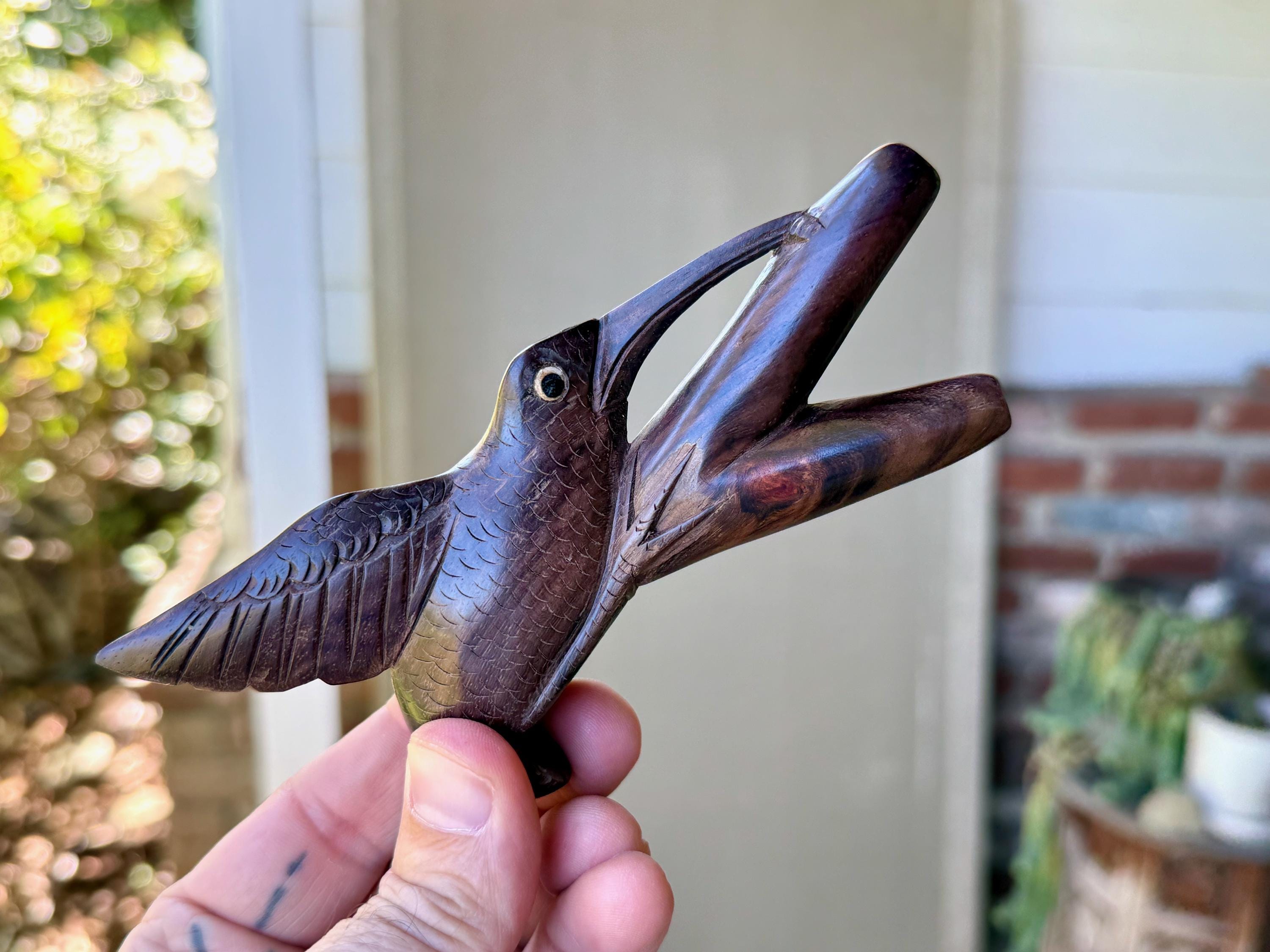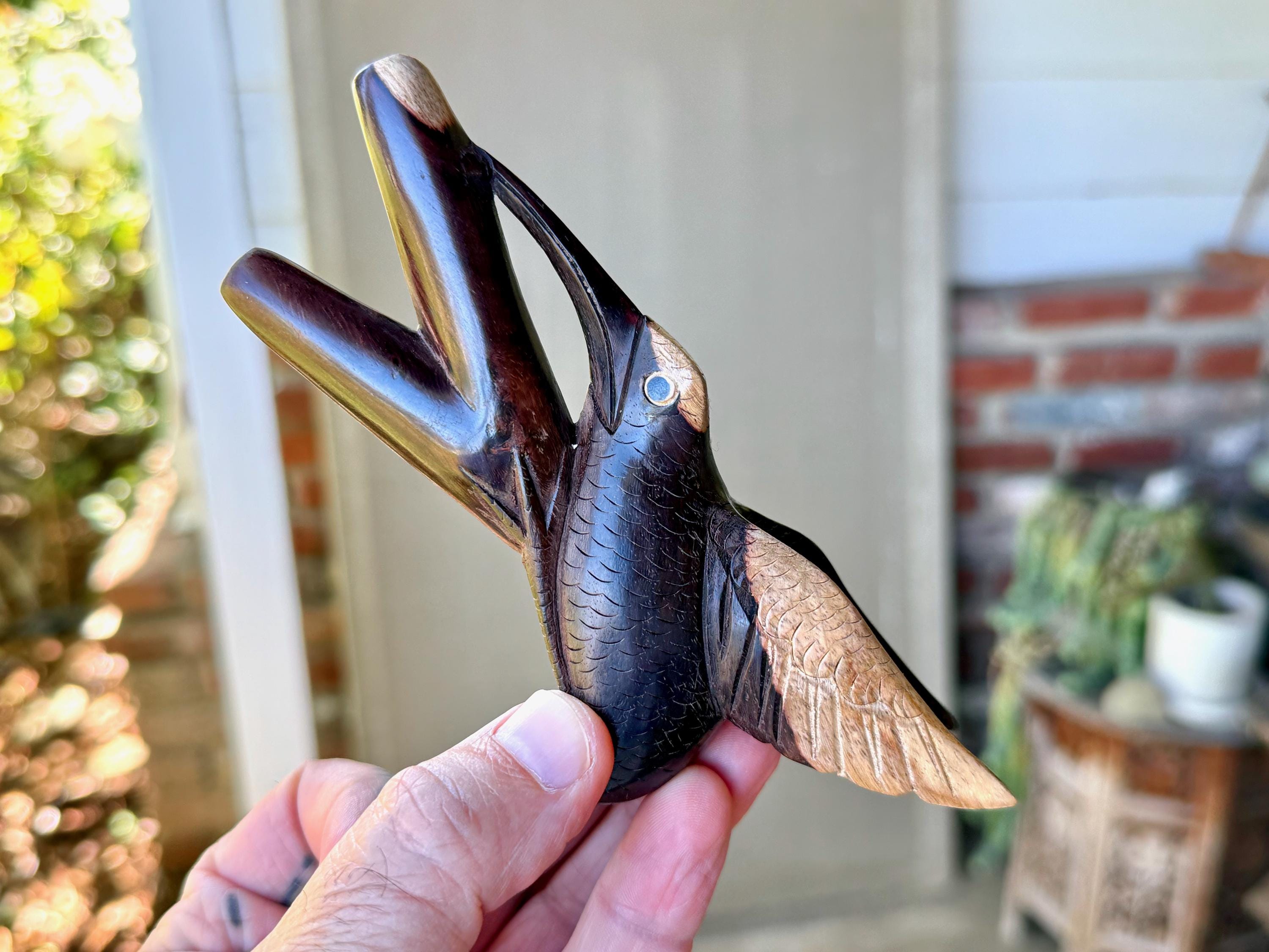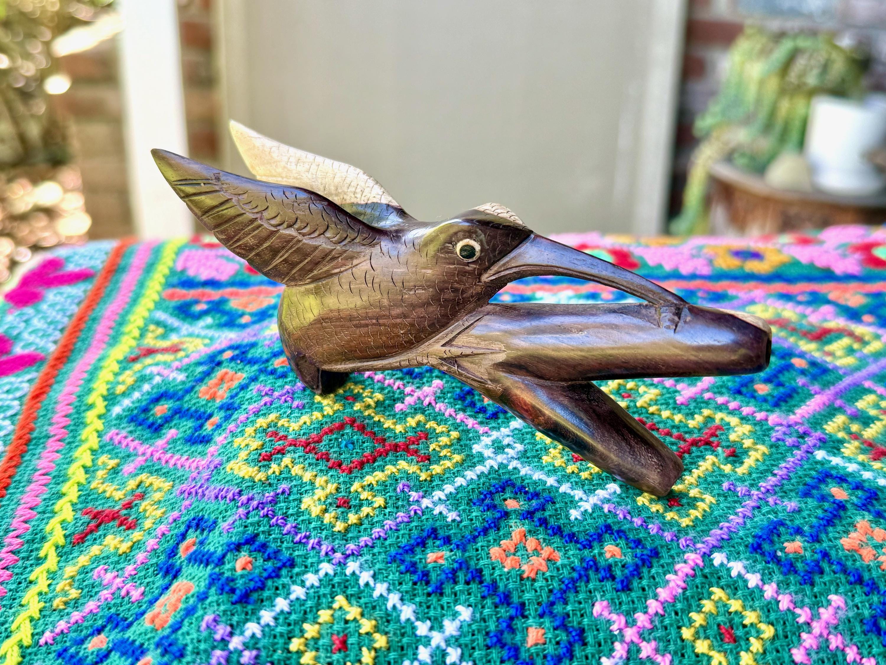 This exquisite Hummingbird Kuripe was hand carved from a solid piece of natural two-tone tropical hardwood.