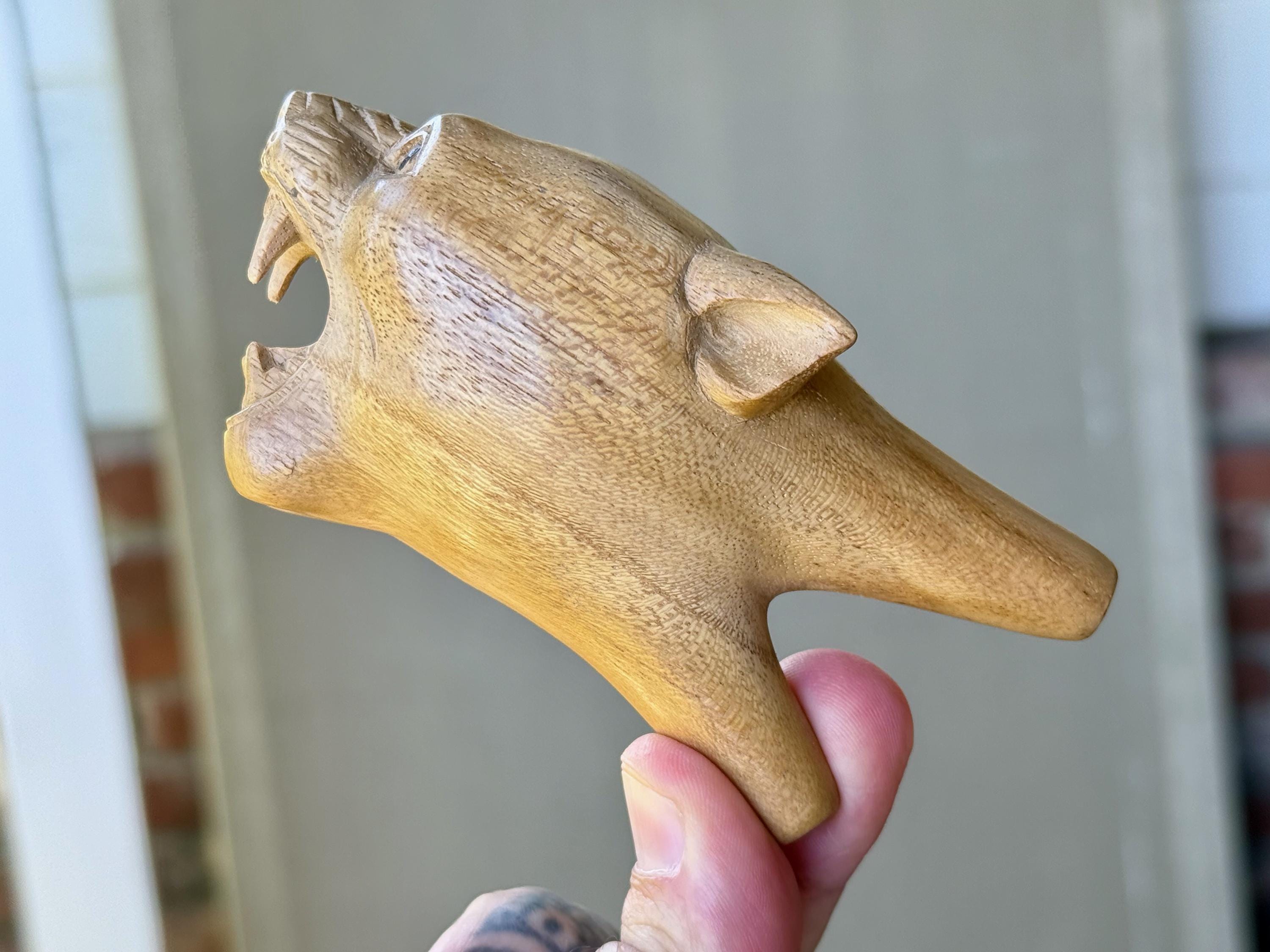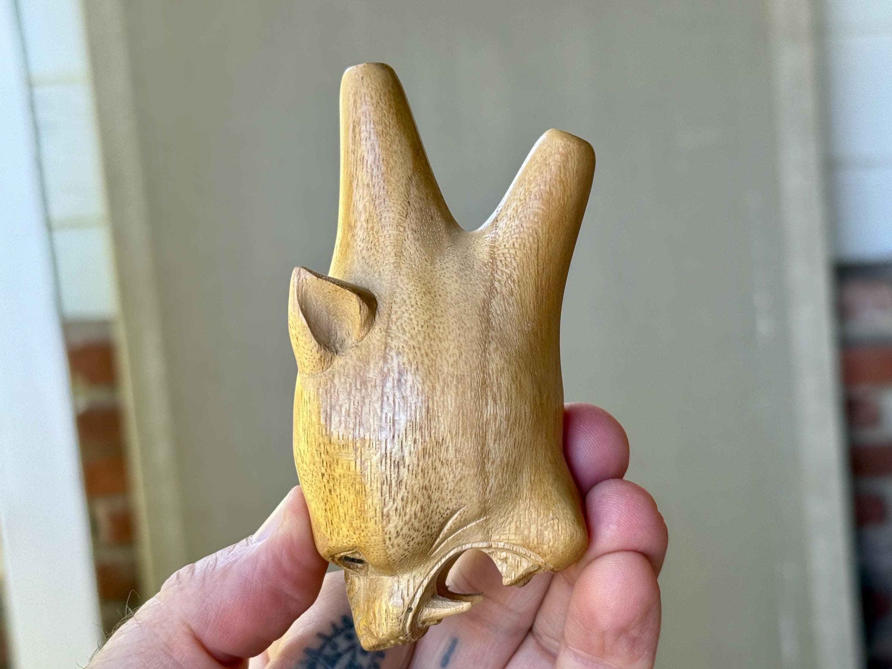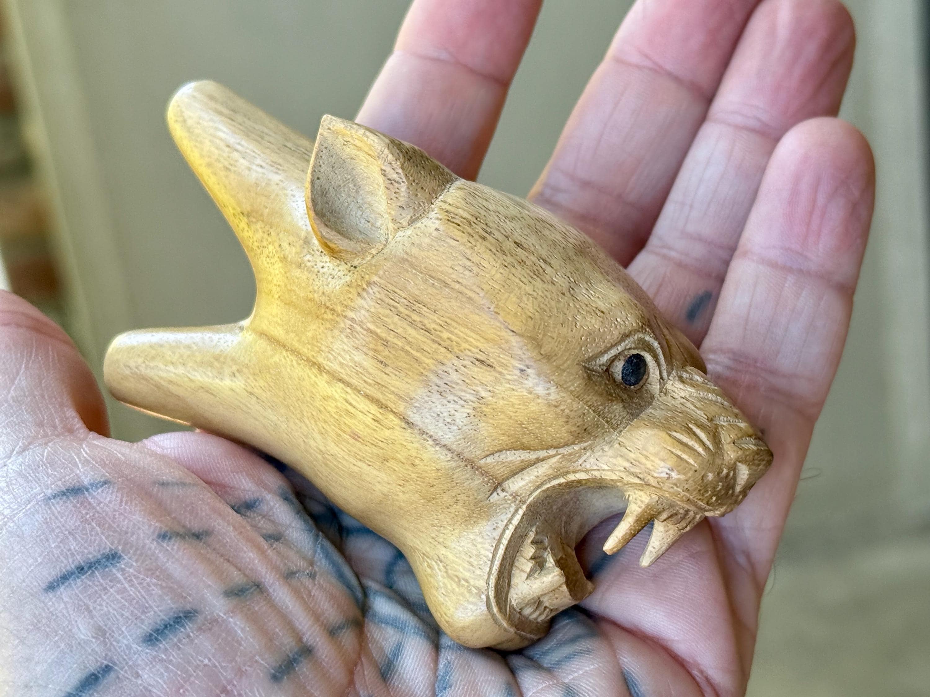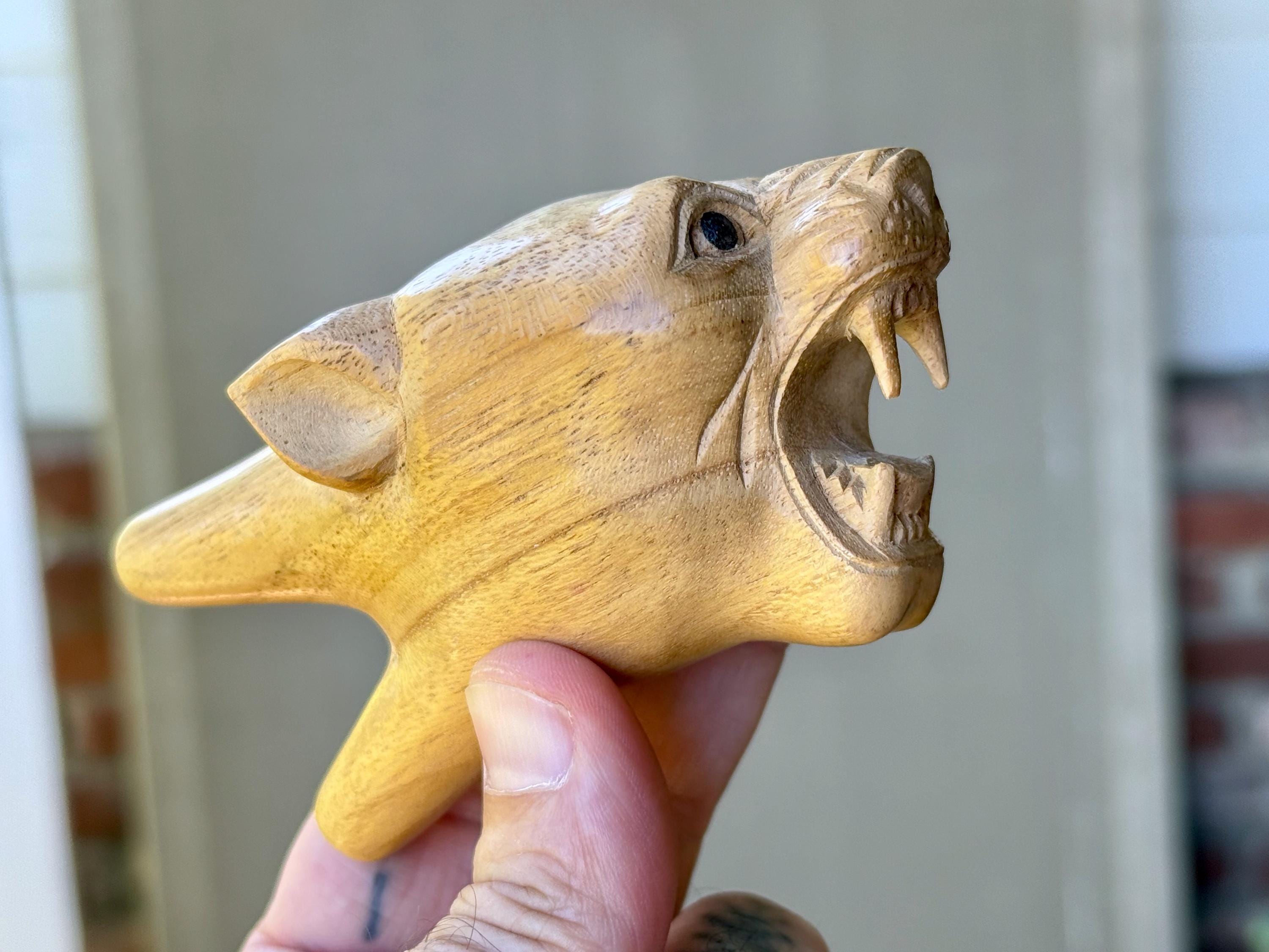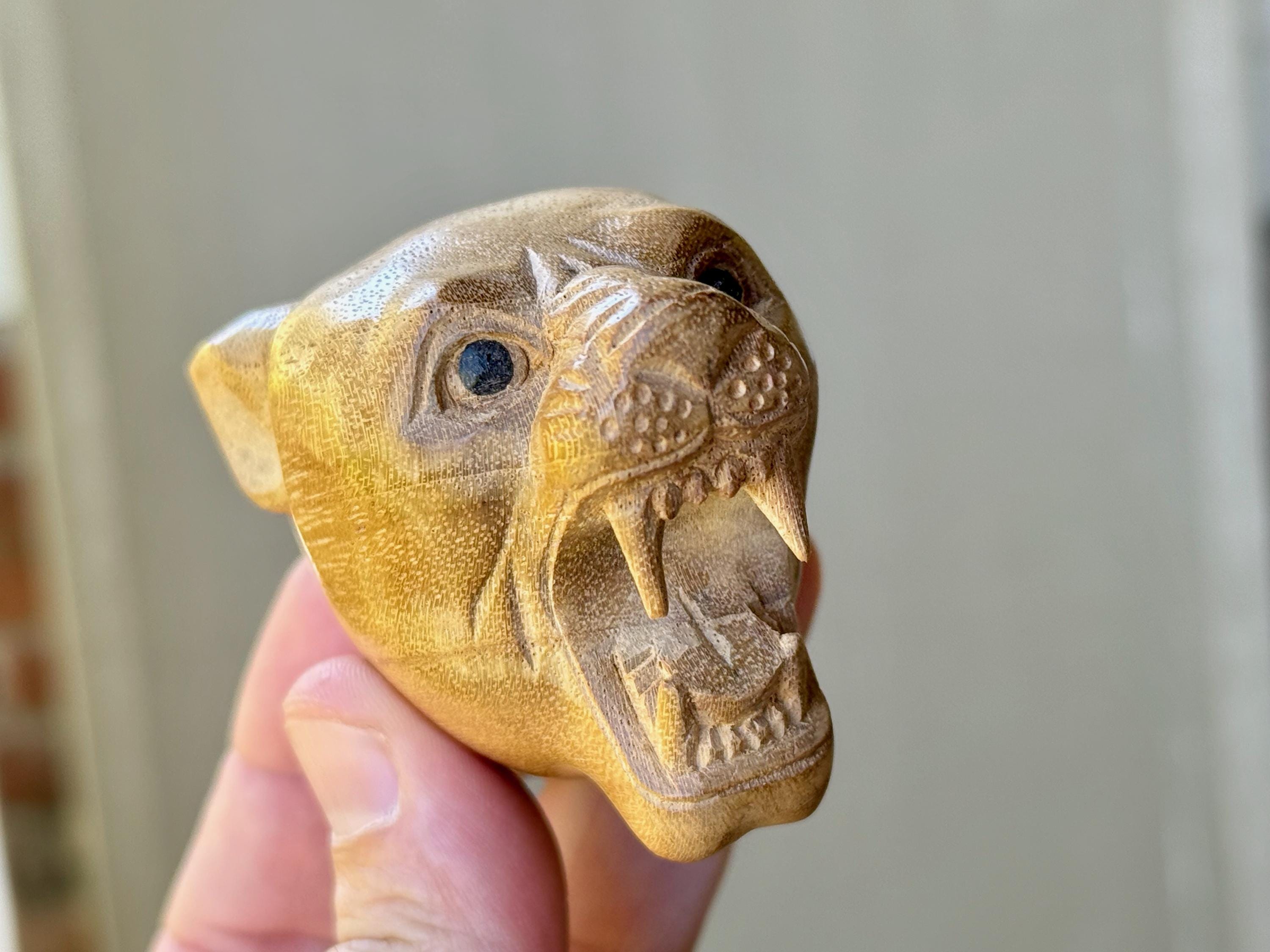 A masterful work of art, this powerful Jaguar (or Panther, Puma...) is beautifully carved from a single block of Crocodile Wood, a light-toned tropical wood that is lightweight but durable. A beautifully crafted and powerfully functional work of art.