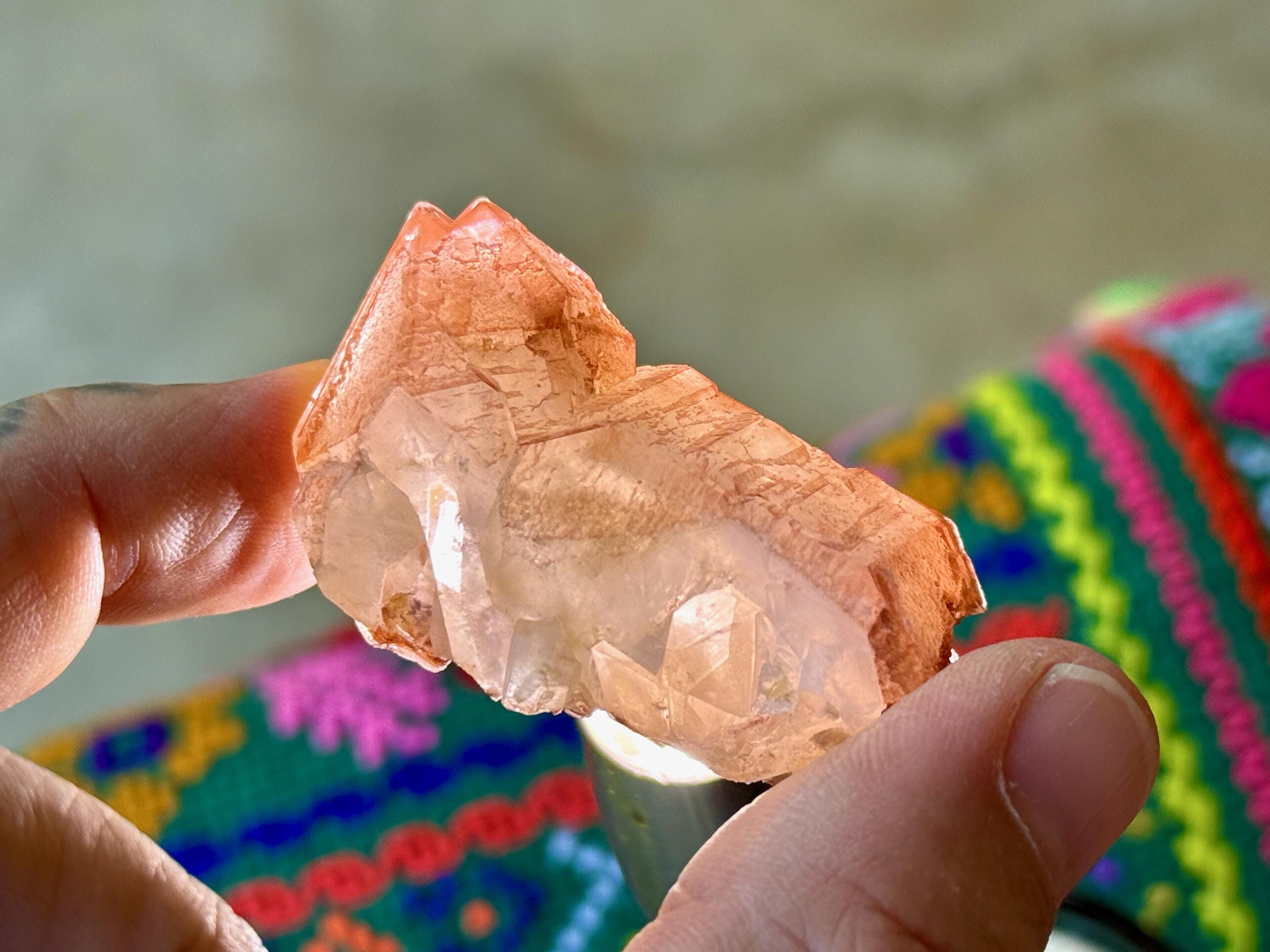 Due to being mined near Lithium-rich areas, these crystals were initially regarded as getting their pink color from Lithium inclusion. However, it is now being reconsidered that these are most likely Hematite-included crystals.