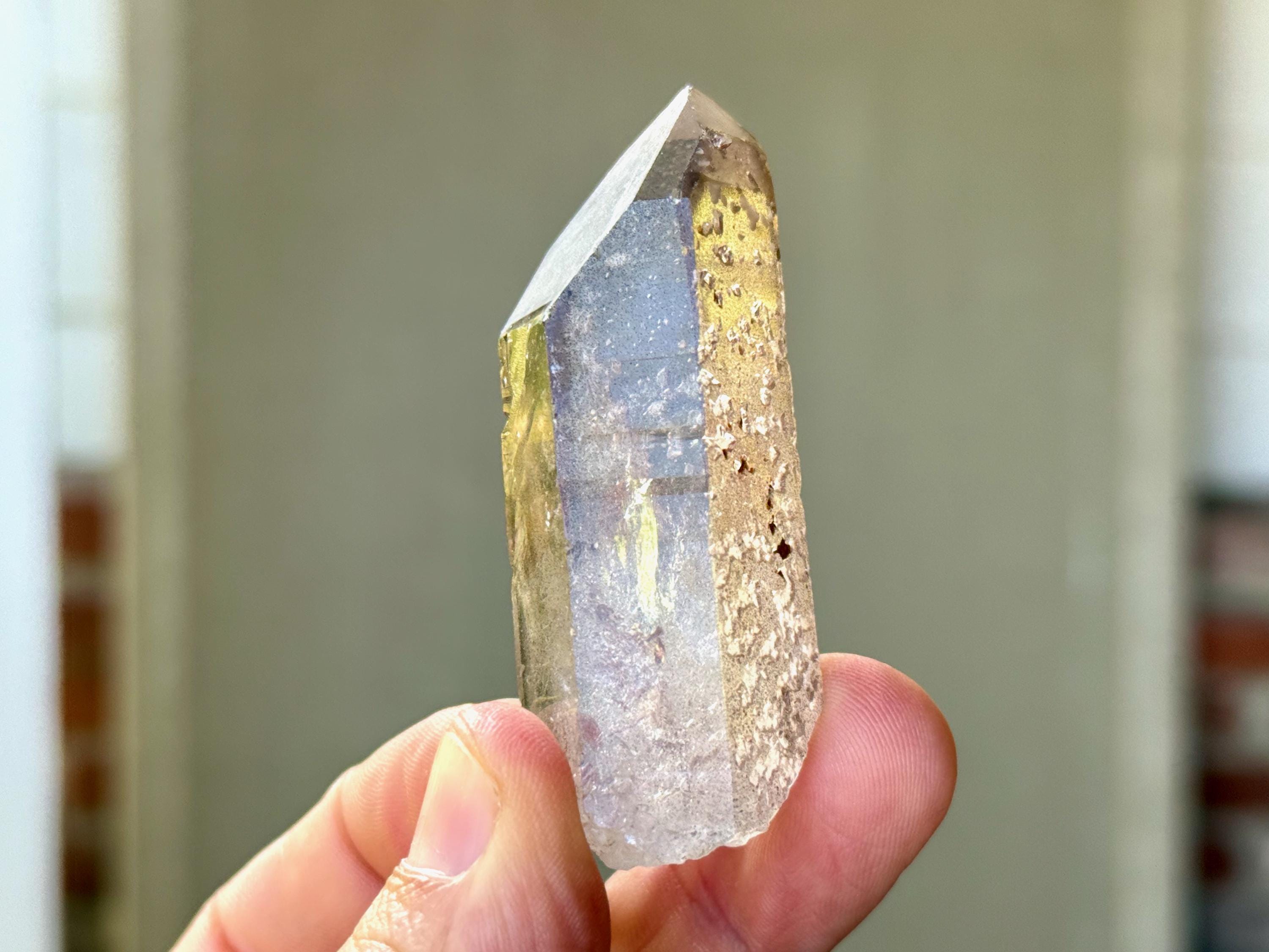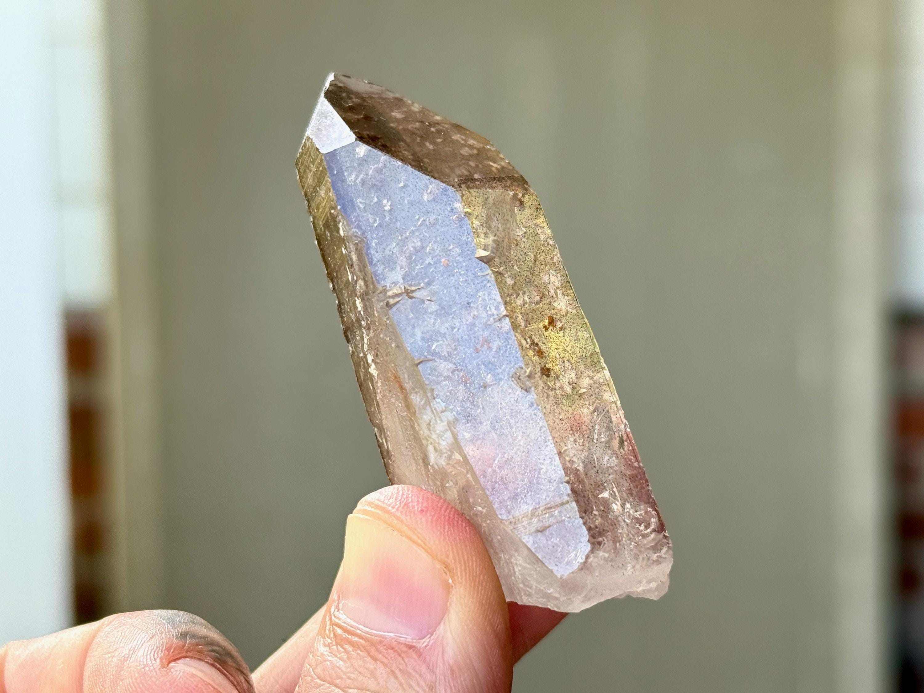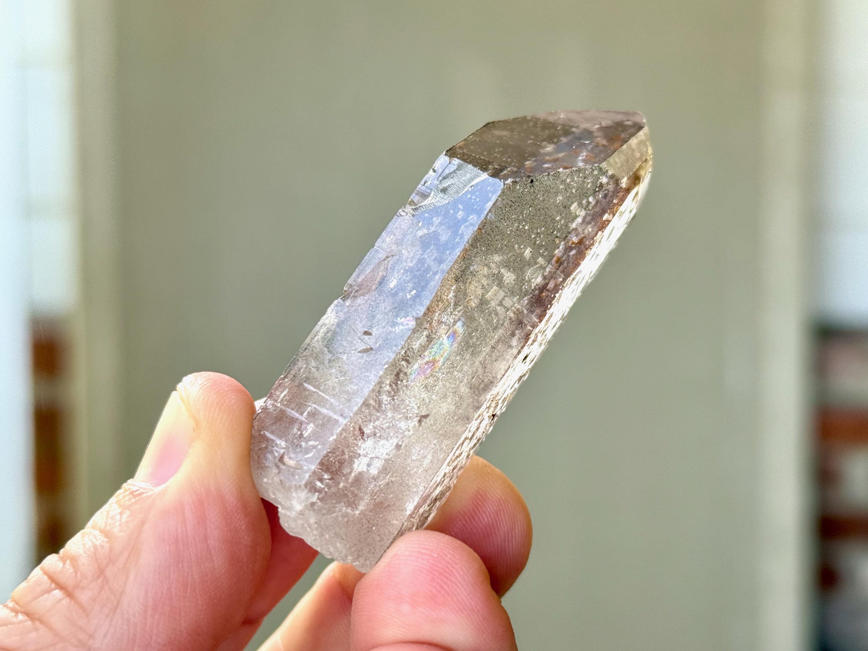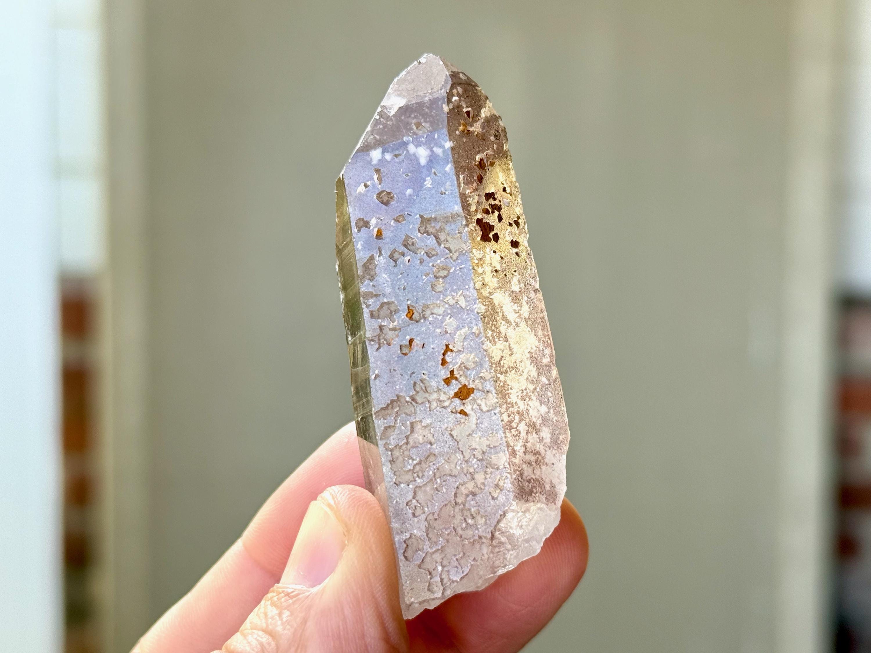 Hematite is a powerful mineral that absorbs negative (heavy) energy and recycles it into a more positive vibration. It is a wonderful grounding stone to correlate to the Root Chakra, and its properties are amplified by the quartz it encases.