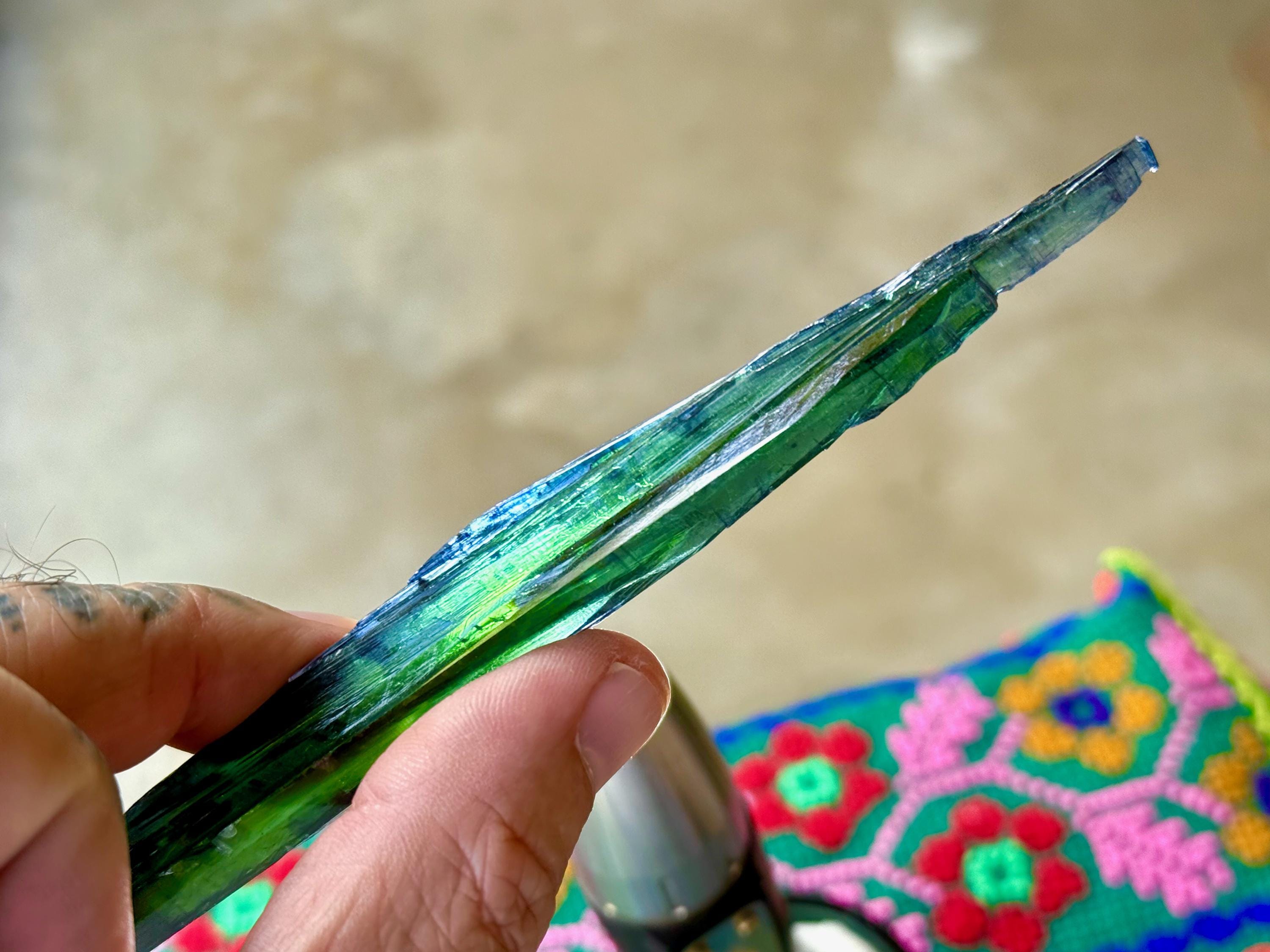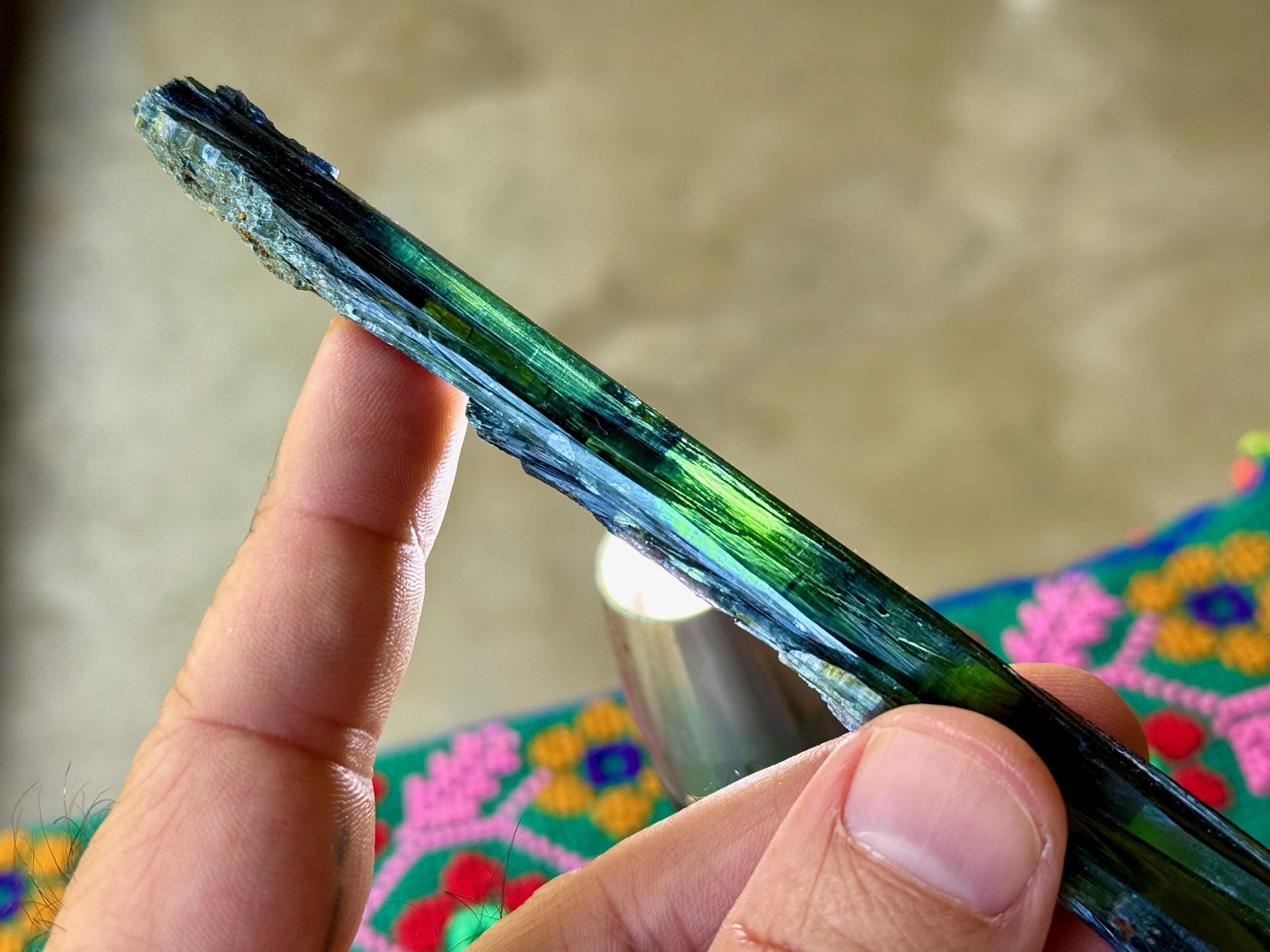 This crystal is so so vibrant and clear that even in natural light, we can get a good sense of the clarity and color. However, when backlit, the colors truly come to life! (Photos 3-7).