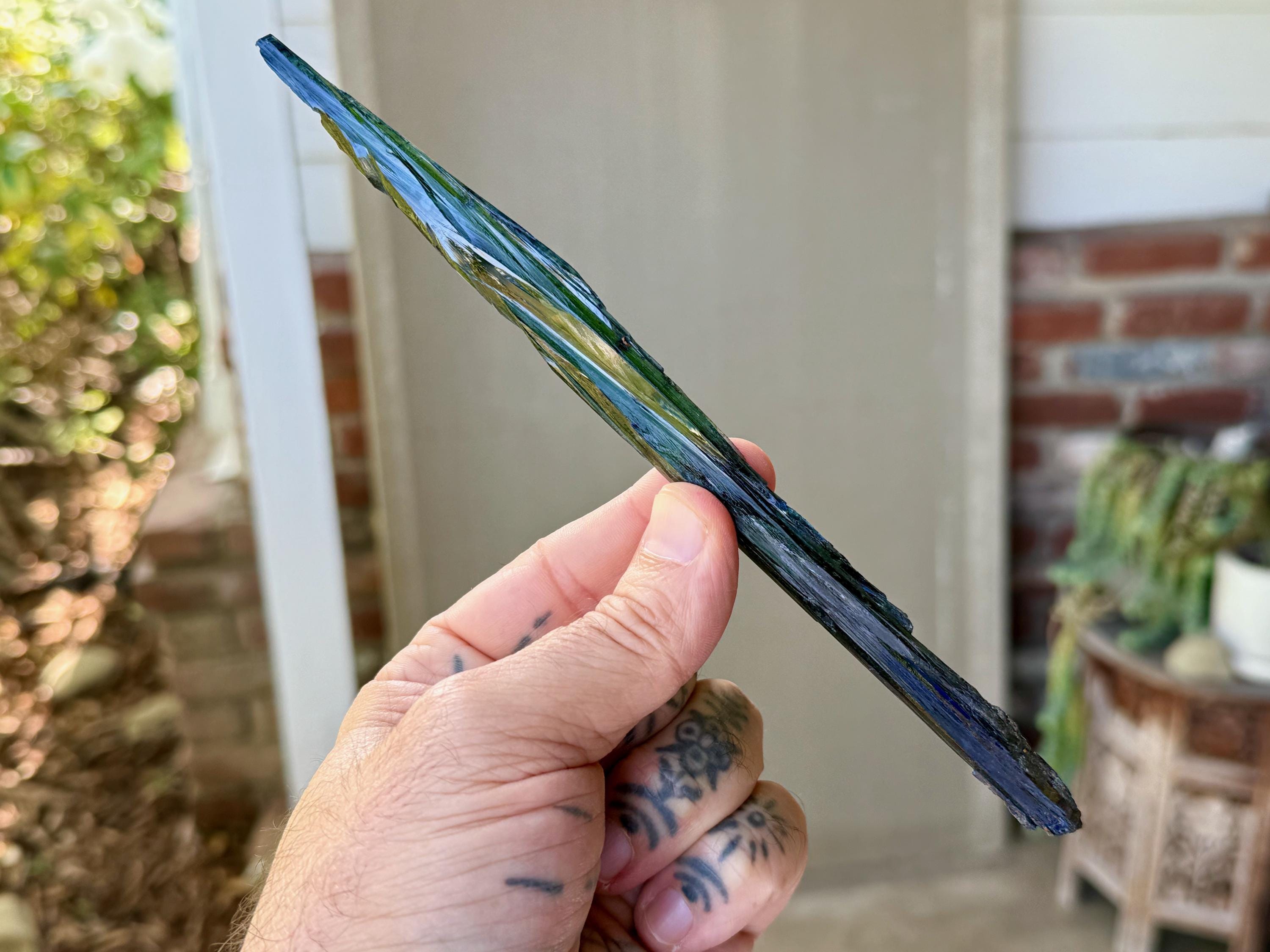 PLEASE NOTE: Vivianite should not be kept on permanent display or in direct sunlight for extended periods of time, as it will darken in color to almost black. This is due to the oxidation of the iron content in the crystal.