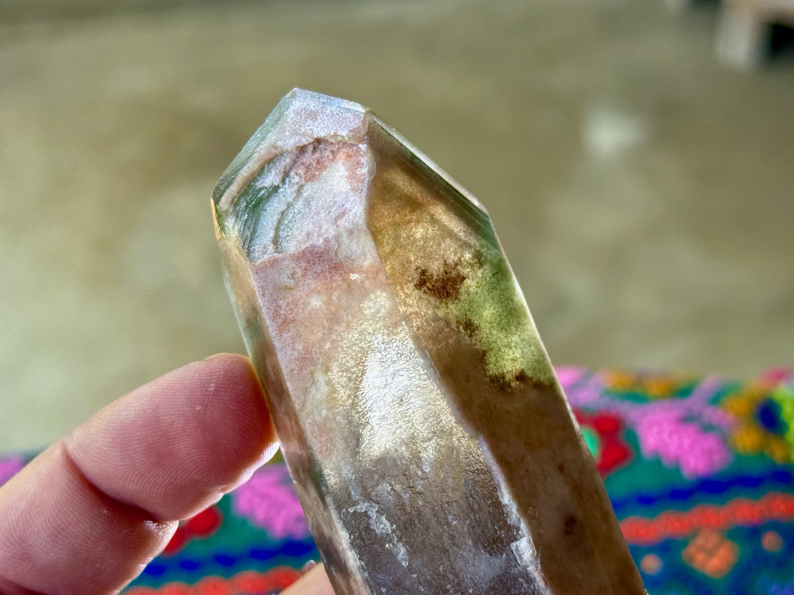 Lodolite Quartz, sometimes referred to as Garden Quartz for their beautiful inner landscapes, refers to crystals with colorful inclusions that may include Green Chlorite, Kaolinite, Hematite, Sulfite and other inclusions that all fall under the umbrella of "Lodolite." Each of these inclusions carries a particular energy of purification, grounding or healing.