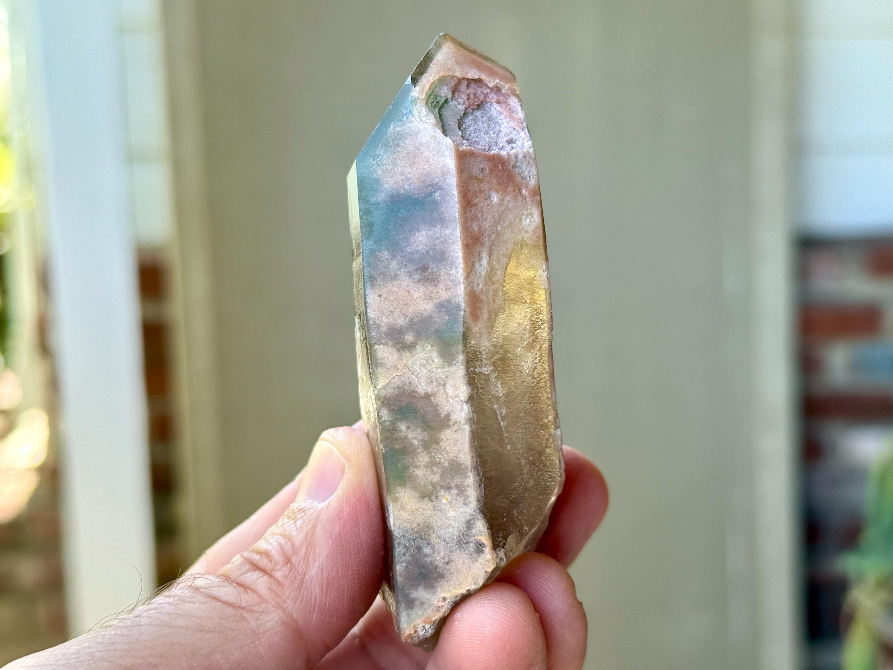 Lodolite Quartz, sometimes referred to as Garden Quartz for their beautiful inner landscapes, refers to crystals with colorful inclusions that may include Green Chlorite, Kaolinite, Hematite, Sulfite and other inclusions that all fall under the umbrella of "Lodolite." Each of these inclusions carries a particular energy of purification, grounding or healing, and the combination of these elements together, amplified by the Quartz surrounding them, creates a powerful healing energy. Aesthetically, they often have stunning inner landscapes that often look like mossy underwater gardens.