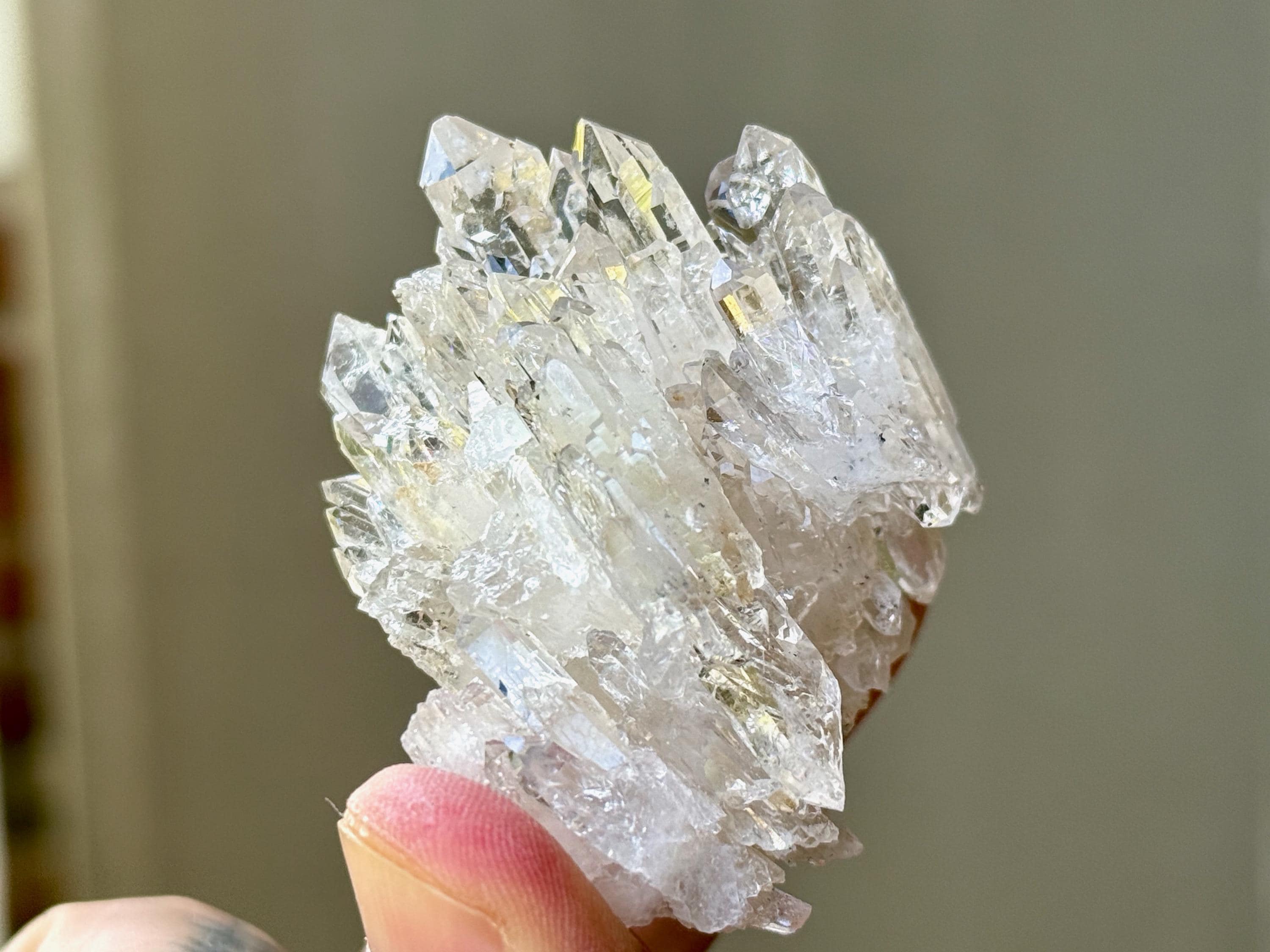 Like a brilliant bundle of light energy! This is an extraordinary Cathedral Quartz cluster with magnificent luster and clarity, and SO many individual crystals combined together, some of which are Double Terminated. The very highest quality and excellent terminations all around.