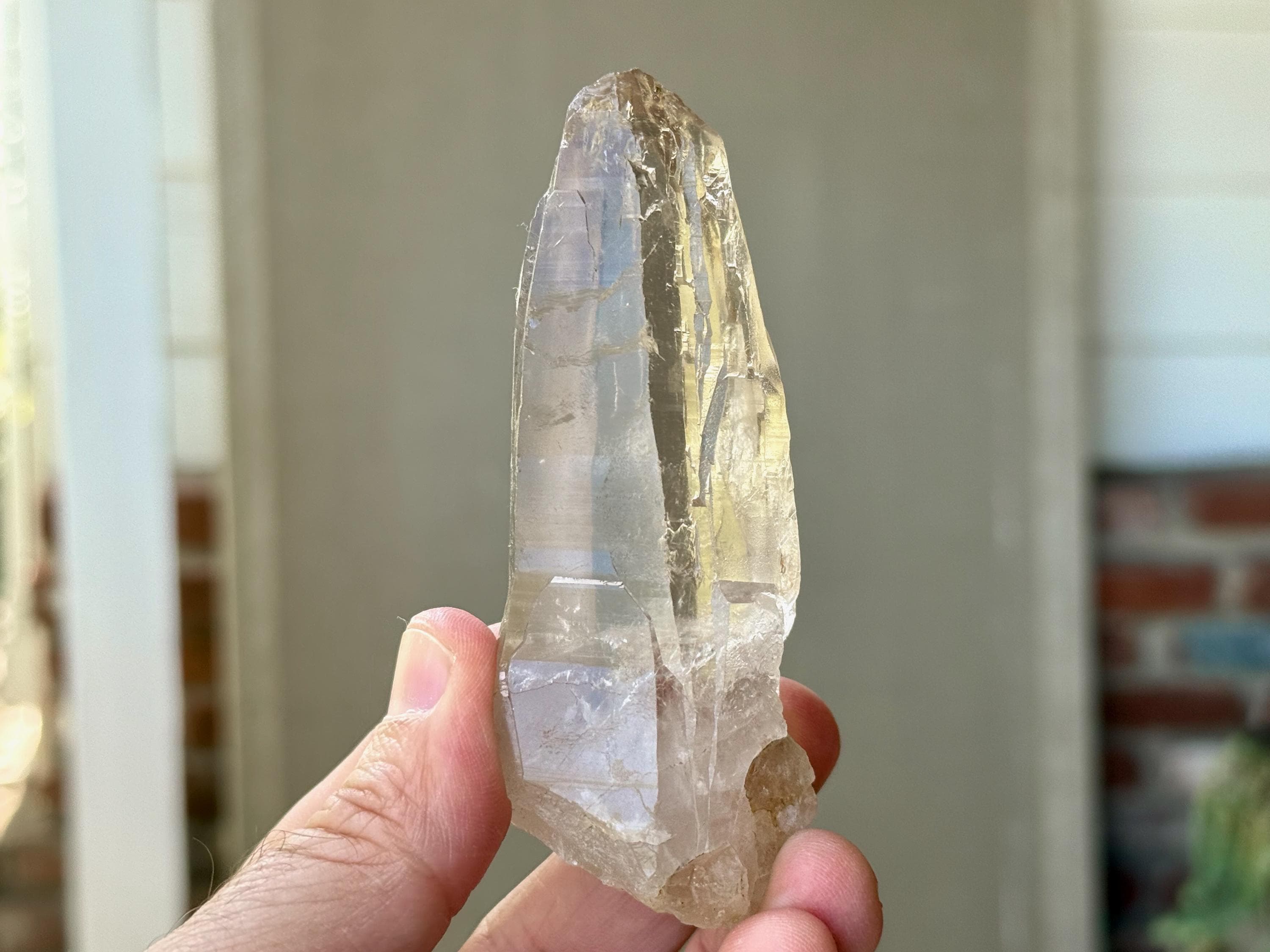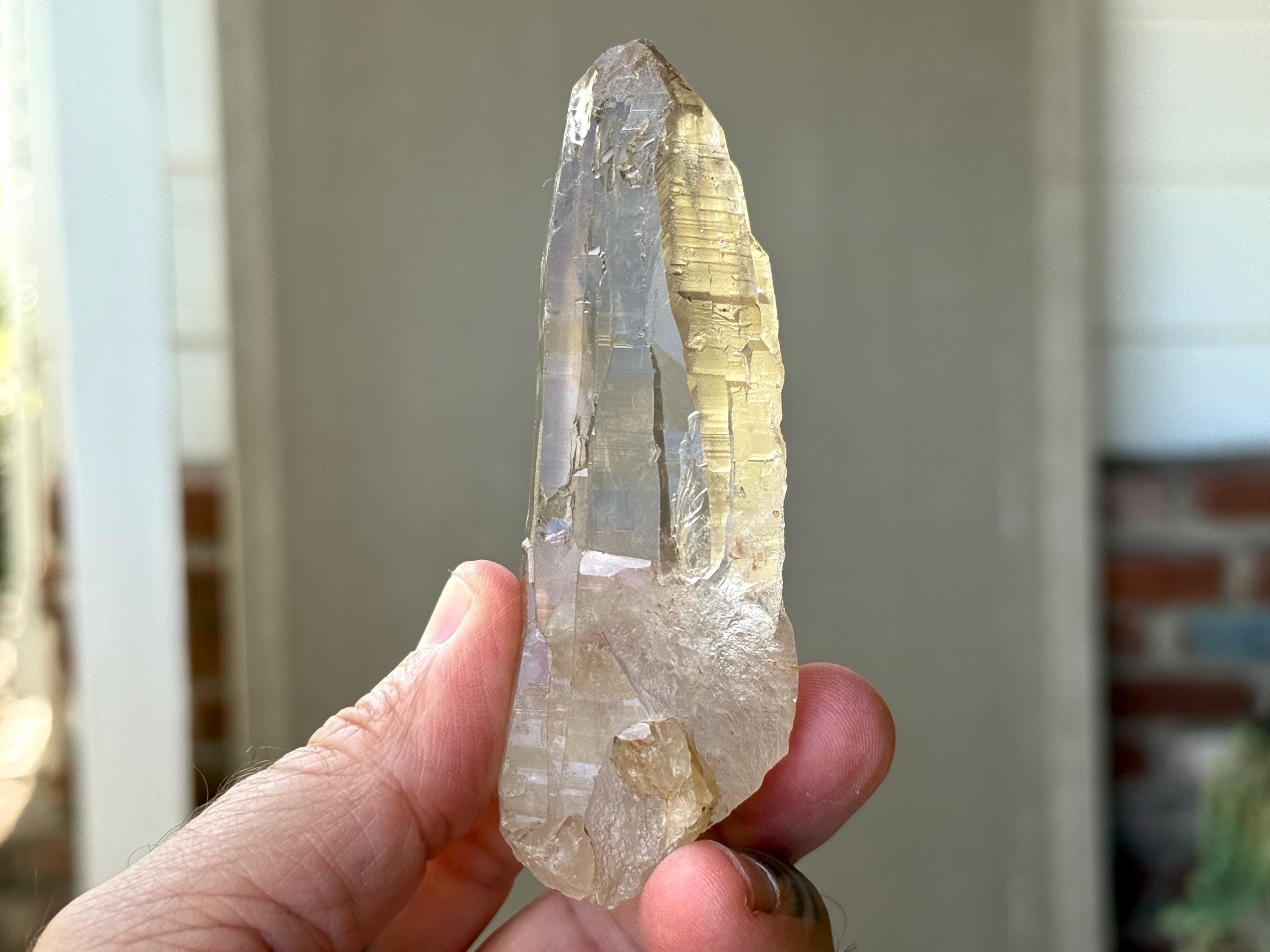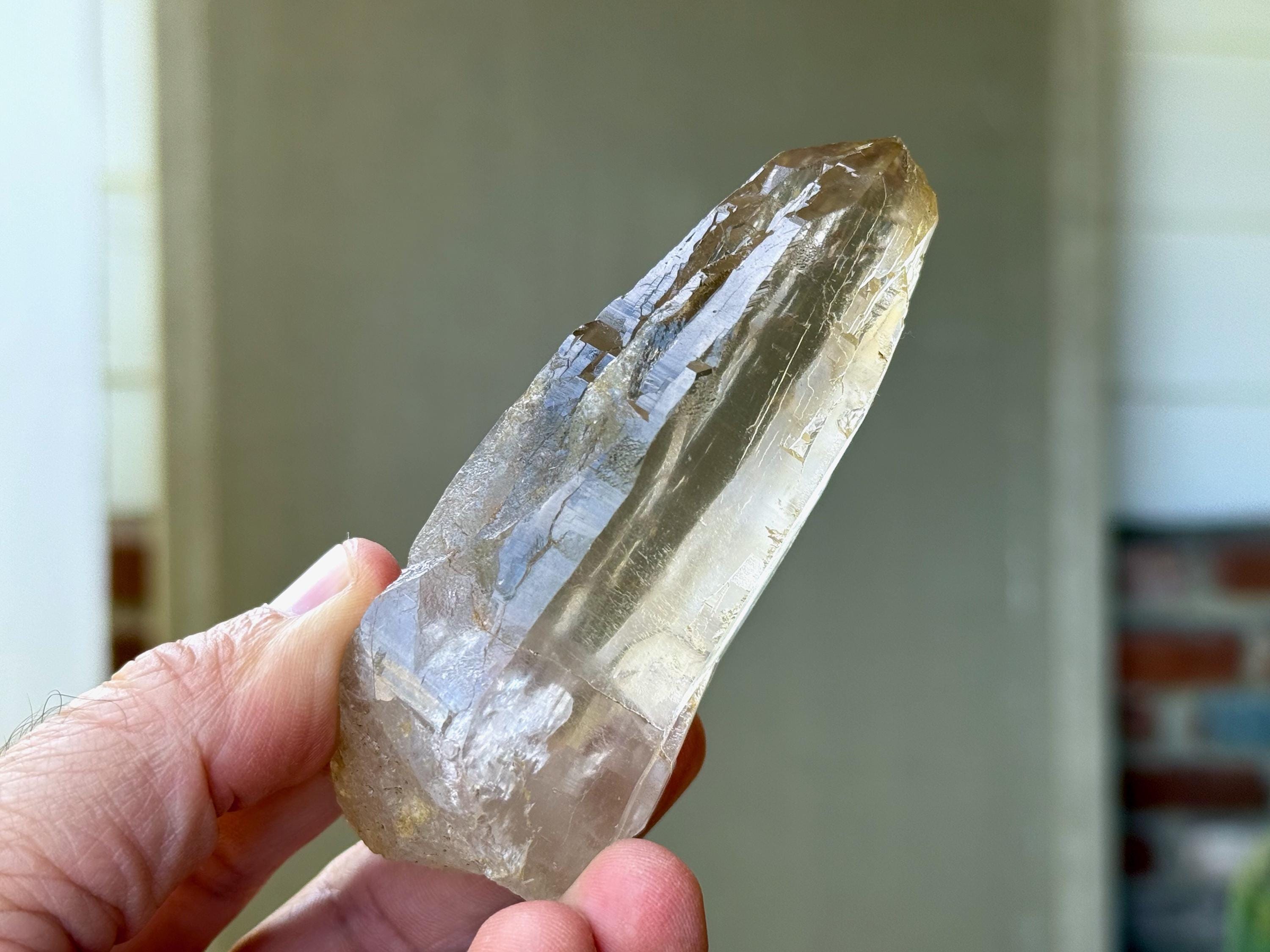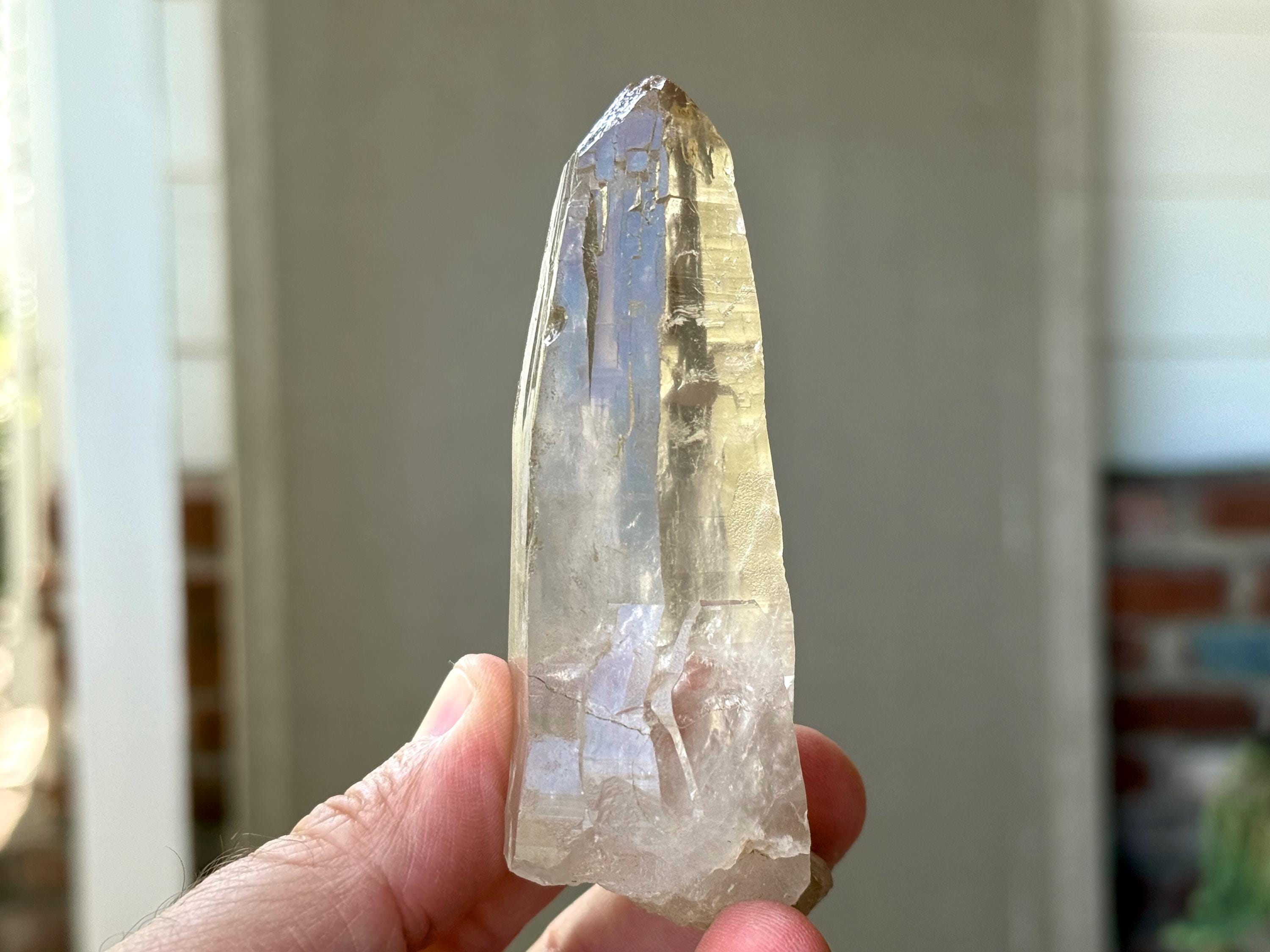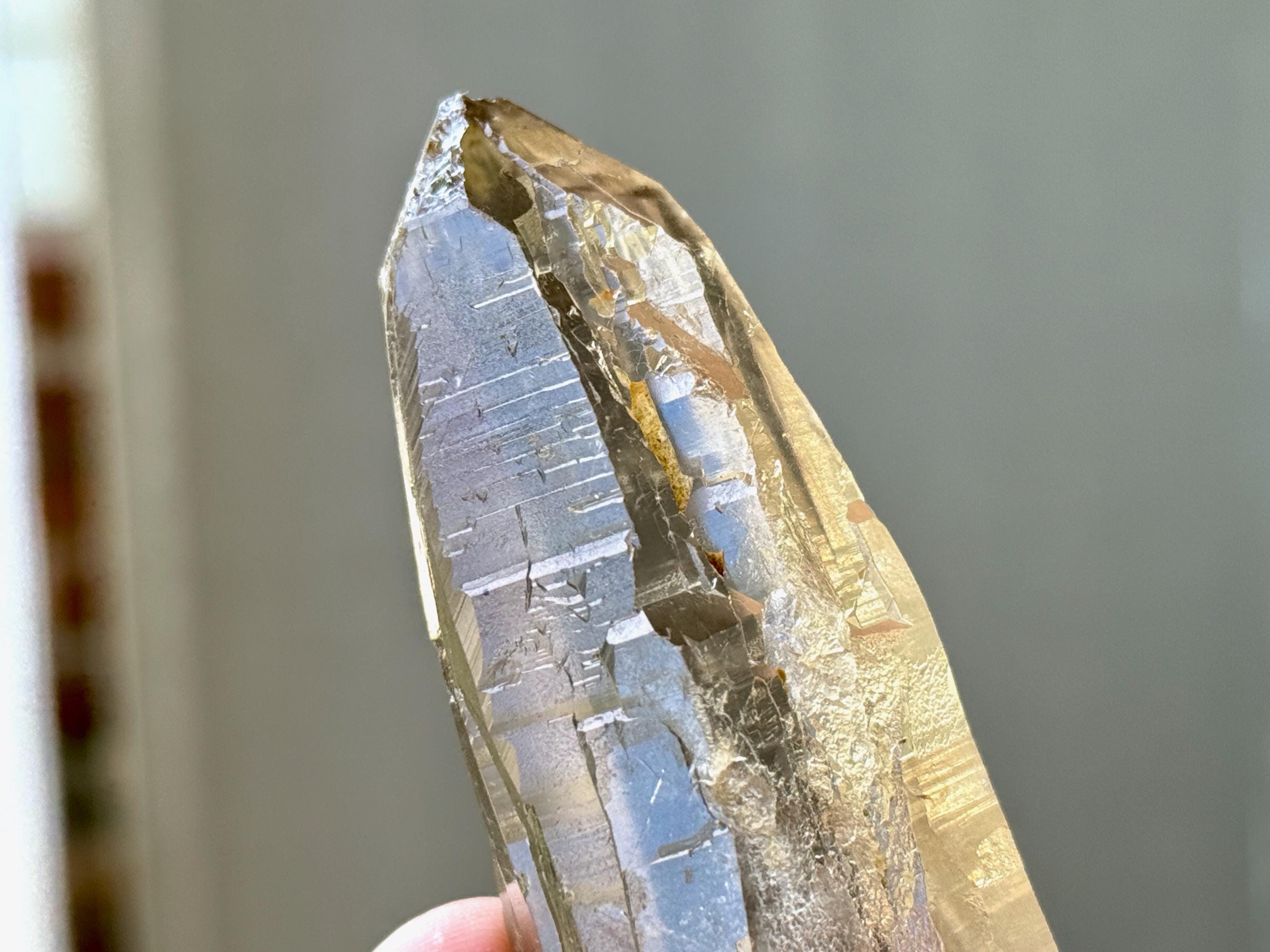Water-clear clarity, brilliant luster and a mild, smoky-golden color to this very special Cathedral Quartz crystal. This piece possesses a wonderful elongated formation with an array of cathedral textures and formations on its sides.