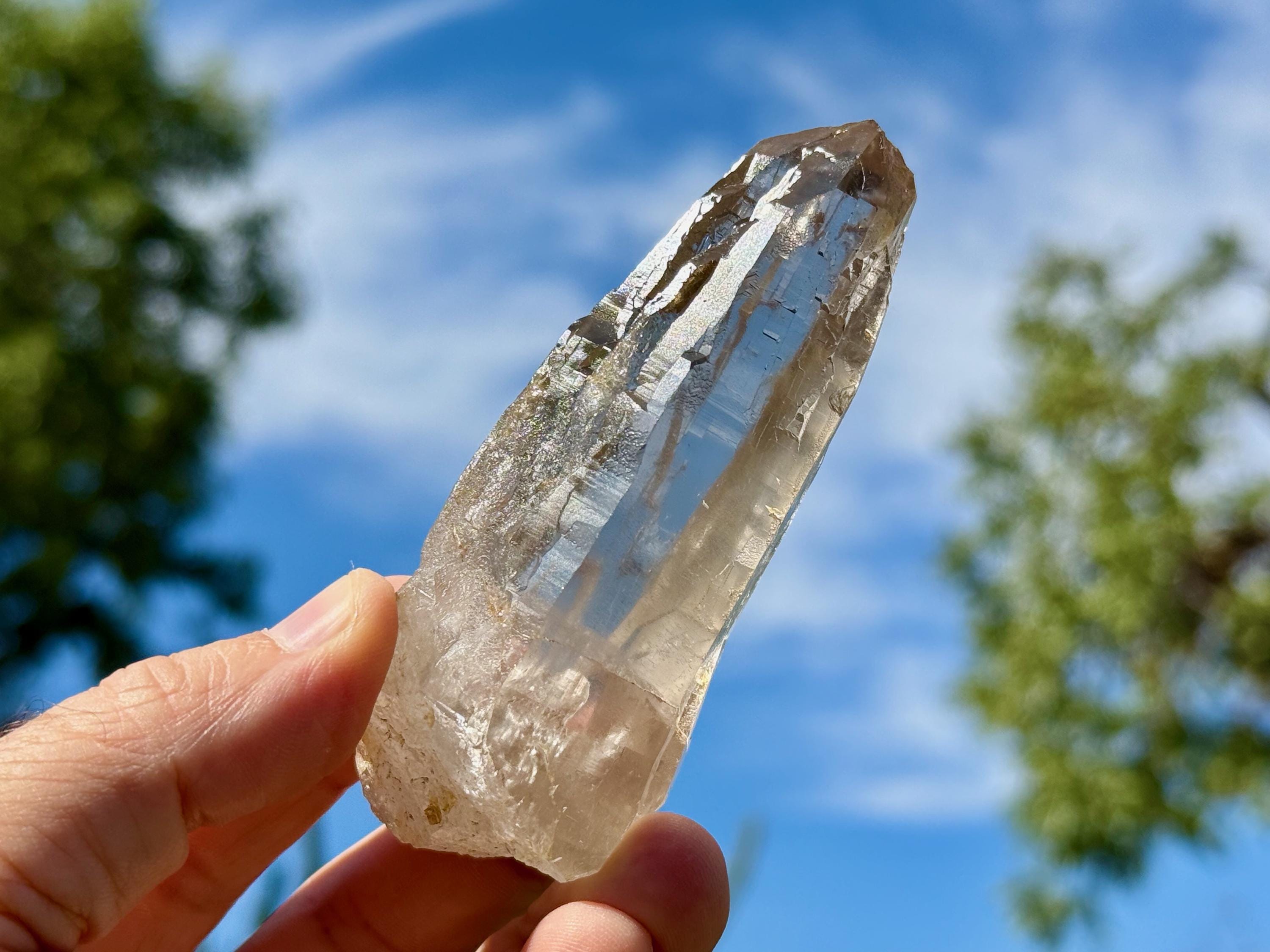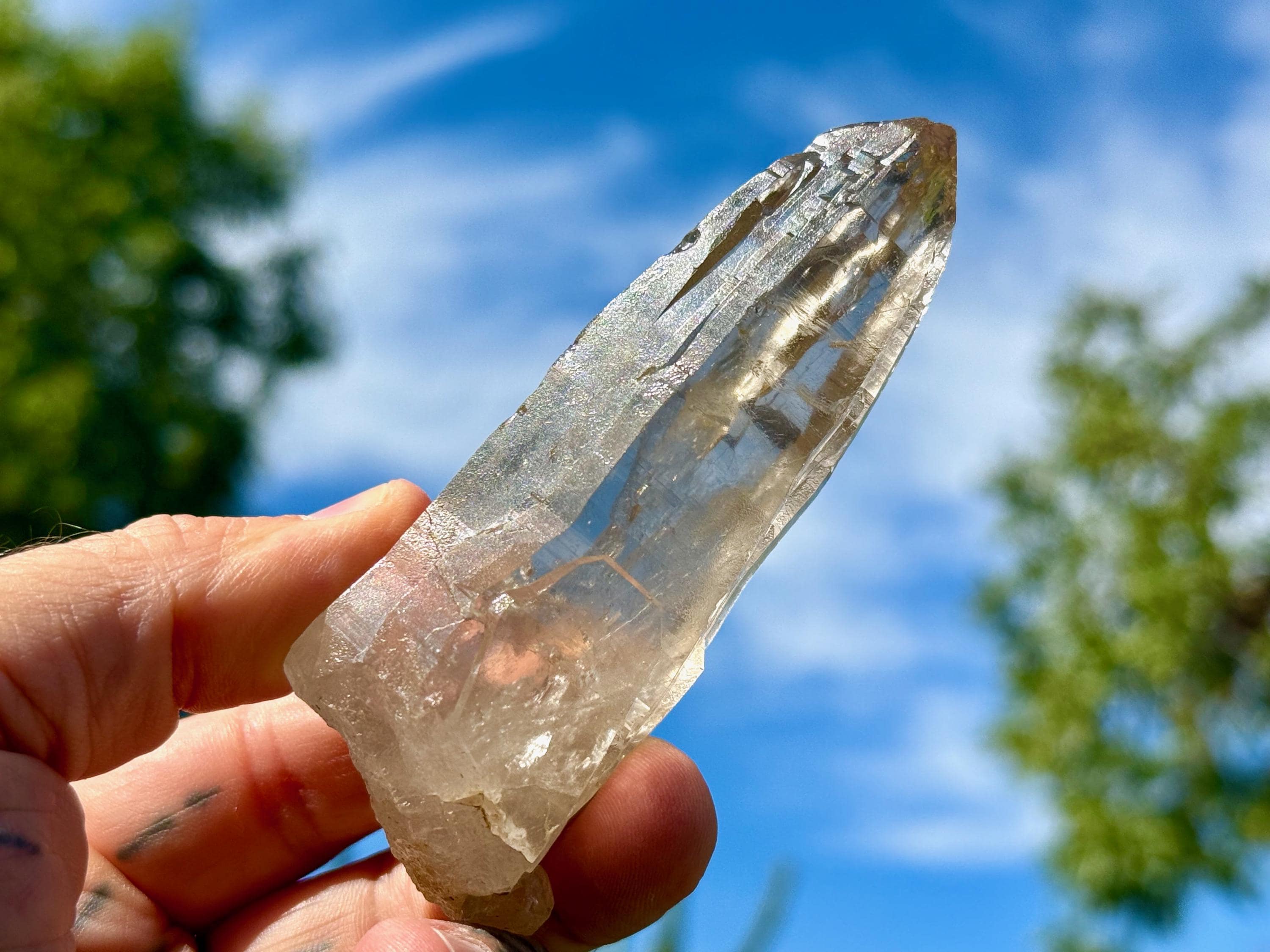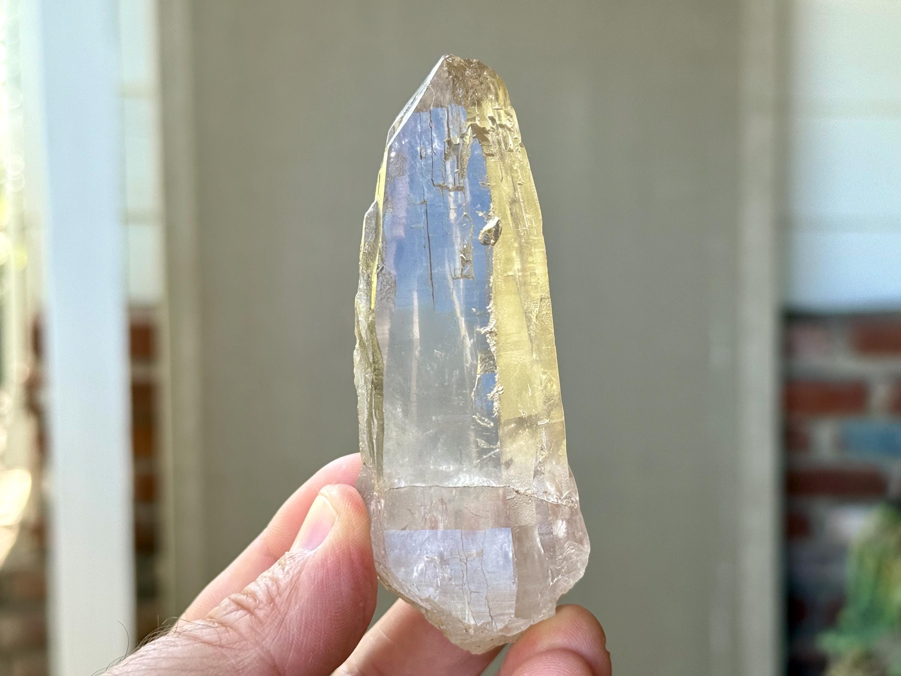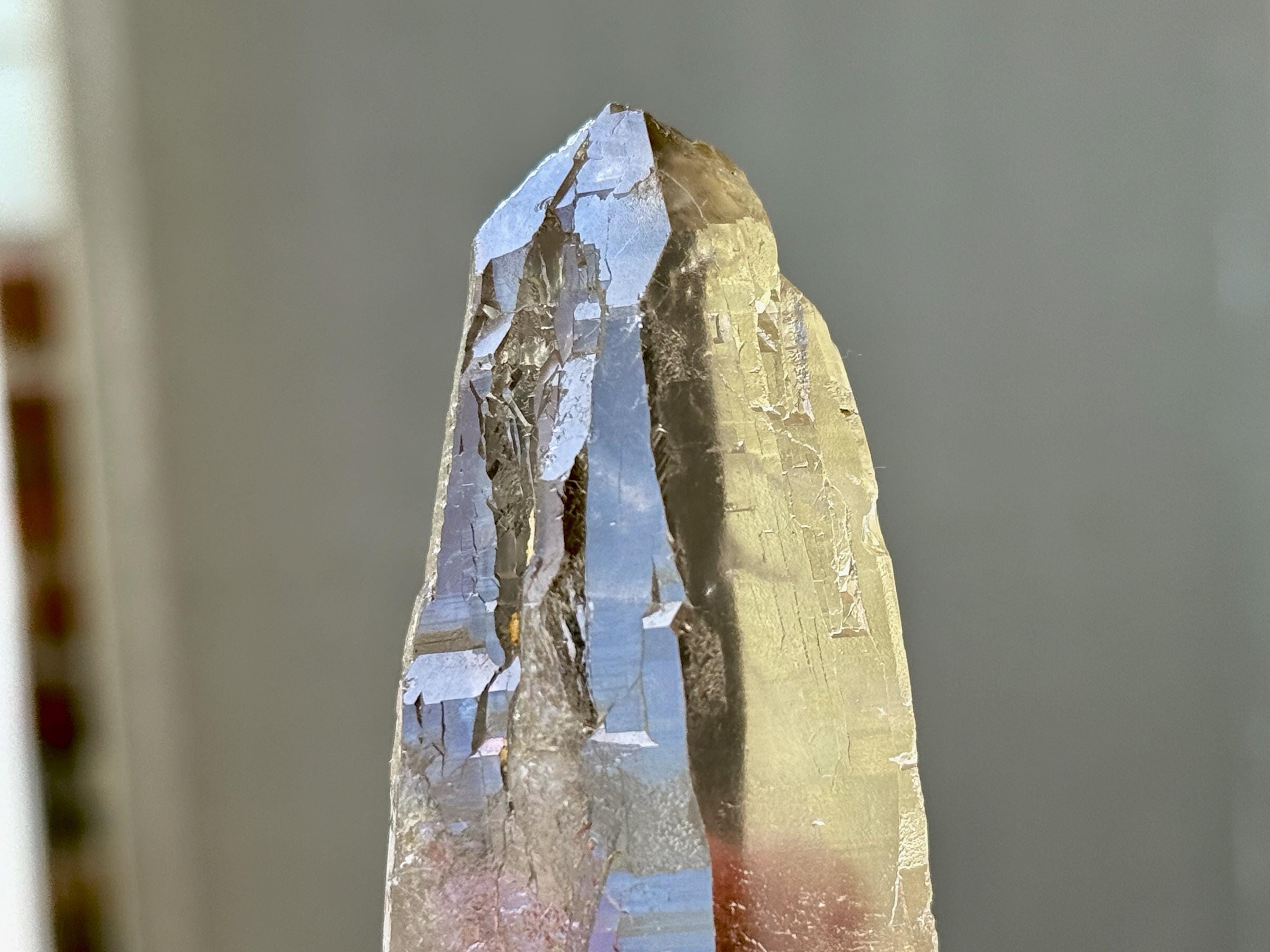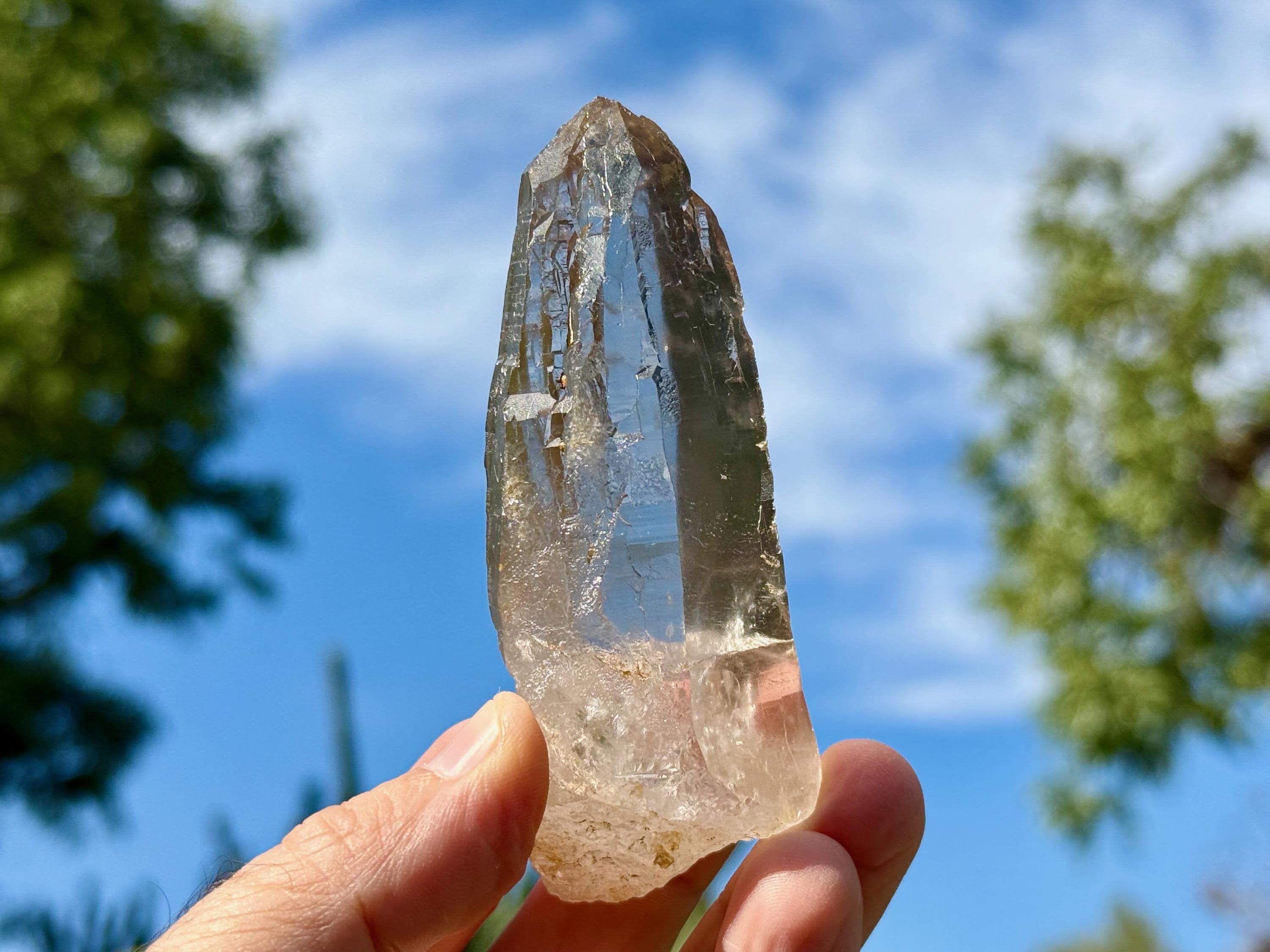 Water-clear clarity, brilliant luster and a mild, smoky-golden color to this very special Cathedral Quartz crystal. This piece possesses a wonderful elongated formation with an array of cathedral textures and formations on its sides.
